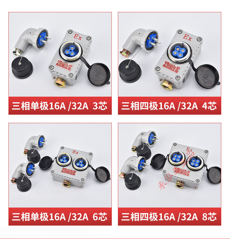 Explosion-proof spark-proof plug socket fire-proof and dust-proof 220/380V connection device industrial three- and four-core hole row plug 16A 3-core 220V single plug