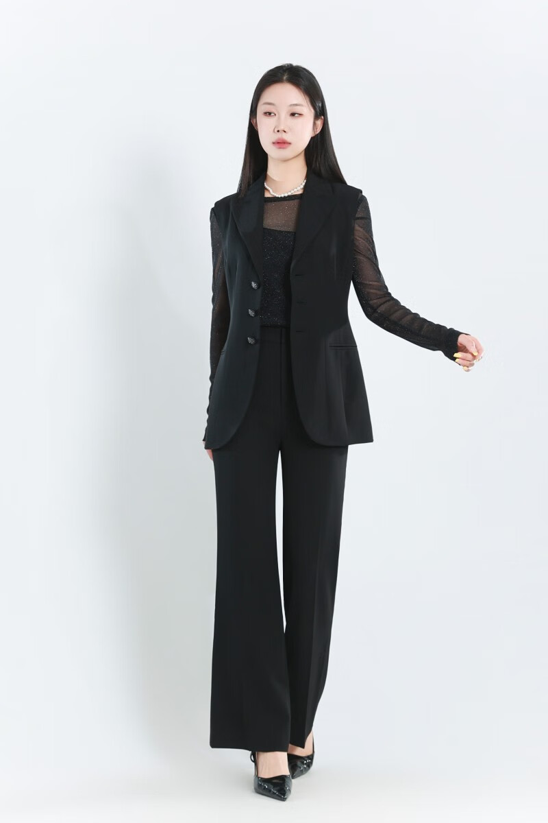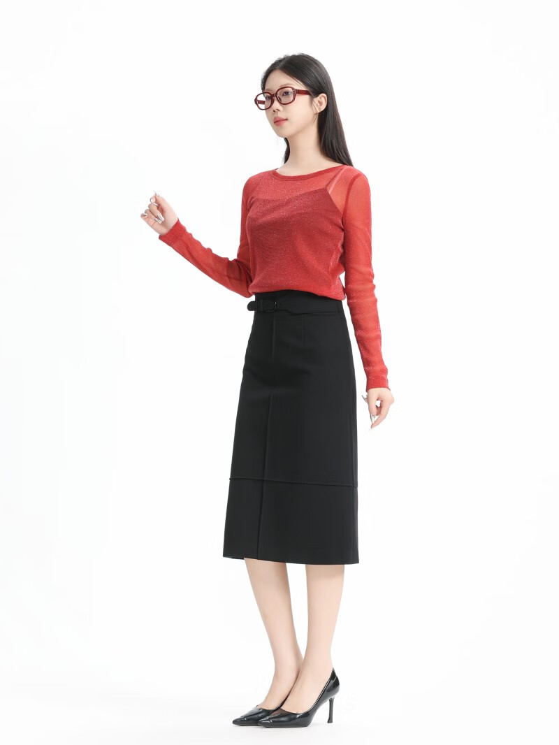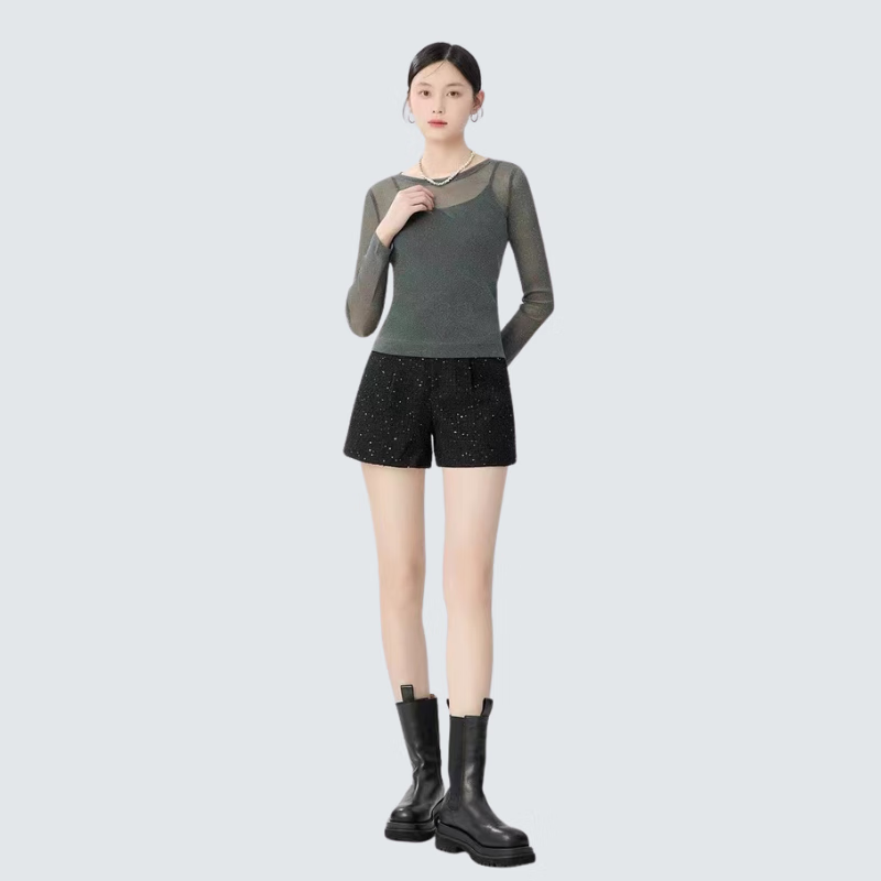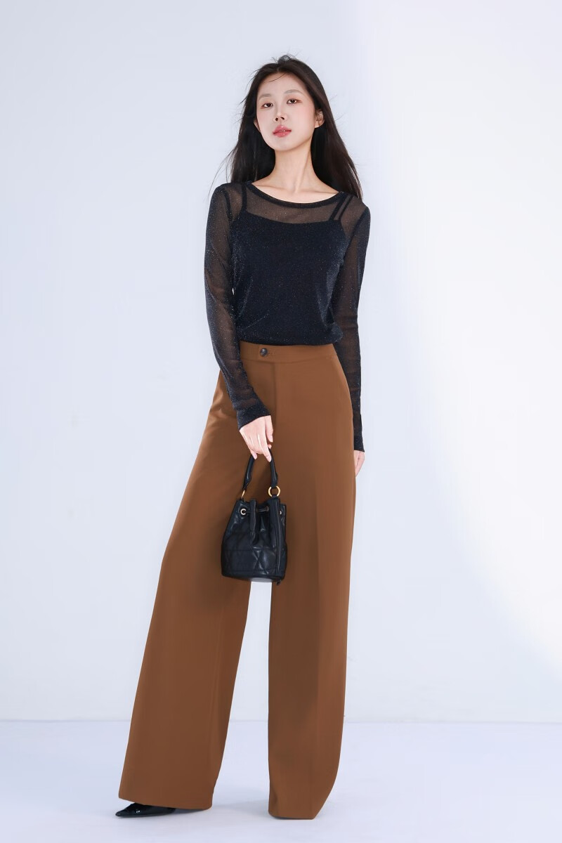GIRDEAR Women's Bottoming Shirt Fashionable Retro All-match Round Tie Onion Mesh Fabric Top Slim T-shirt 1300958 Black M (3 yards)