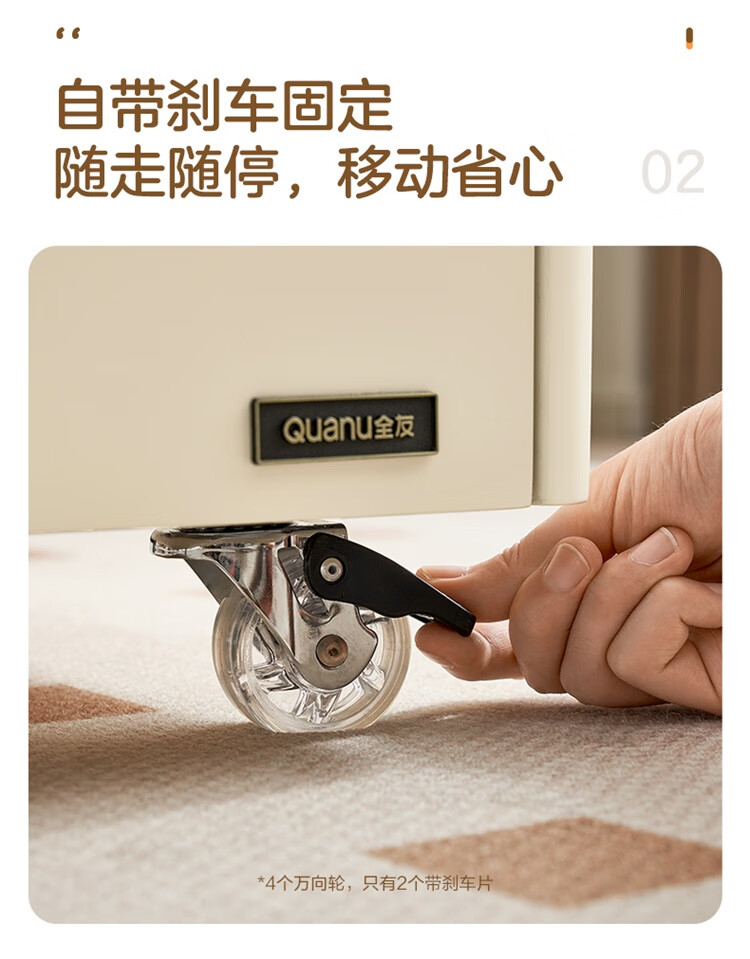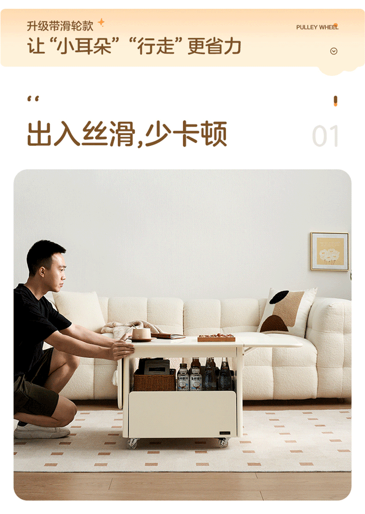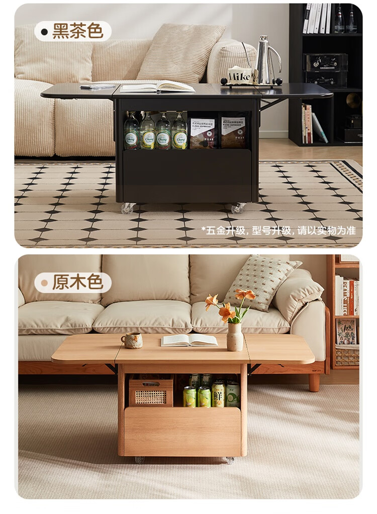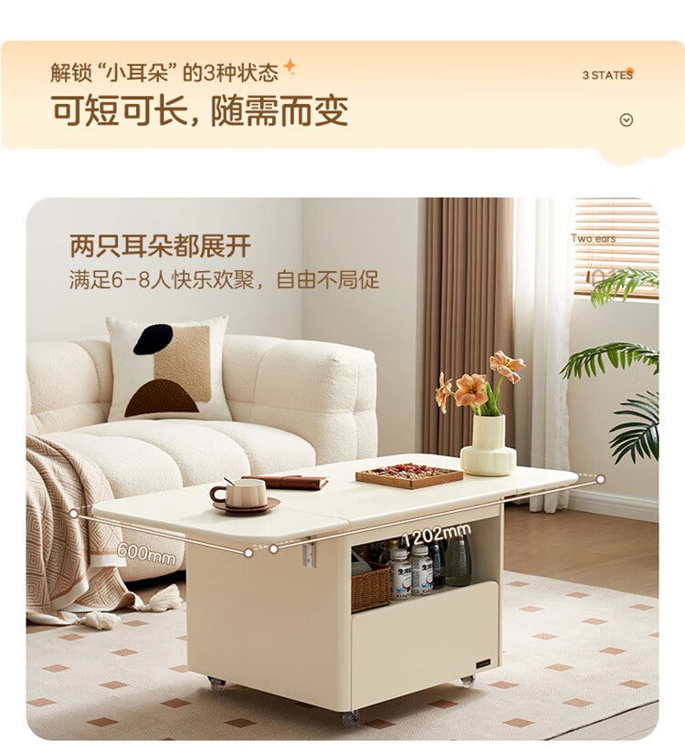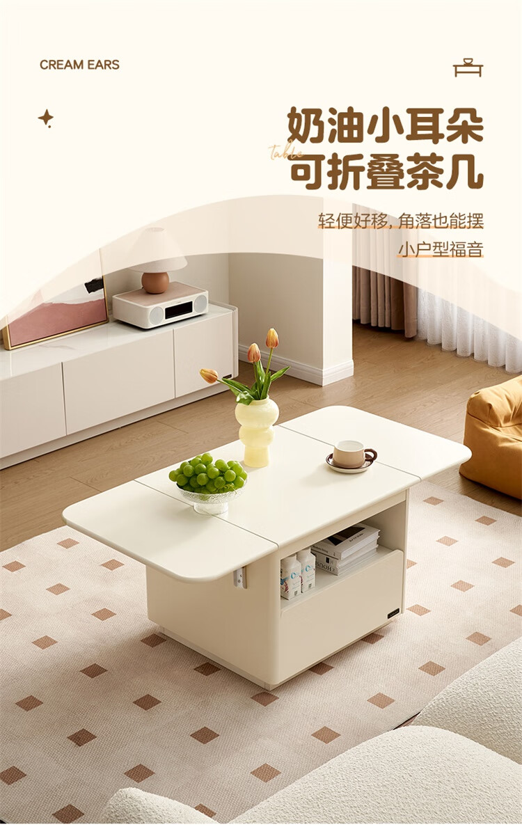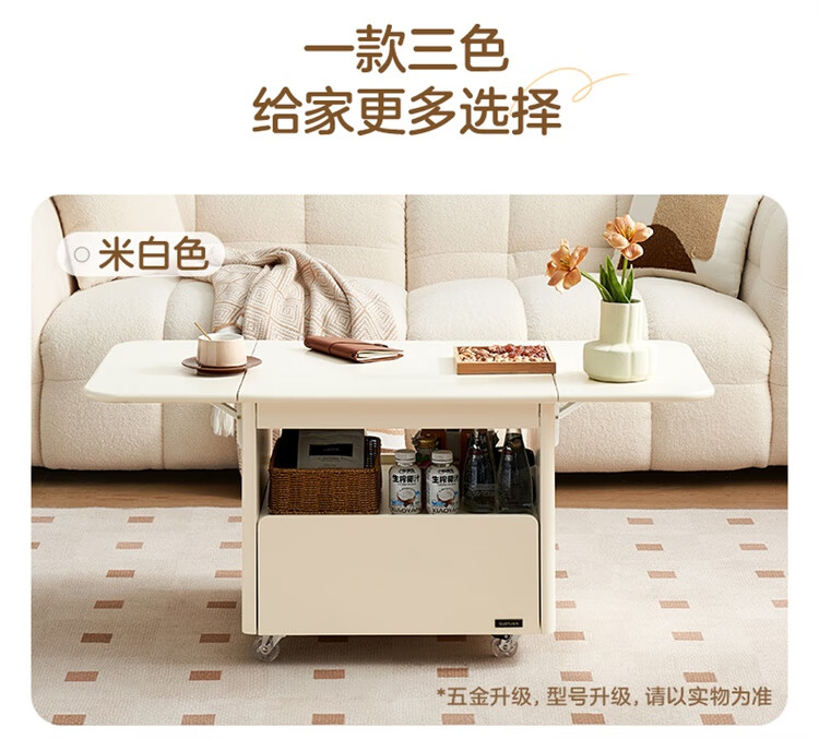 Quanyou Home Cream Style Foldable Coffee Table Small Apartment Living Room Dining Table Sofa Side Mobile Storage Table Cabinet Jingcang Sparkling Off-White | Foldable + Storage With Universal Wheels + Brakeable + Foldable
