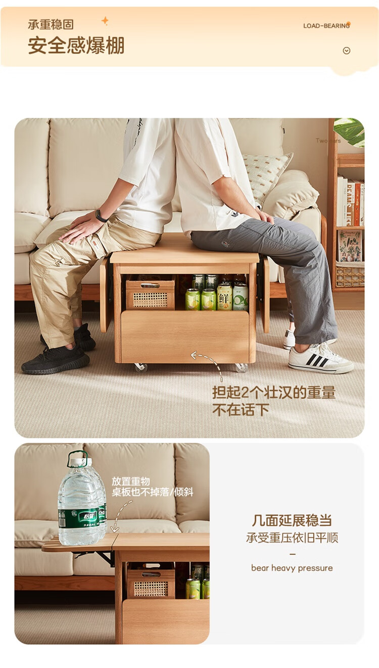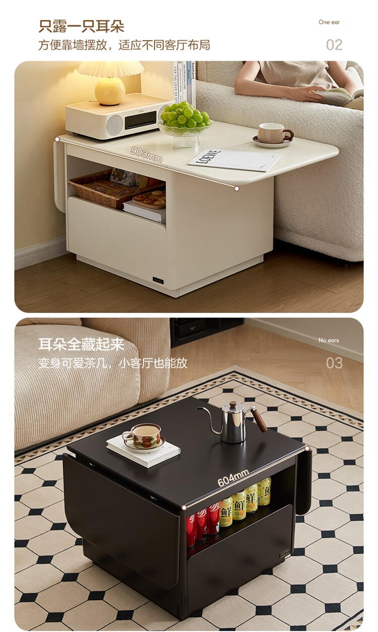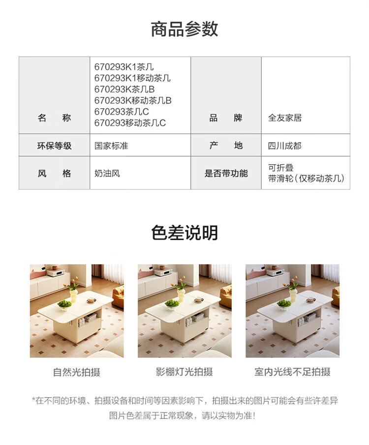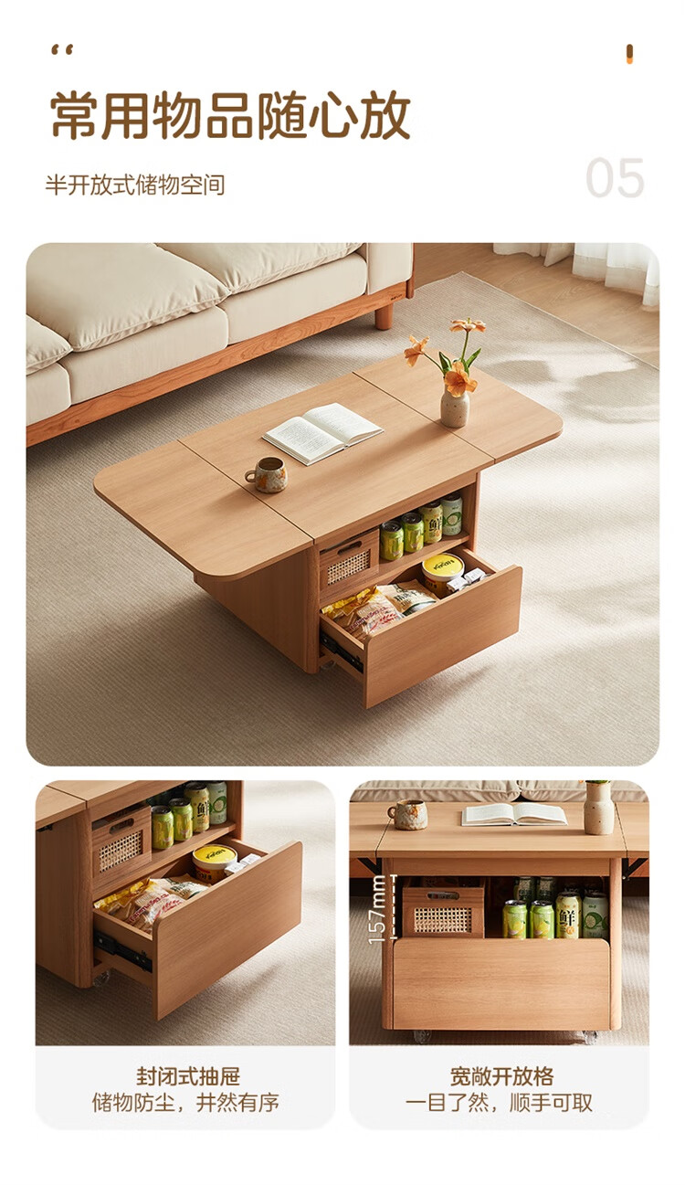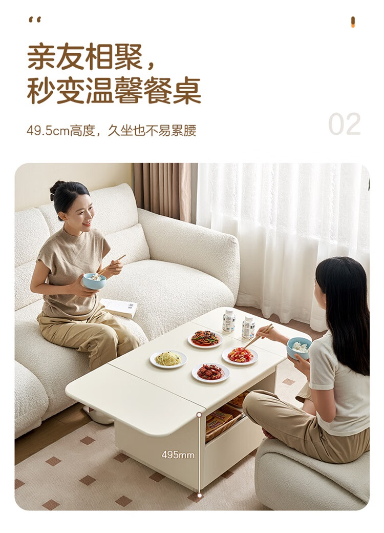 Quanyou Home Cream Style Foldable Coffee Table Small Apartment Living Room Dining Table Sofa Side Mobile Storage Table Cabinet Jingcang Sparkling Off-White | Foldable + Storage With Universal Wheels + Brakeable + Foldable