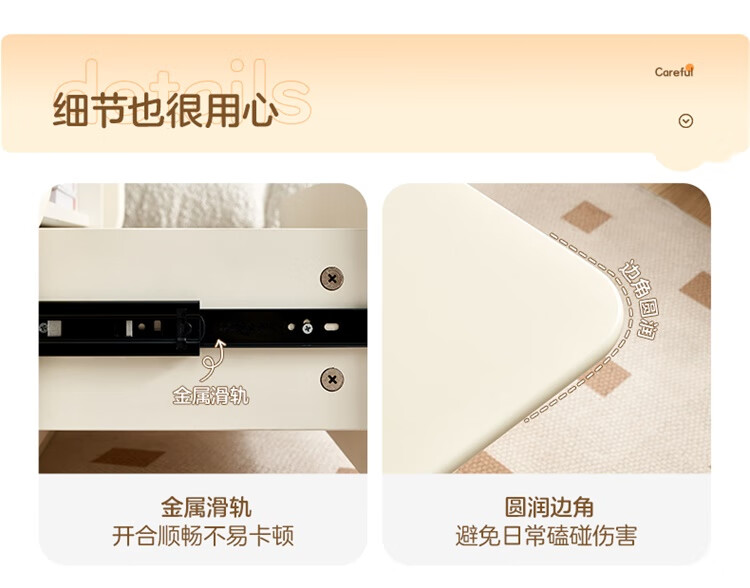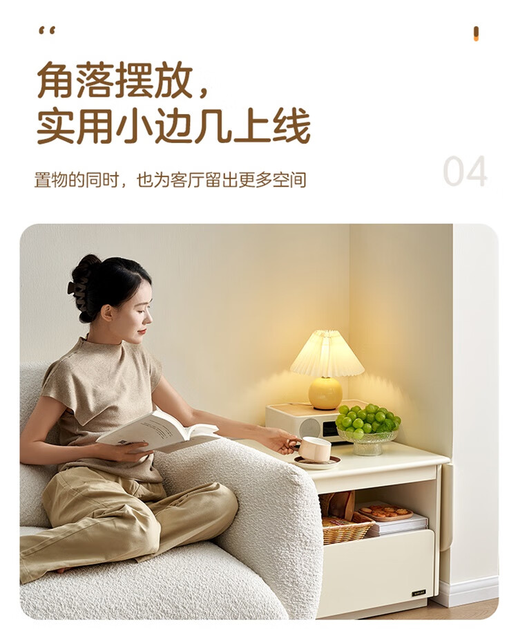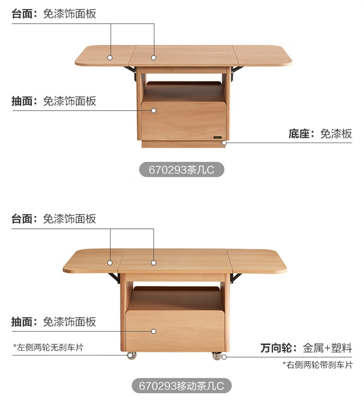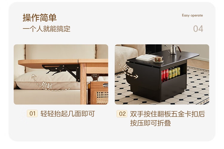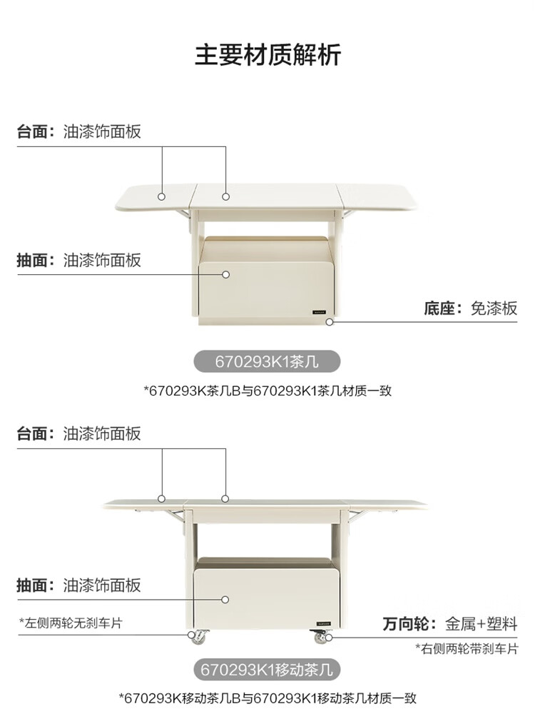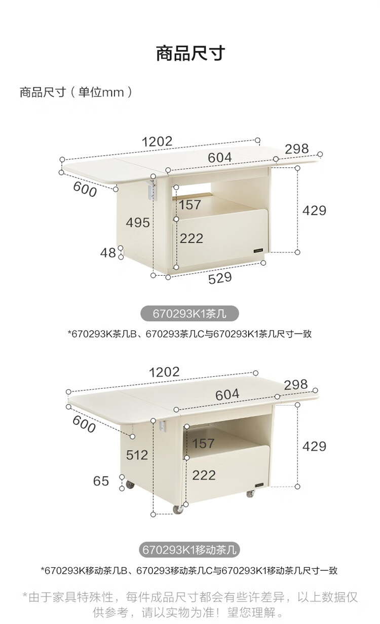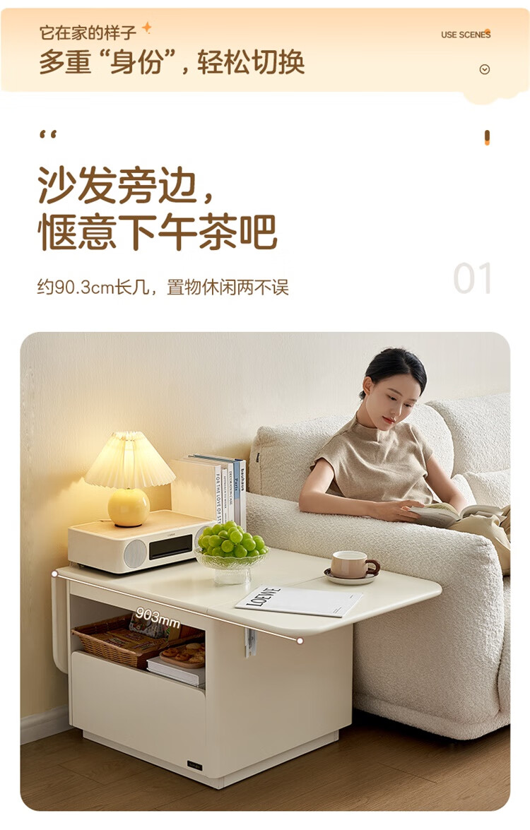 Quanyou Home Cream Style Foldable Coffee Table Small Apartment Living Room Dining Table Sofa Side Mobile Storage Table Cabinet Jingcang Sparkling Off-White | Foldable + Storage With Universal Wheels + Brakeable + Foldable