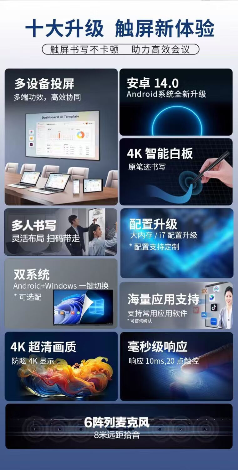 Konka Yunshang Teaching Conference Tablet All-in-One Seewo Whiteboard 4K Intelligent Screen Projection Office Training Multimedia Touch Screen TV 86-inch Cart + Stylus + Teaching Resources Dual System + Built-in Camera i7/8 + 256G