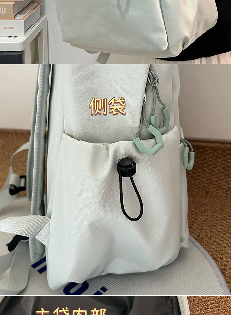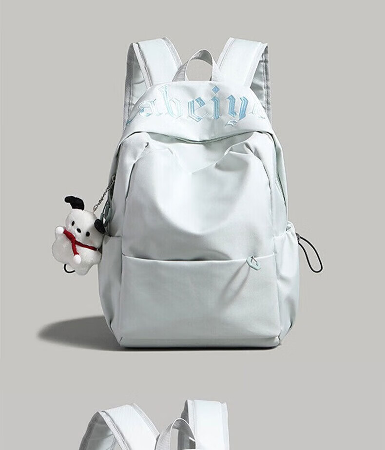 Yookdd (yookdd) backpack simple solid color junior high school college student schoolbag female large capacity computer bag mountaineering bag travel backpack schoolbag fresh blue ribbon pendant