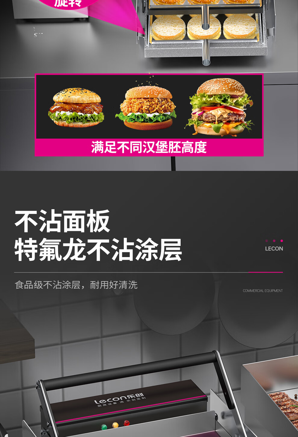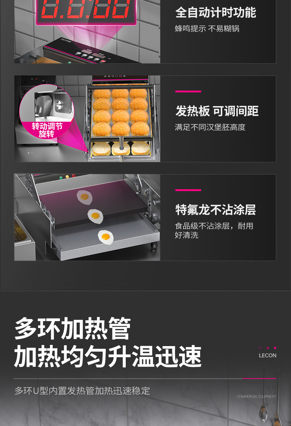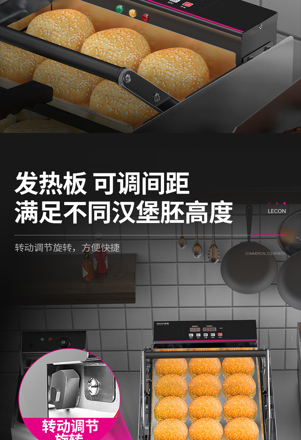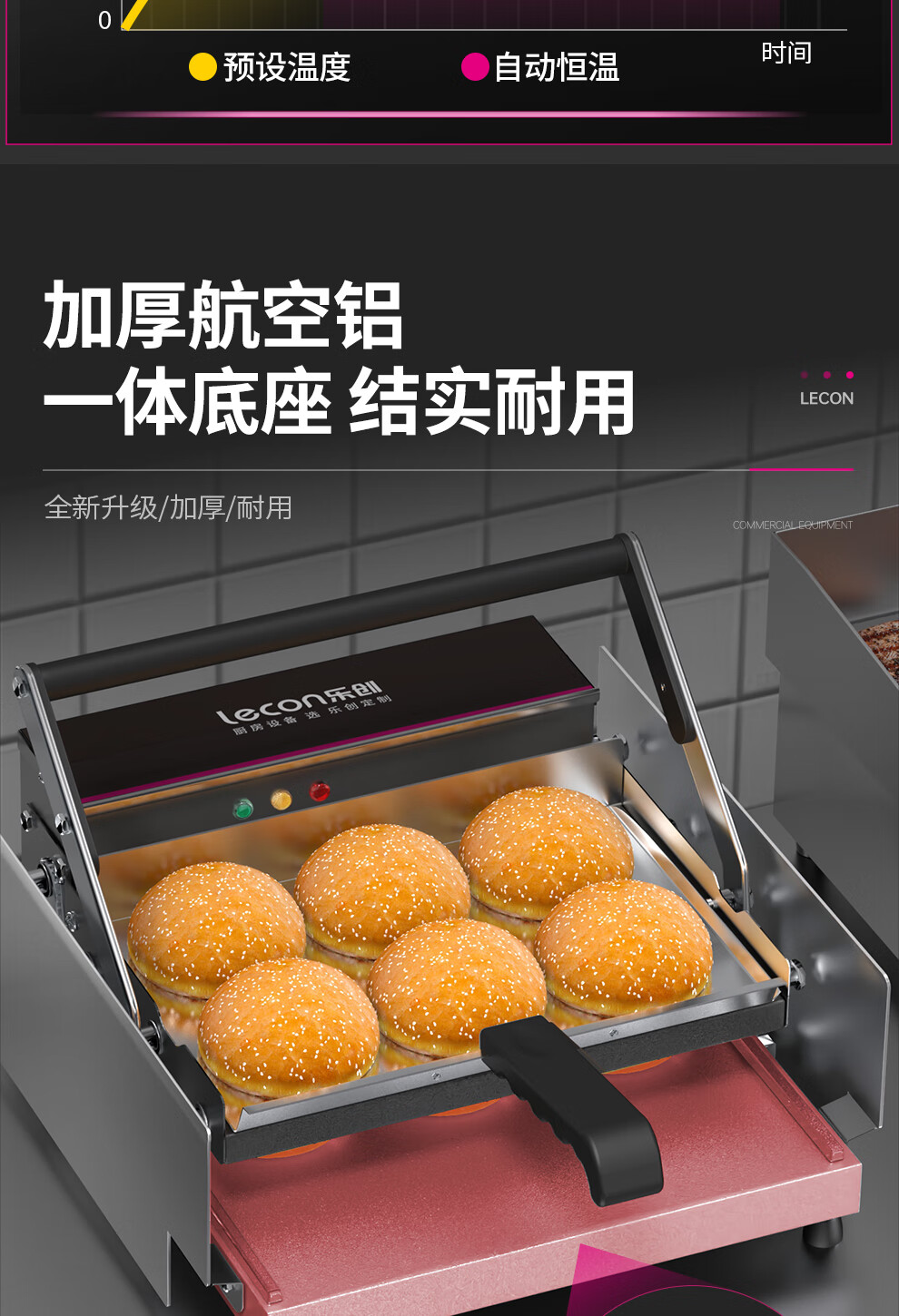 Lecon hamburger machine commercial small fully automatic bun baking machine double-layer bun baking machine heating burger shop equipment 6 burgers digital display control model