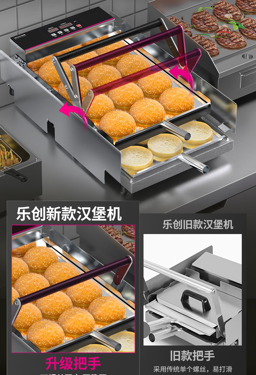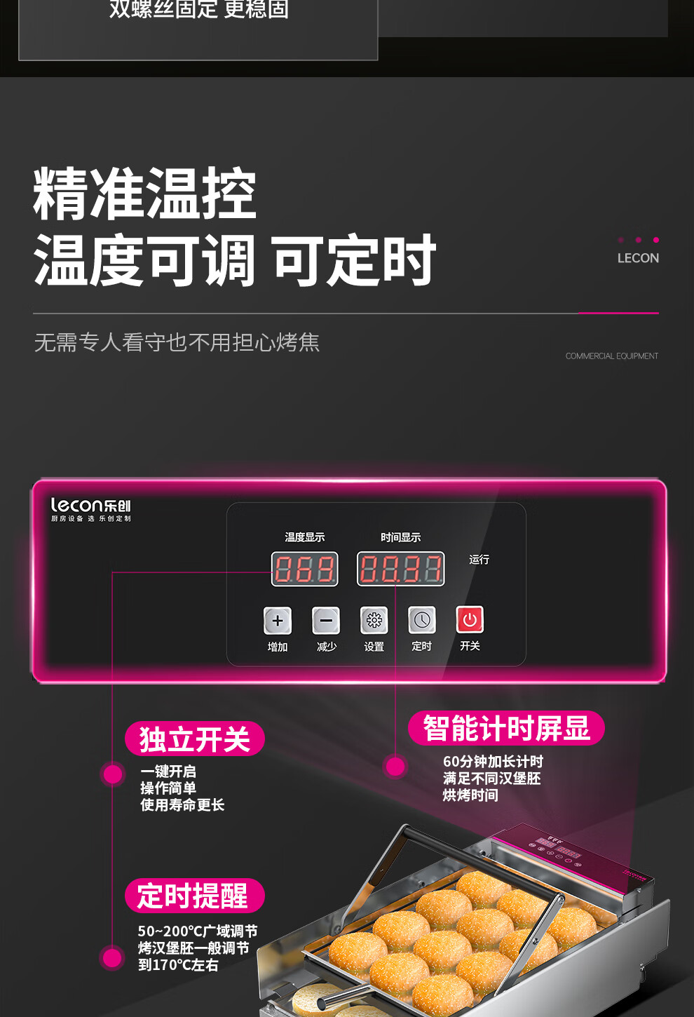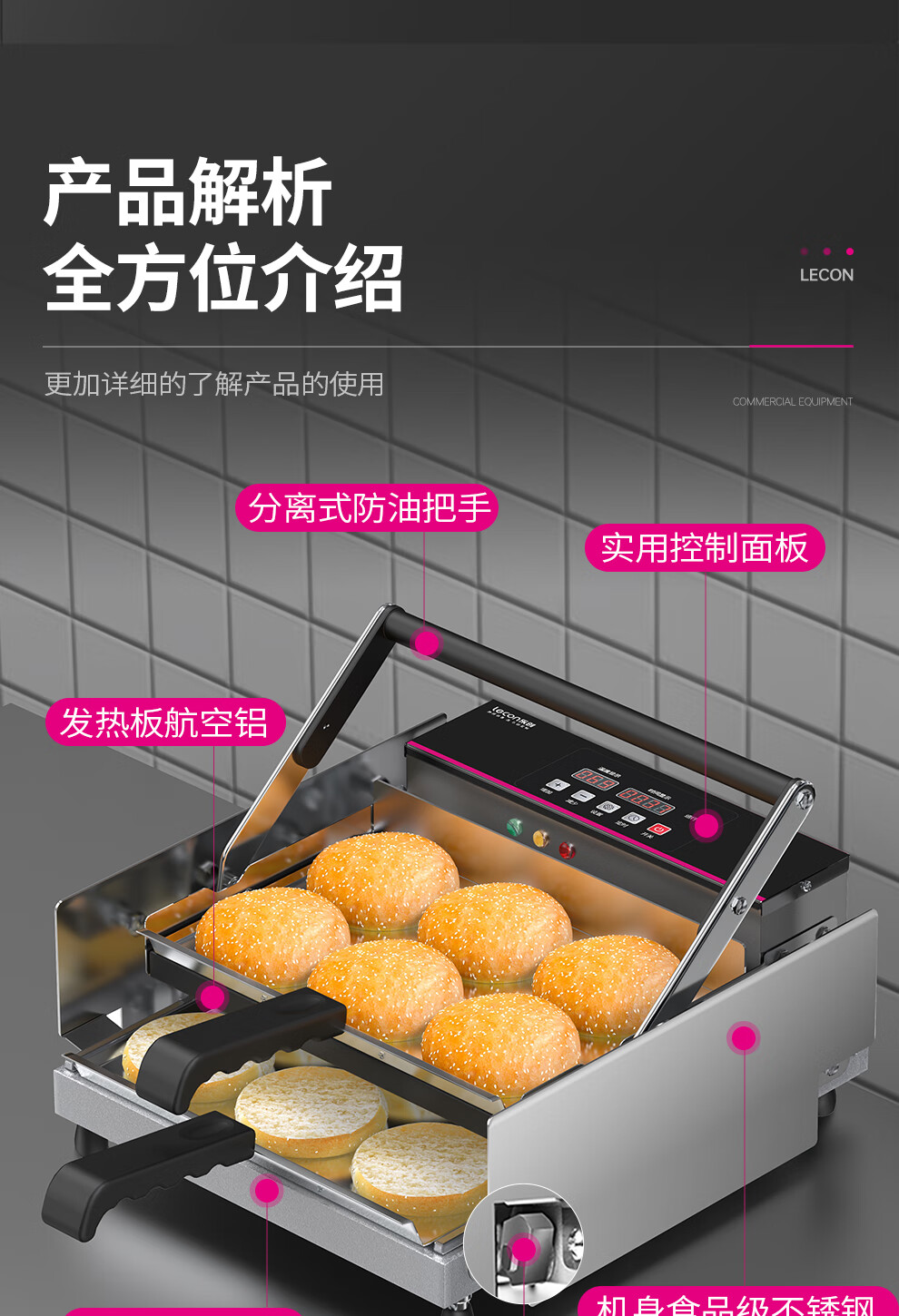 Lecon hamburger machine commercial small fully automatic bun baking machine double-layer bun baking machine heating burger shop equipment 6 burgers digital display control model