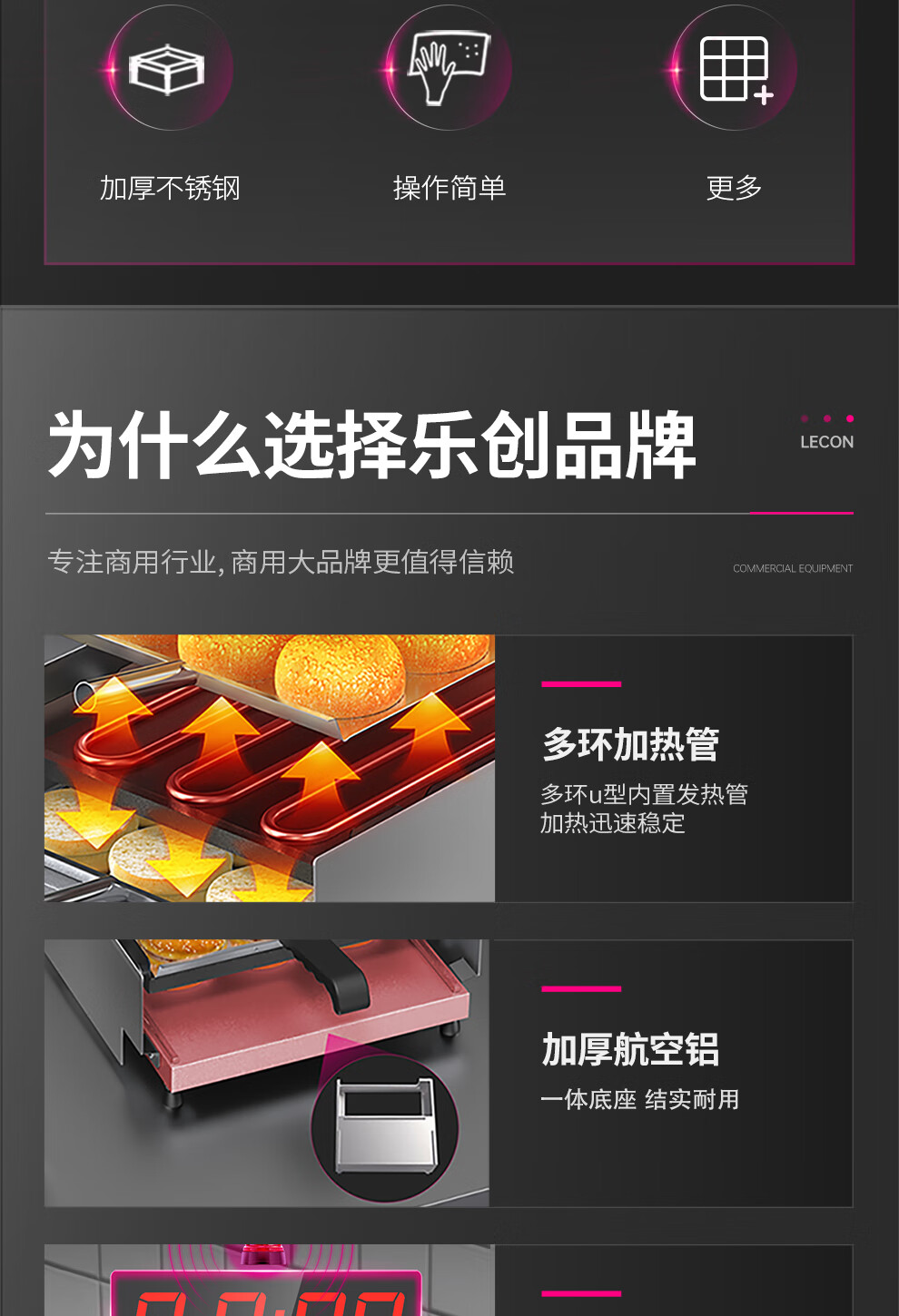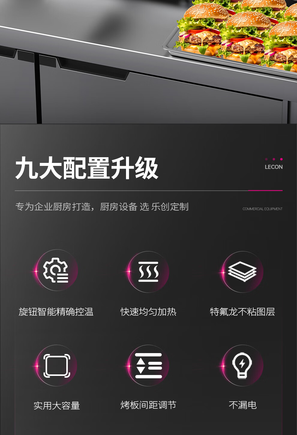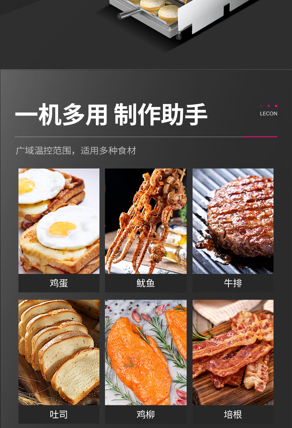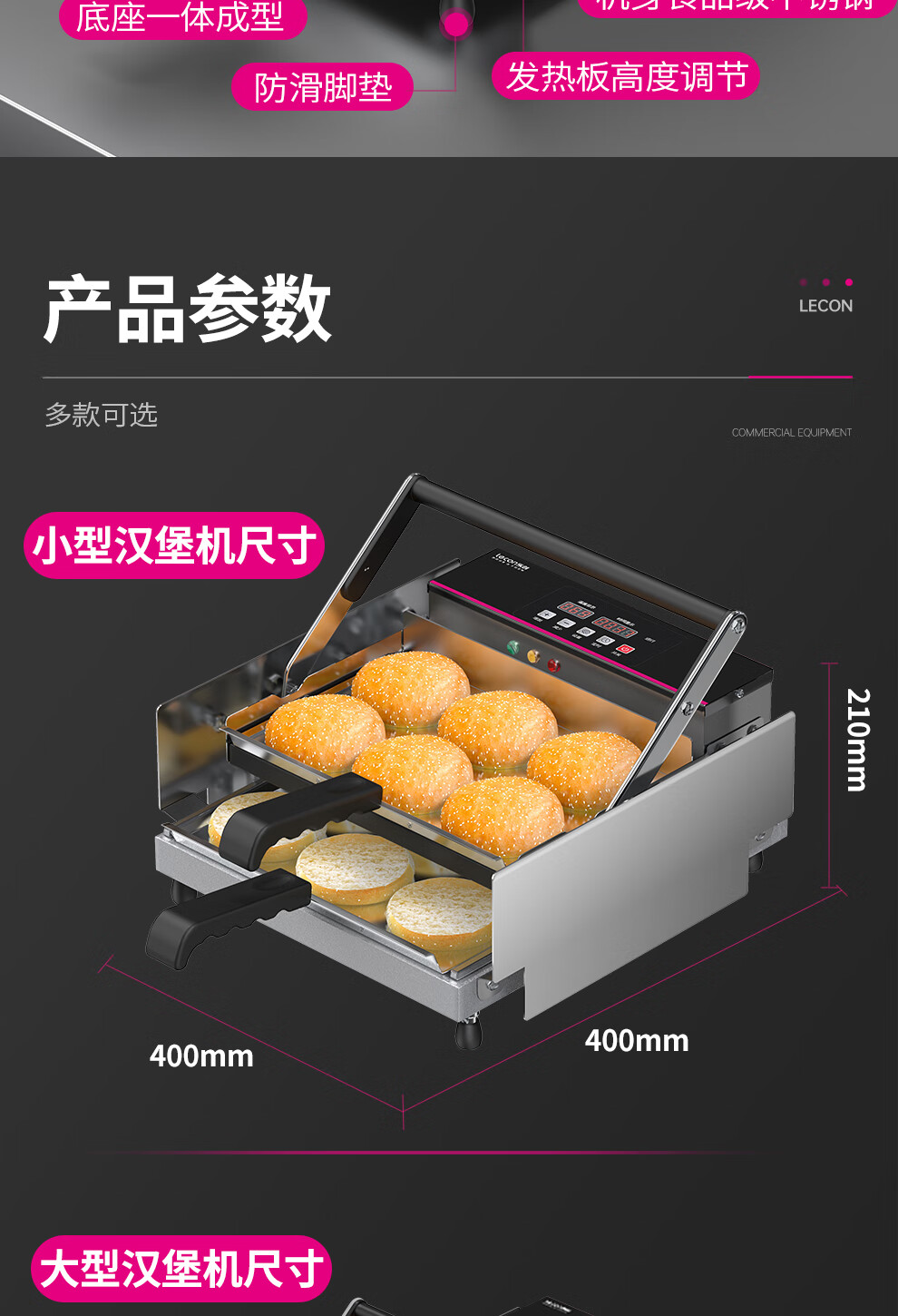 Lecon hamburger machine commercial small fully automatic bun baking machine double-layer bun baking machine heating burger shop equipment 6 burgers digital display control model