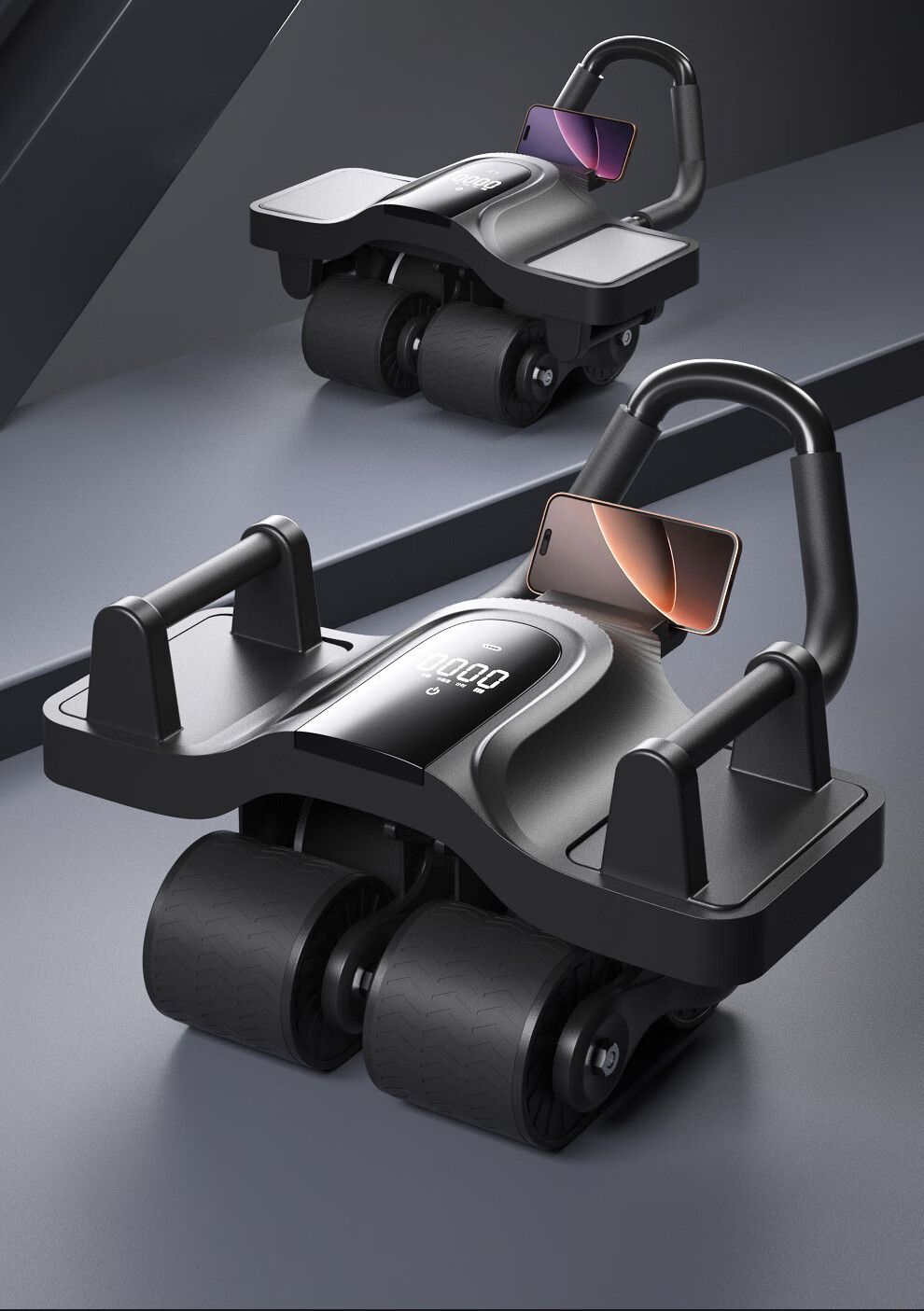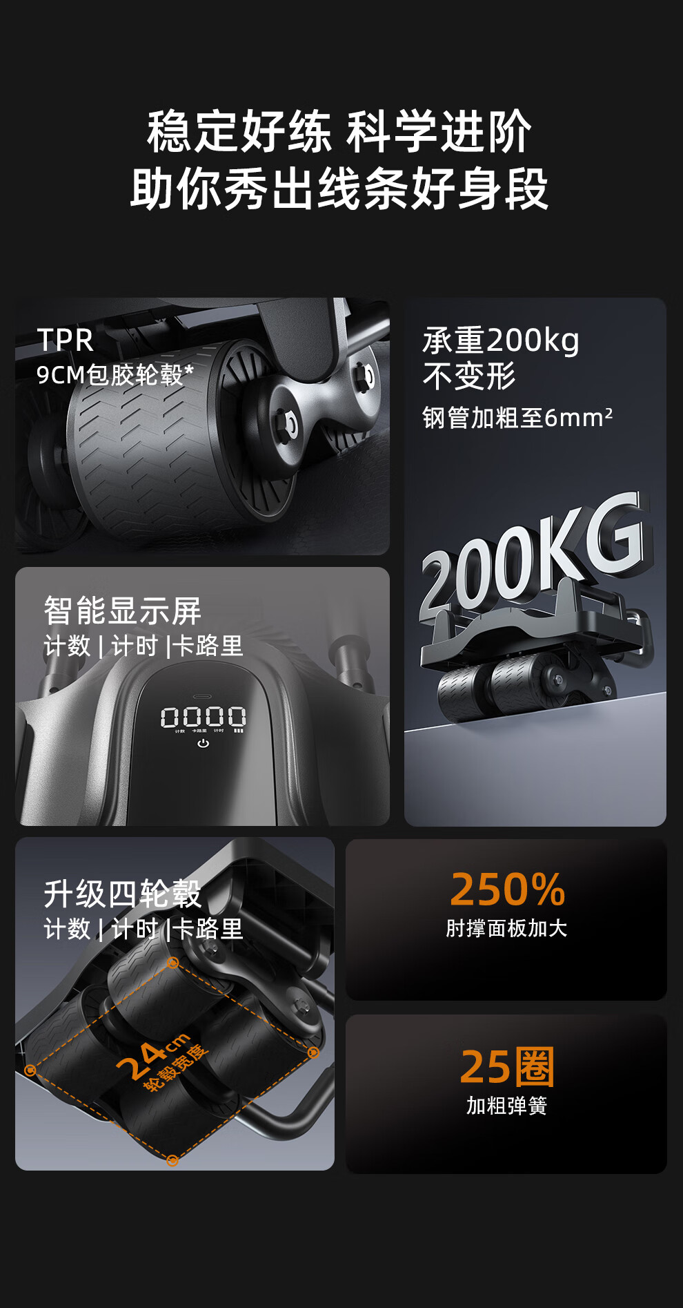 SiNuoDe Abdominal Wheel Automatic Rebound Elbow Support Four-wheel Abdominal Wheel New Men's and Women's Slim Belly Abdominal Muscle Training Black Warrior-Four-Wheel Super Running Abdominal Wheel-Kneeling Mat