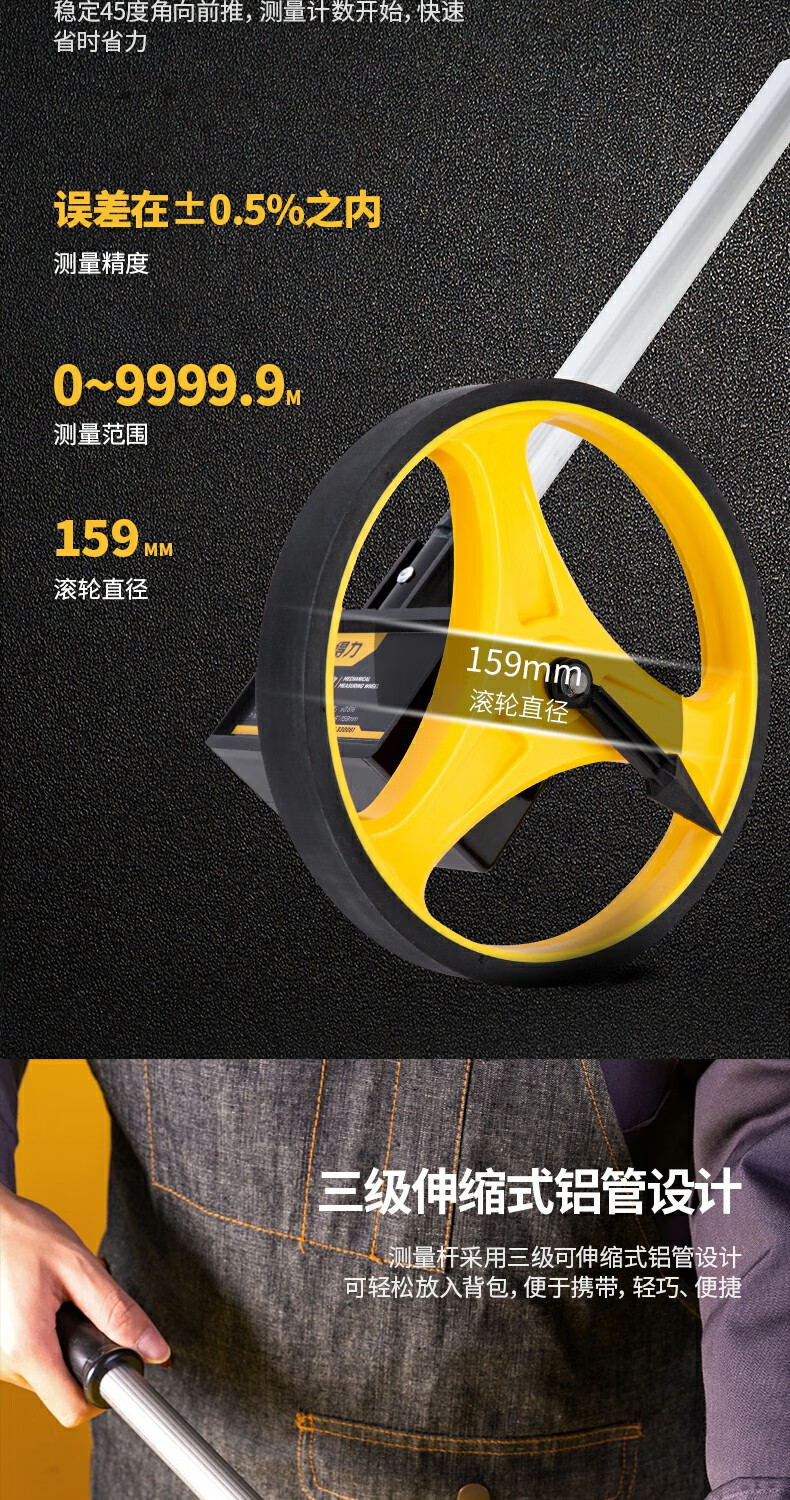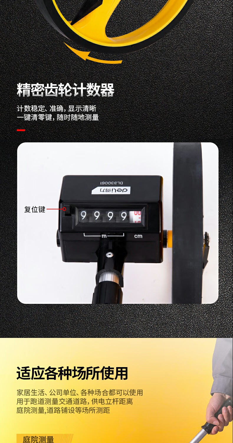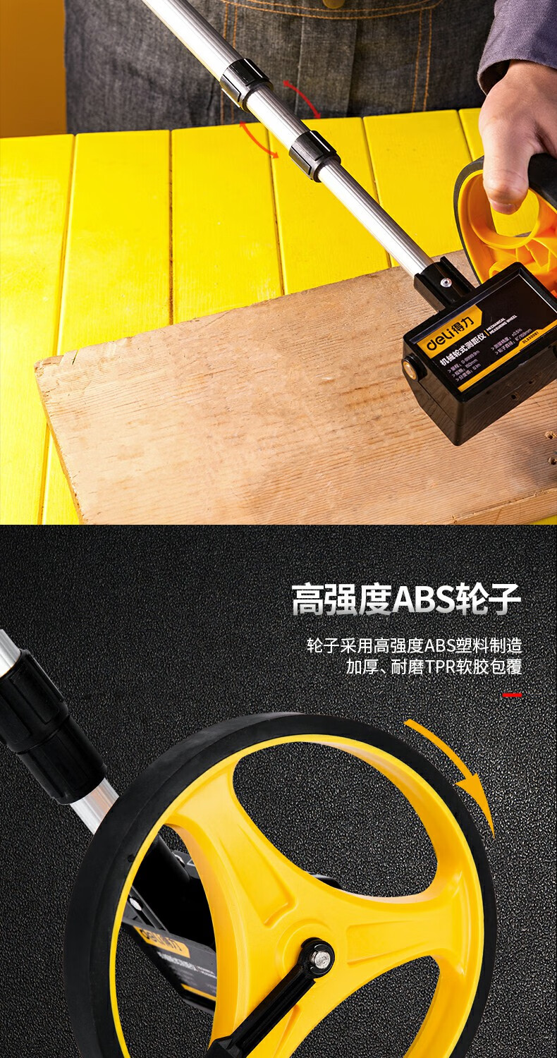 Deli distance measuring wheel roller measuring wheel instrument hand push wheel roller push ruler wheel distance meter outdoor ground wheel mini wheel digital display distance meter DL9713