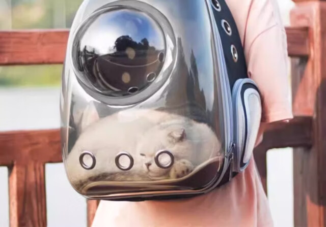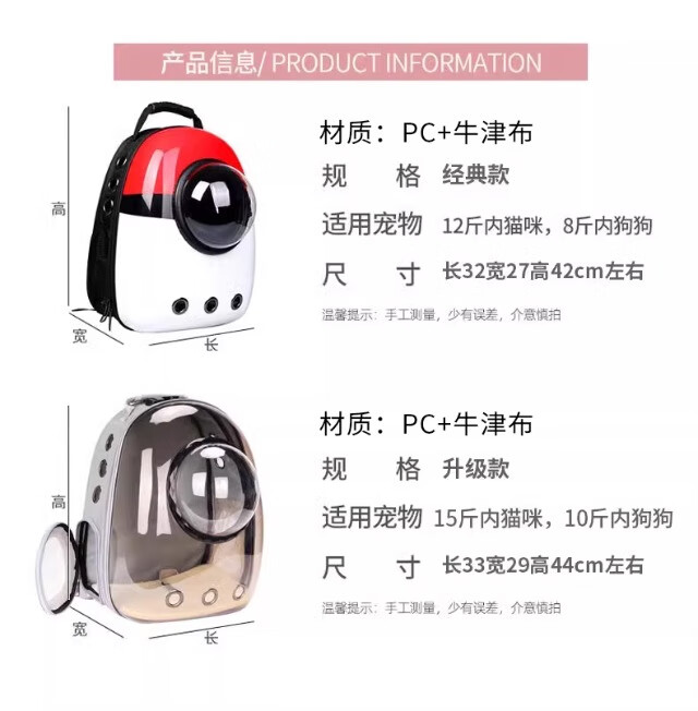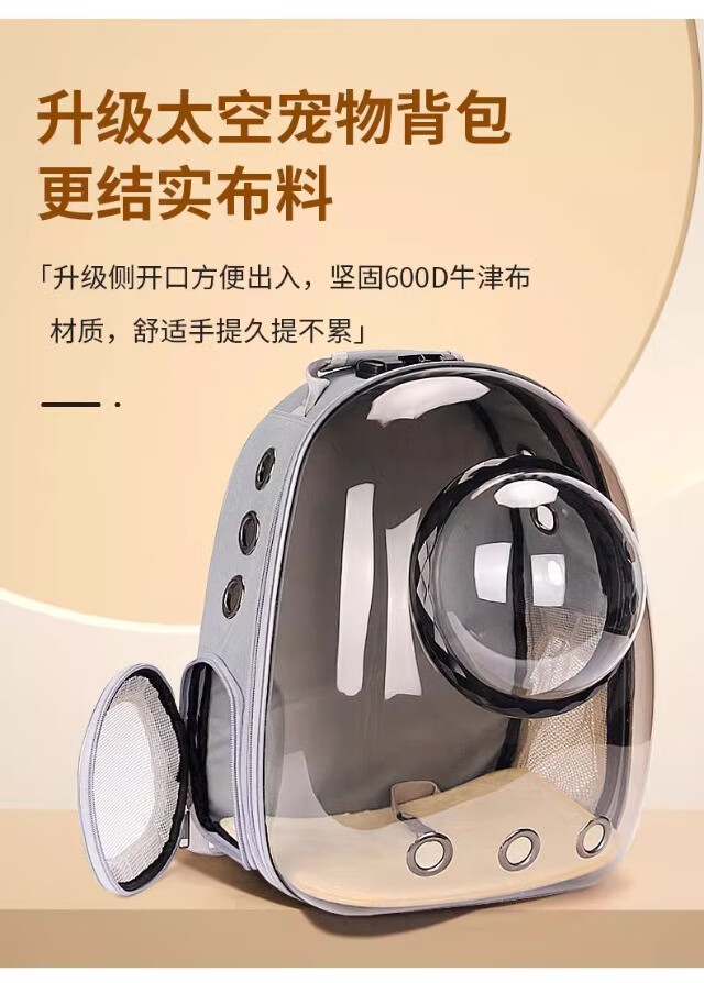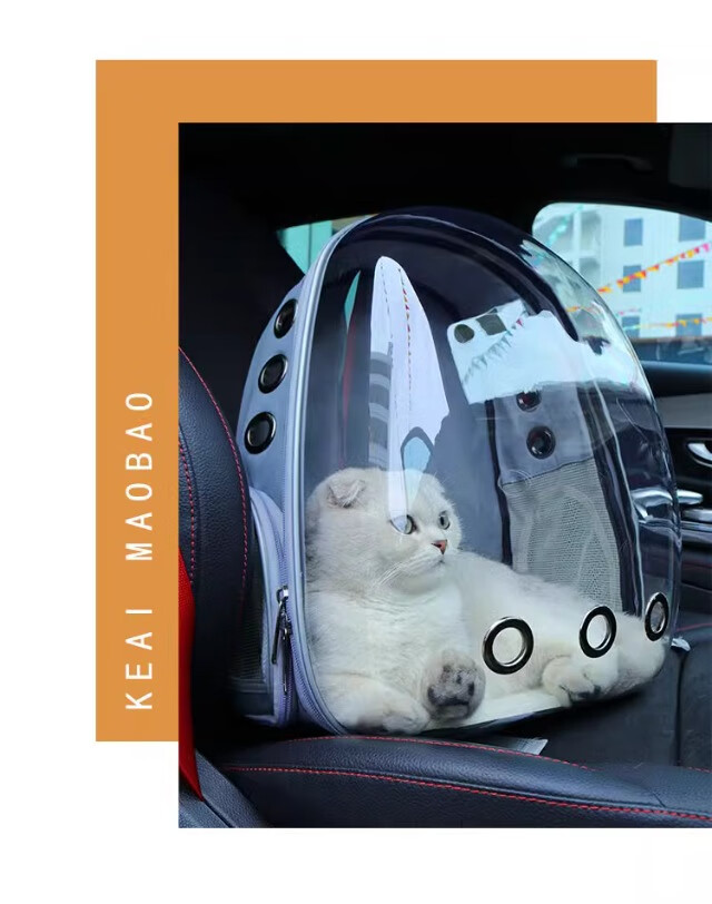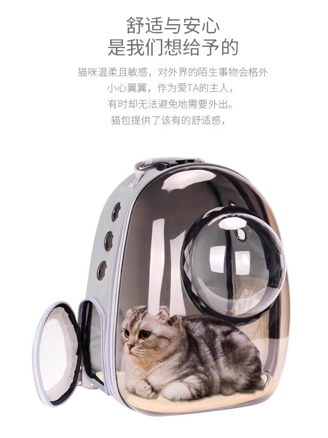 Cat bag, portable bag for outings, space capsule backpack, pet car cat box, large cat flight box, cat cage, transparent gray, upgraded space cover, next day delivery from Beijing warehouse, cats up to 15 pounds/dogs up to 10 pounds, double-sided breathable mesh/can be opened sideways for easy entry and exit/panoramic anti-stress