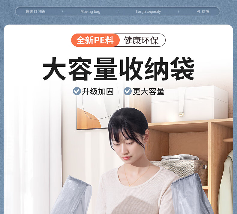 MPPMCK Moving Packing Bag Large Plastic Bag Thickened, Strong and Durable Large Capacity Clothes Storage Bag Moving Special Artifact Upgraded Extra Thick Model Large + Extra Large Stronger, Store Manager Recommends Upgraded Reinforcement Pack of 100 Packs, Damage Compensation Guaranteed