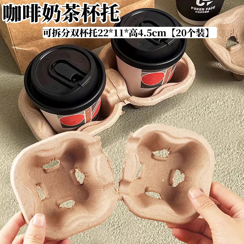 Maimeide disposable milk tea cup holder kraft paper bottom holder coffee takeaway packaged beverage beverage single and double cup holders 30 two-cup holders can be torn into 60 single cups
