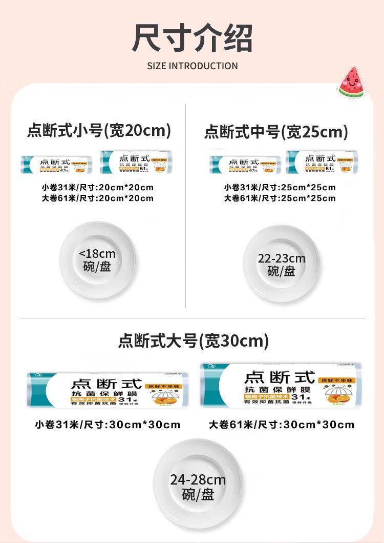 Disposable cling film PE food grade household refrigerator kitchen point-break fresh fruit sealing high temperature resistance 30 meters per roll 1 roll (20cm*20cm) small size