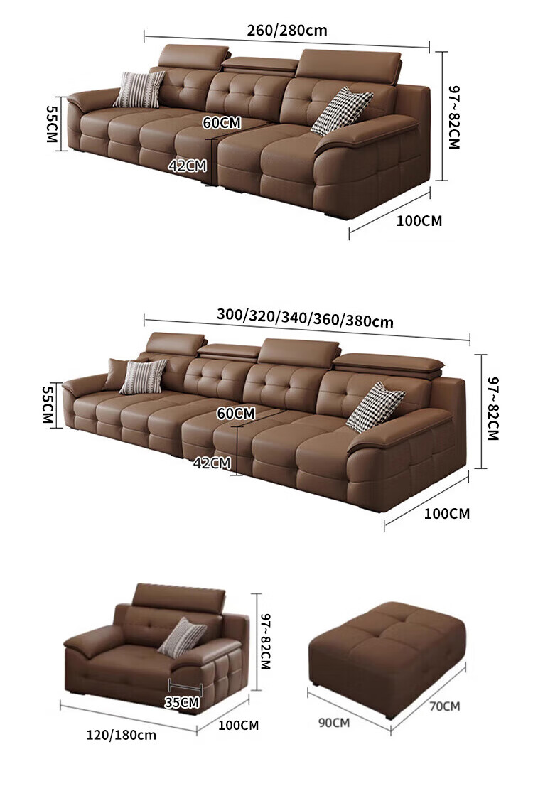 Suizhi Leather Sofa Government Subsidy Italian Sofa Living Room 2025 New Leather Art Sofa Lawrence Straight Row Large Unit Large Four-Seater 3.0 Meter Straight Row With Same Style Footrest Upgraded Contact Surface Thickened Genuine Leather + Imported Washed Latex Cushion