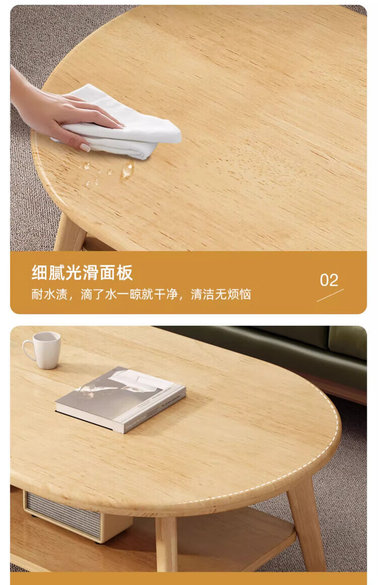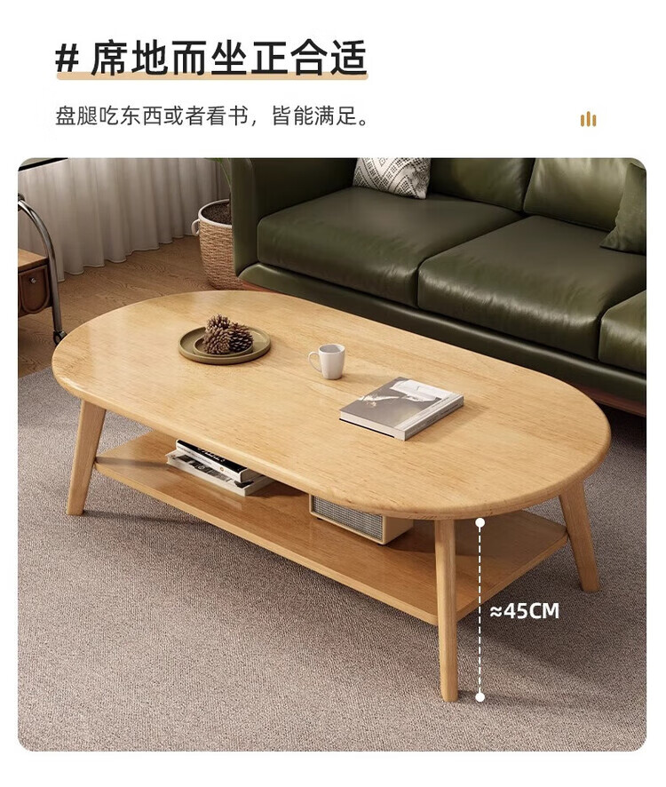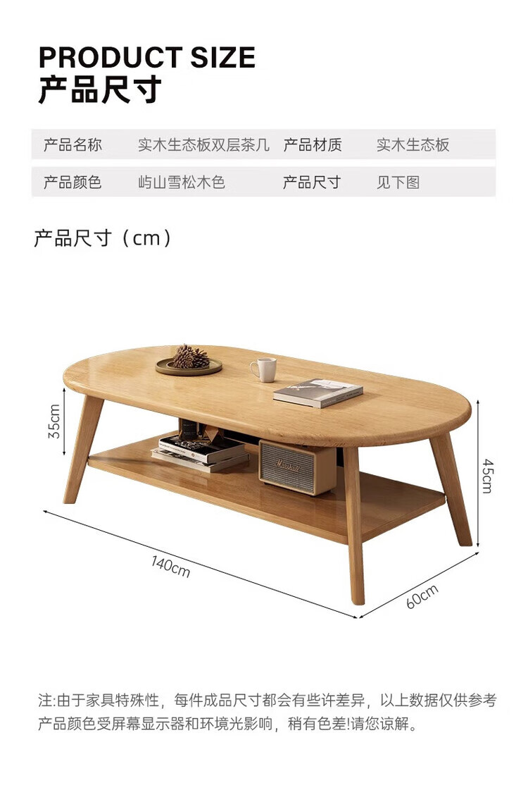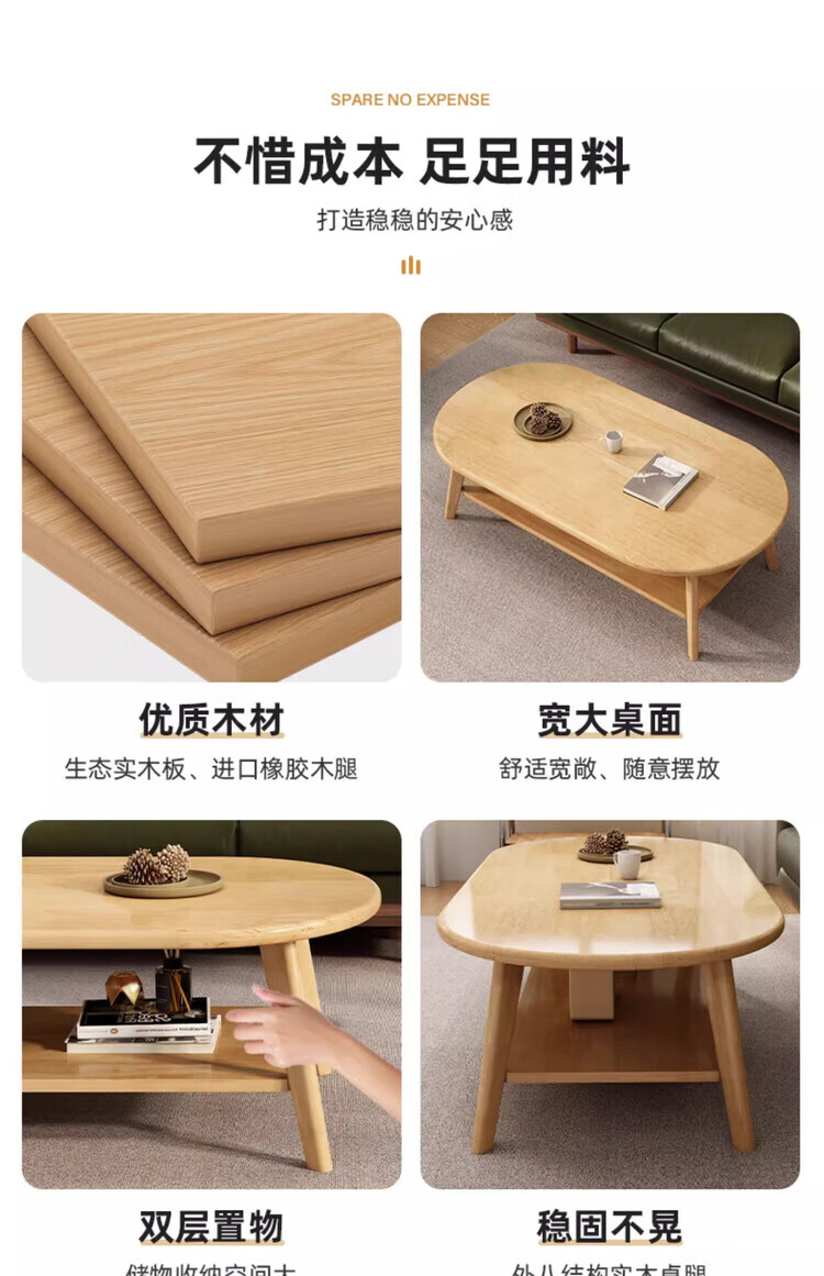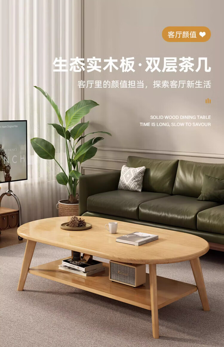 Solid wood core coffee table for living room, small apartment, simple modern rental house, 2025 new style log style coffee table, two sections, 100CM Lantau Island cedar wood color