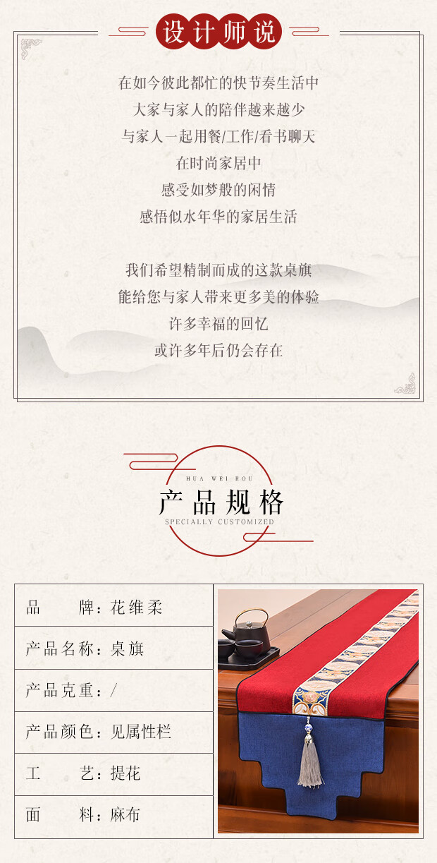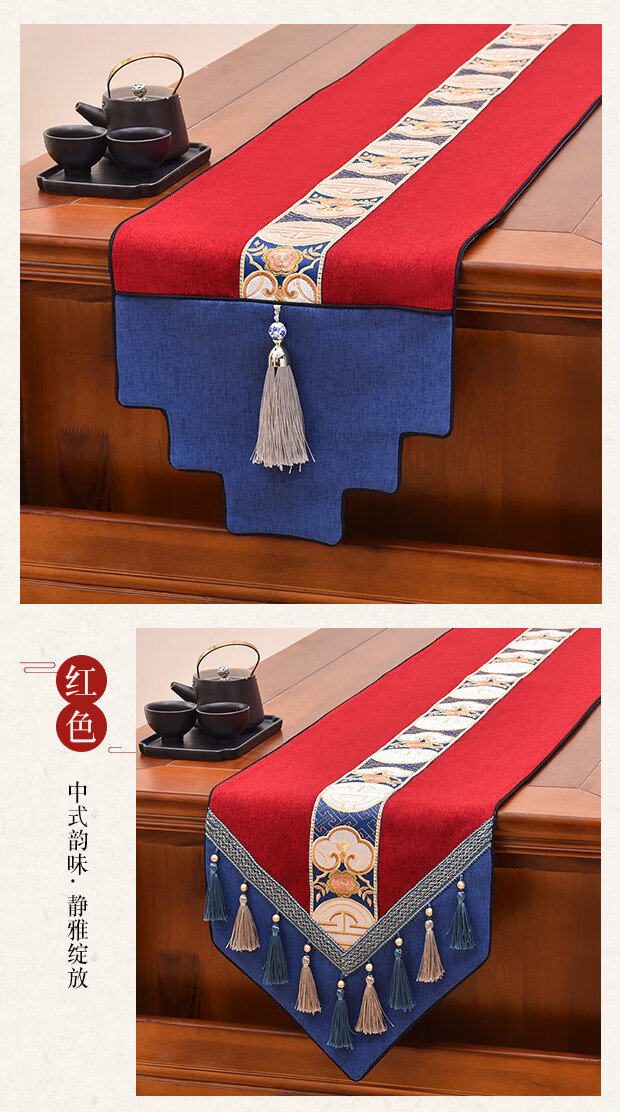 New Chinese style simple table flag simple modern style living room dining table sideboard coffee table entrance TV cabinet cover cloth red B 34x140 suitable for table length 70-90