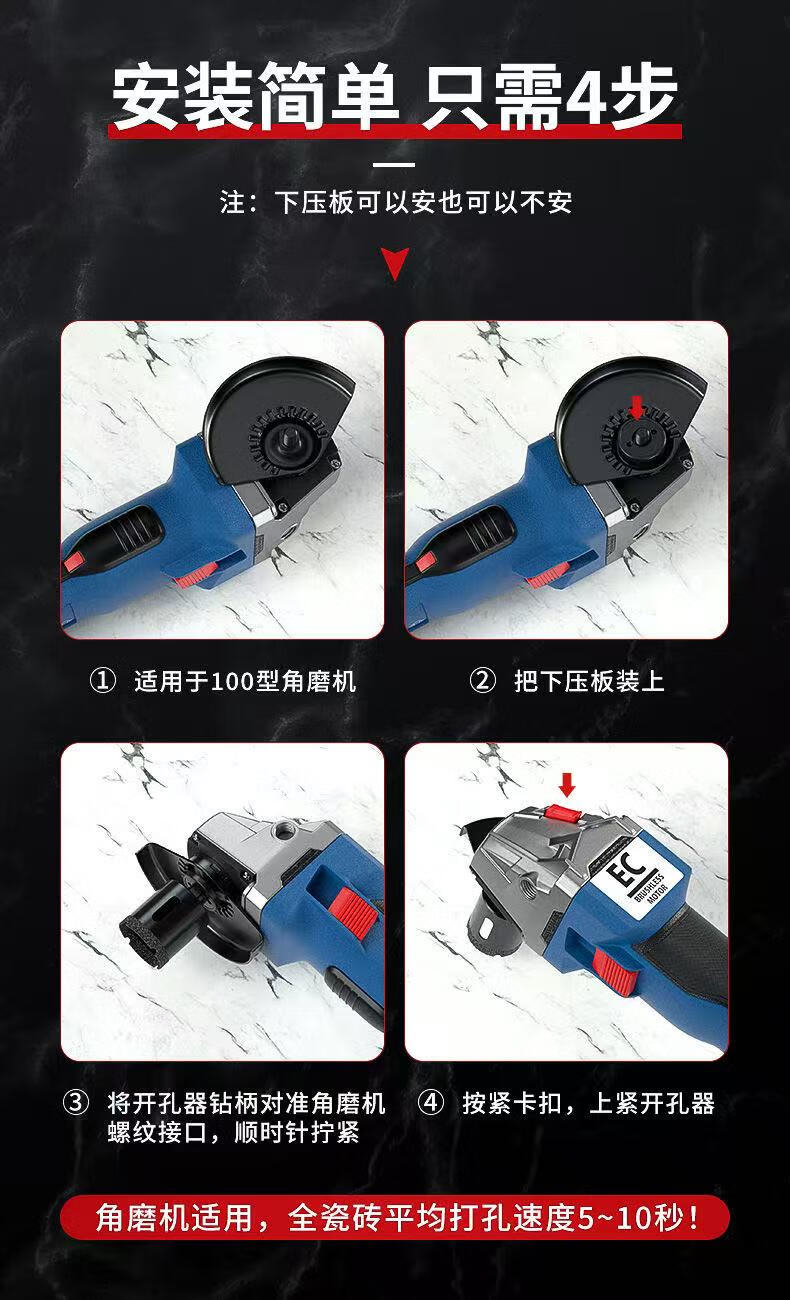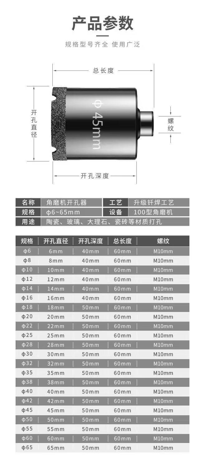 Angle grinder hole opener drill bit tile vitrified tile marble material glass hand grinder drilling special rock plate dry drilling angle grinder hole opener 42mm