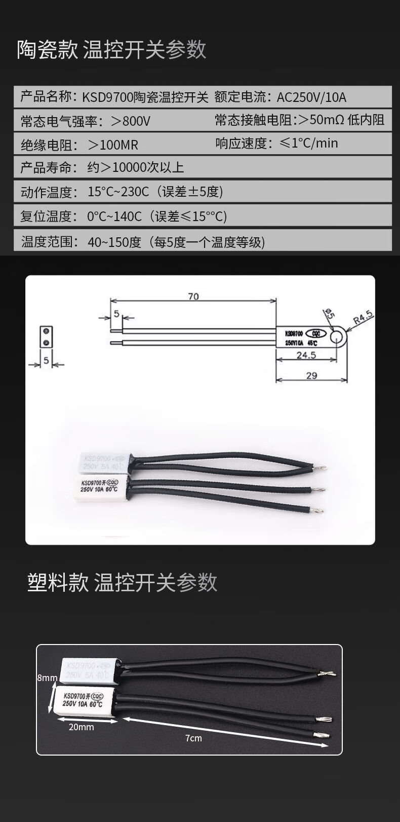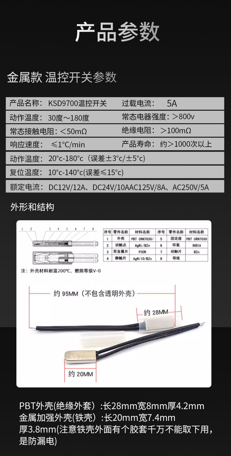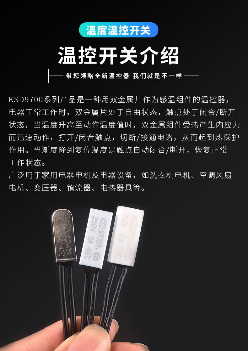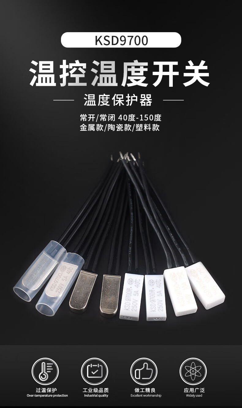 Zejie KSD9700 temperature control switch 5A temperature thermal protector 40/45/50/90/100~155 degrees normally open normally closed KSD9700 temperature control switch 5A metal normally open 50 degrees (1 piece)