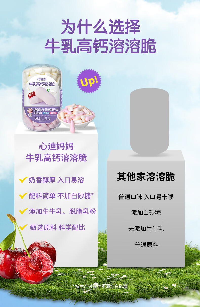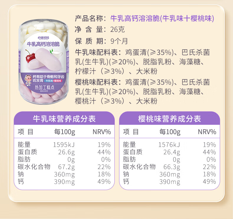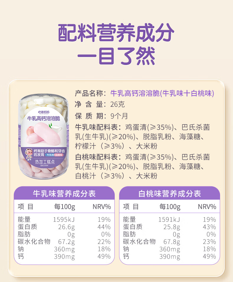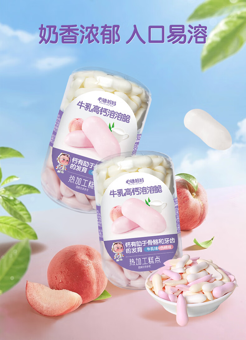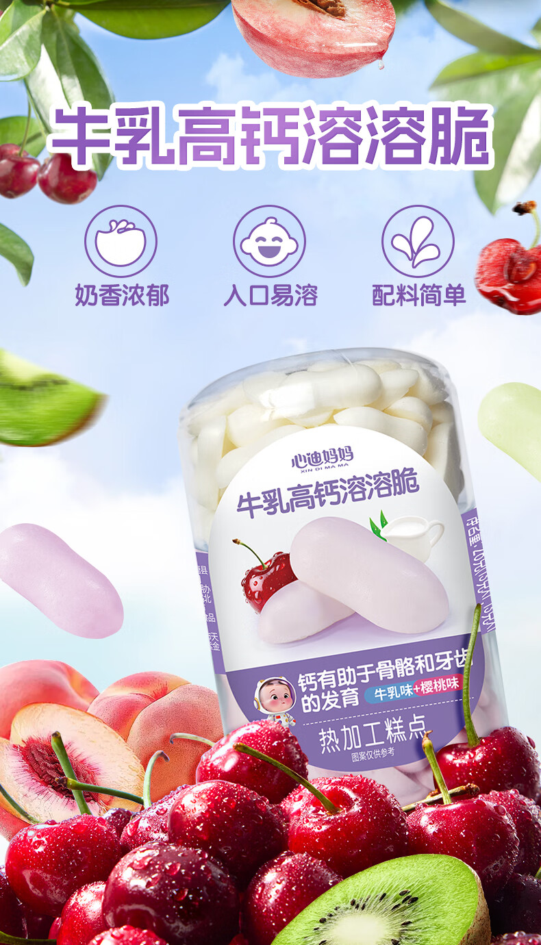 Xindi Mama High Calcium Melting Crisp Beans 26g Baby Snacks and Complementary Food for Children Over 1 Year Old Fruity Flavor 0 Added Sucrose 3 Cans | Value Combination White Peach Flavor + Cherry Flavor + Kiwi Flavor