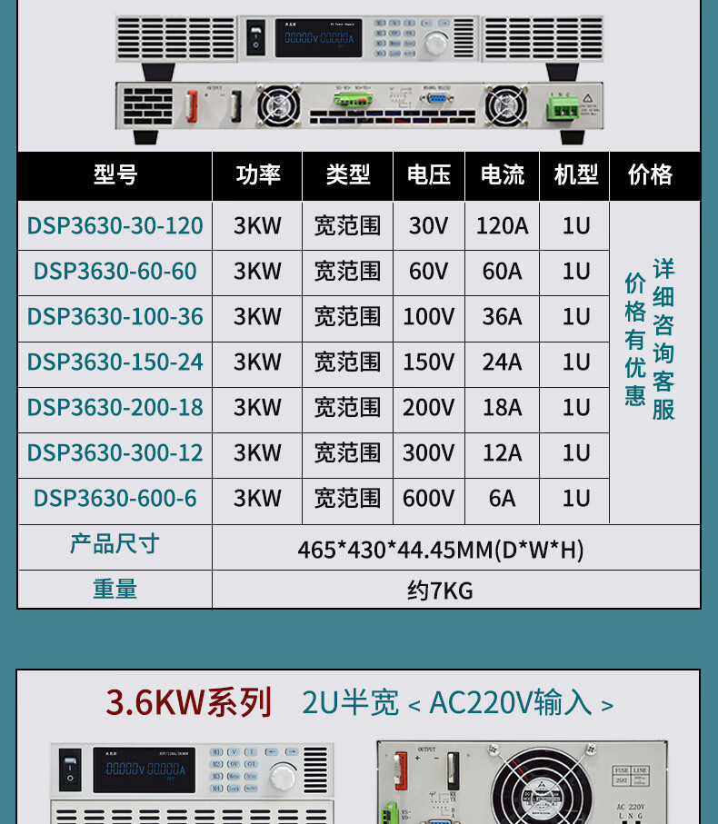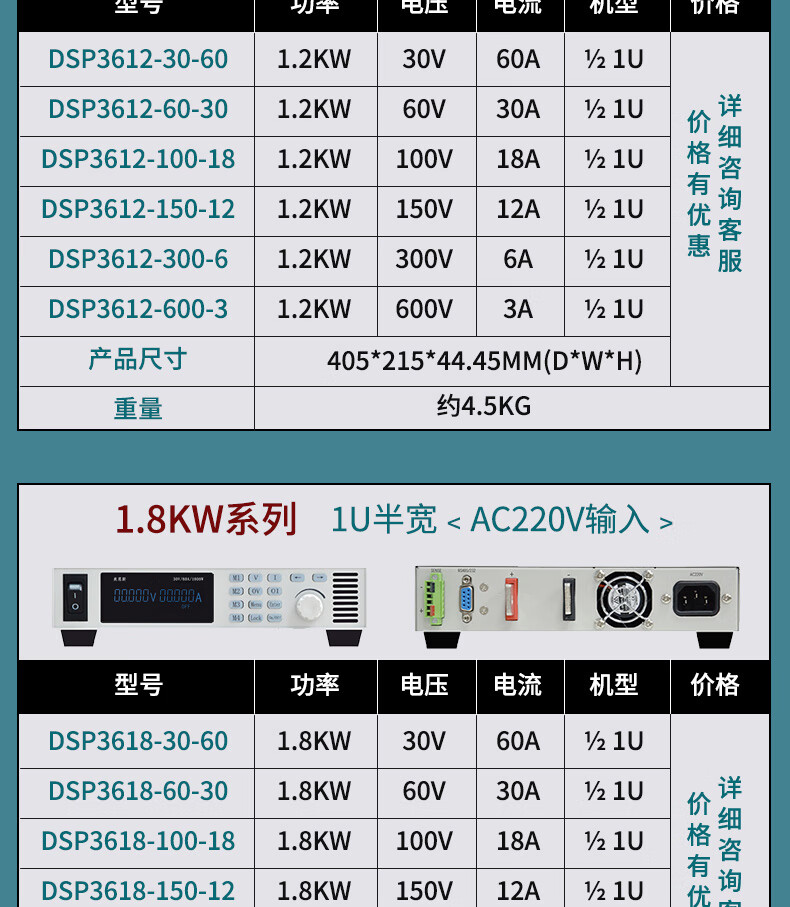 Mains DSP3600 high-power programmable DC regulated power supply high-precision adjustable constant voltage and constant current source aging test DSP3618-30-60 (1.8KW) 1U half width