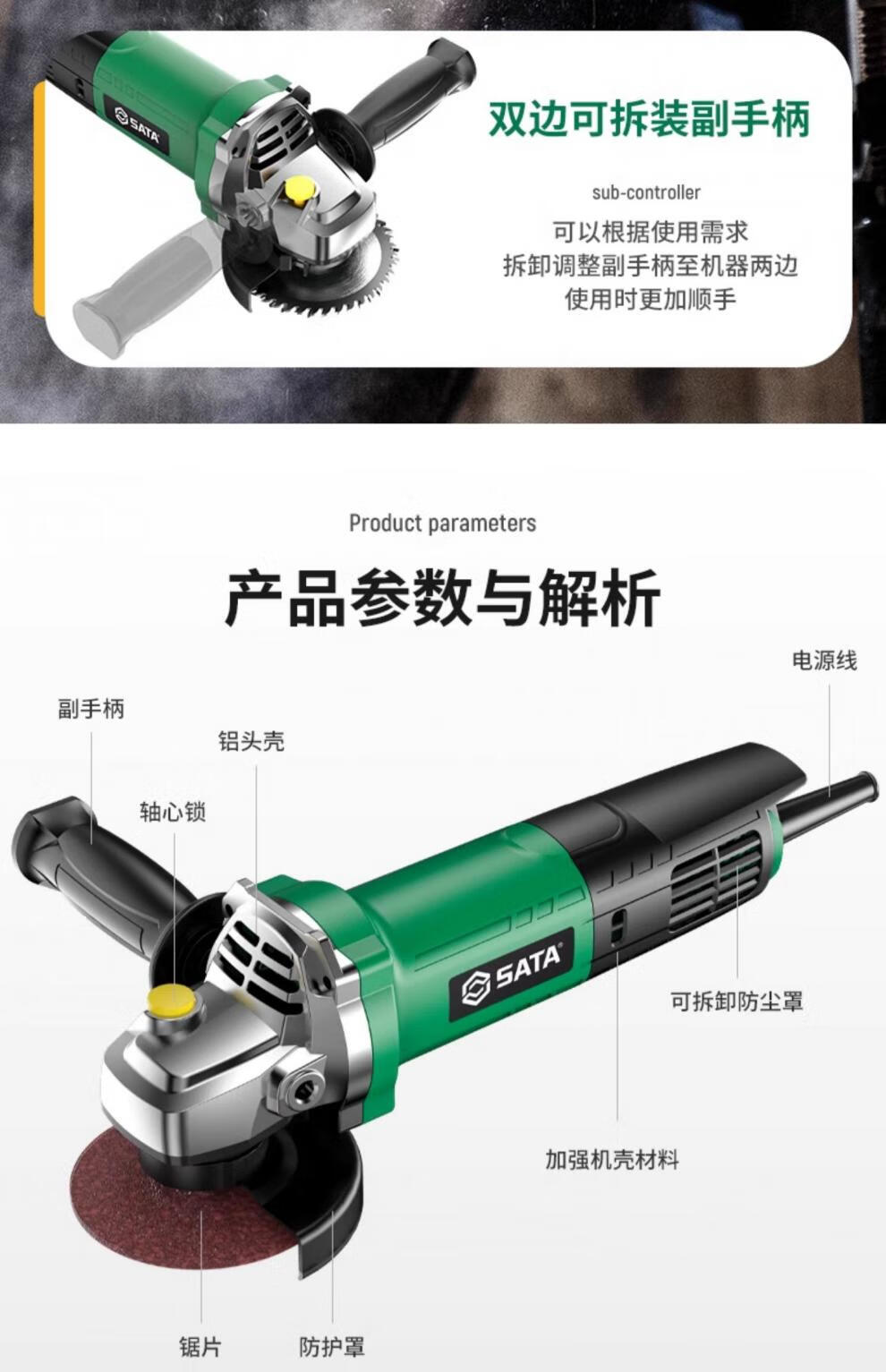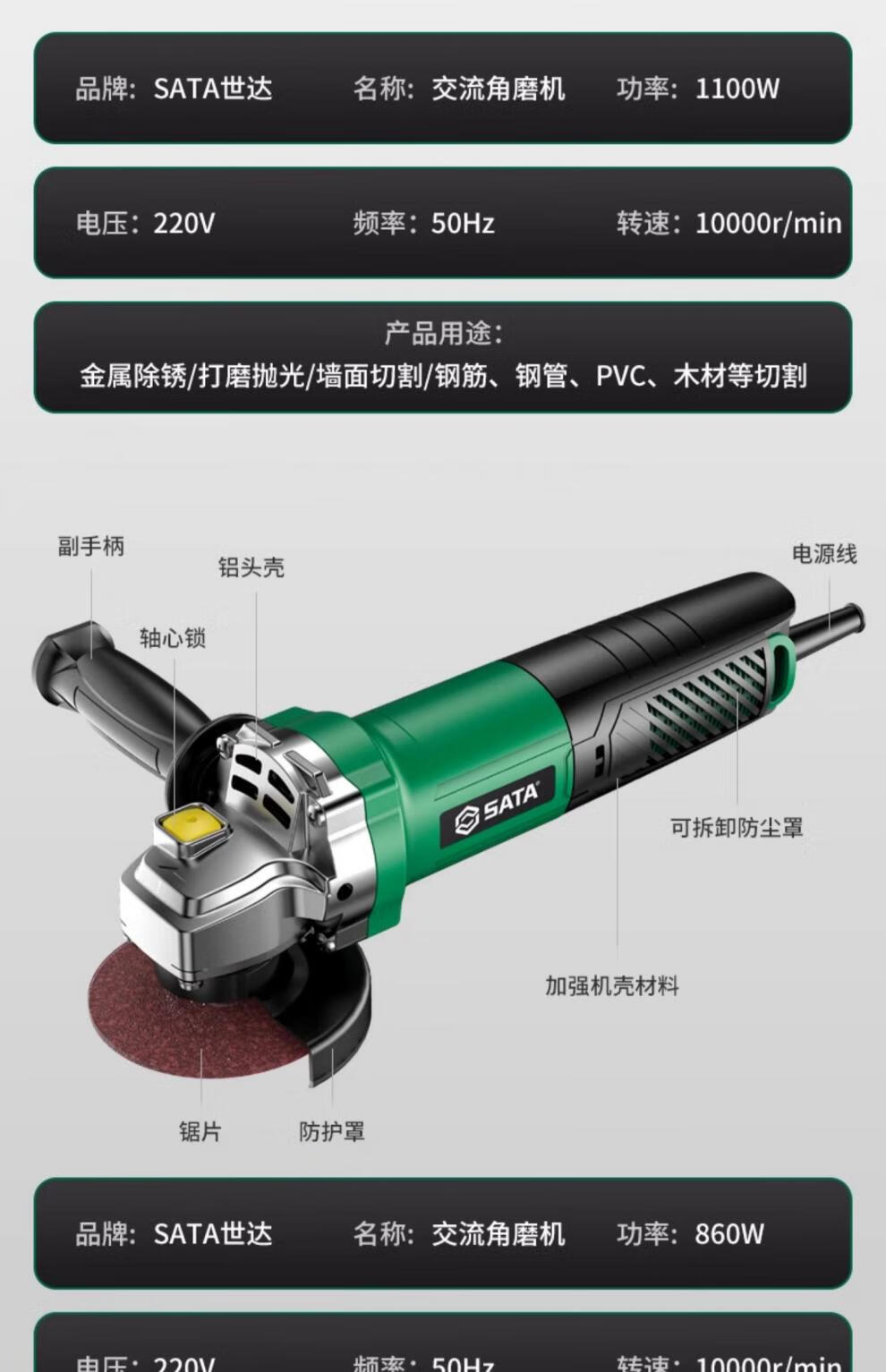 SATA angle grinder, multi-function cutting machine, household hand grinding wheel, high-power hand grinder, polishing machine, polishing machine, industrial flagship model/1100W SC51312+ basic package