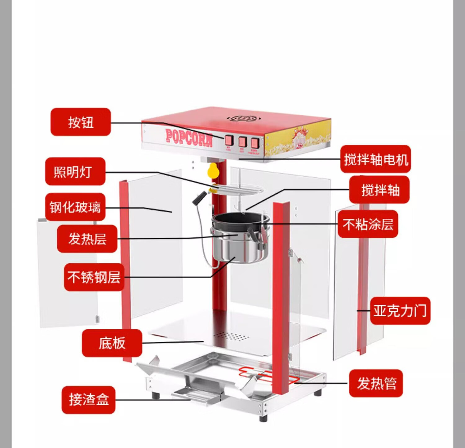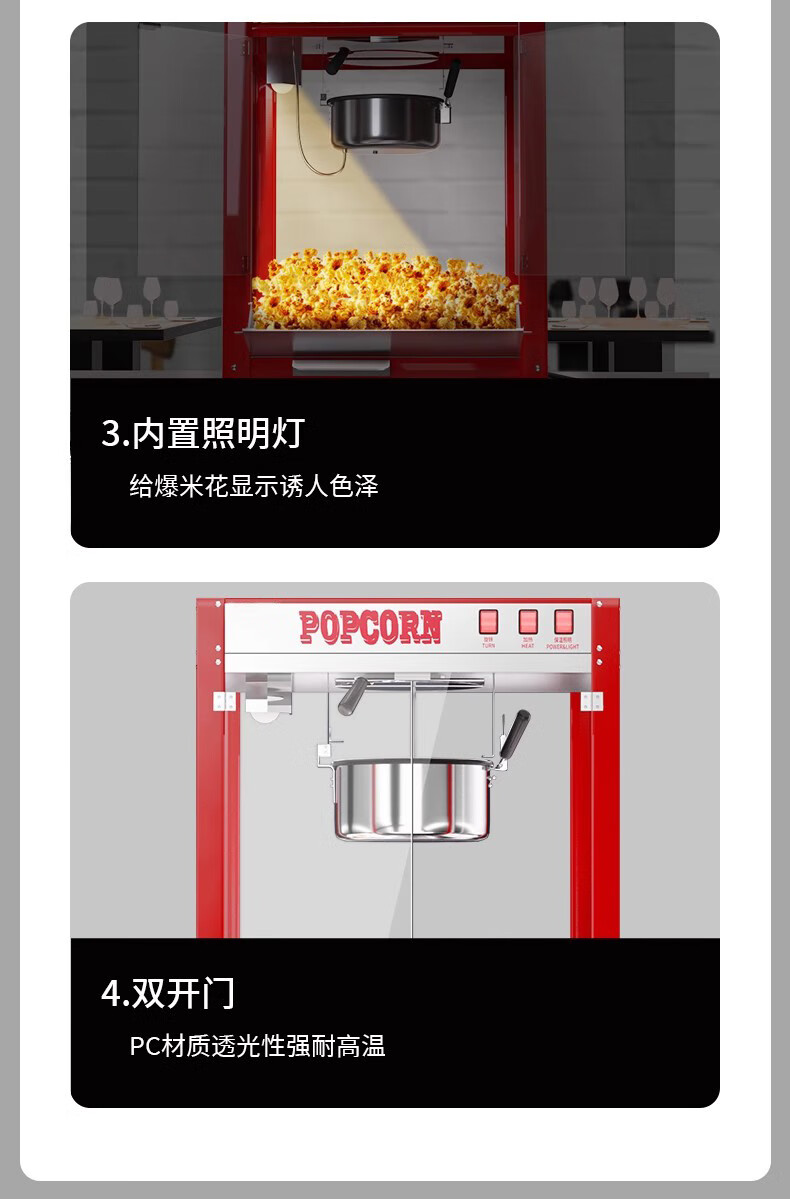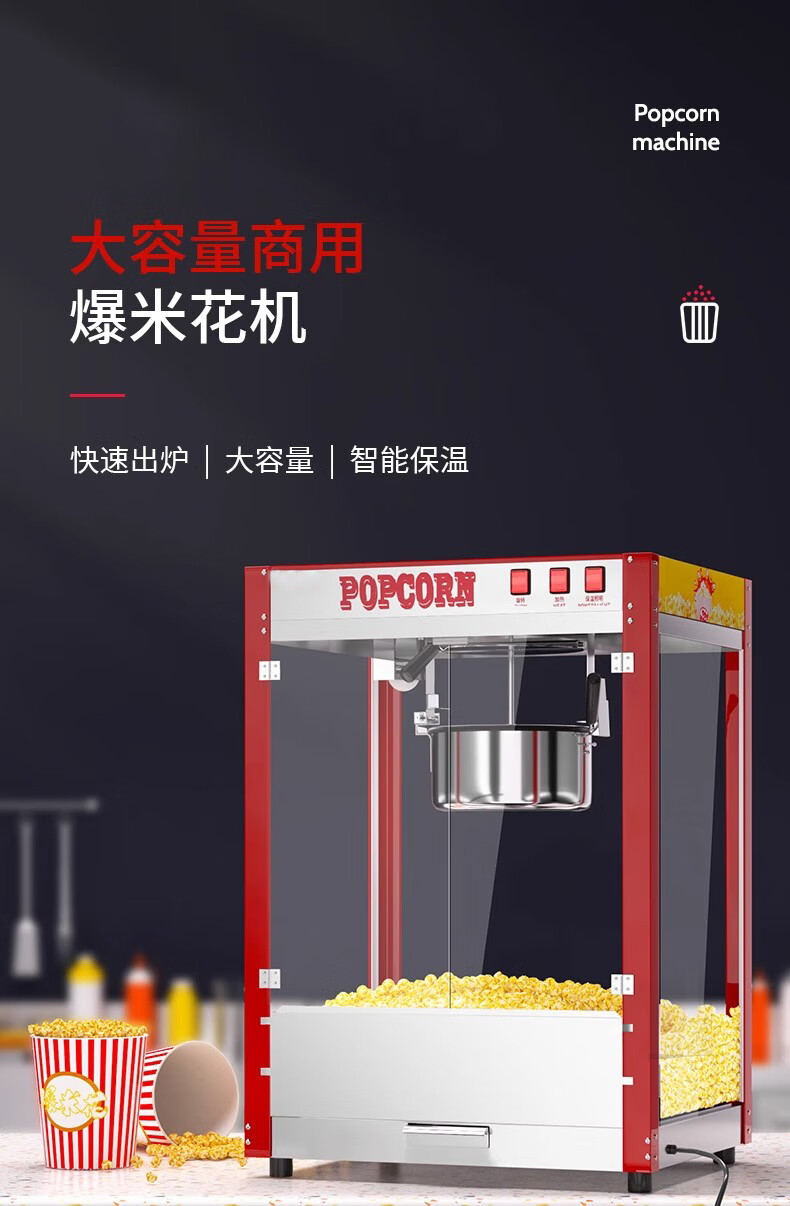 Zhuangmai commercial popcorn machine electric heated popcorn pot popcorn machine flower-shaped spherical fully automatic popcorn machine CNC model + butterfly three-in-one 40 packs stainless steel