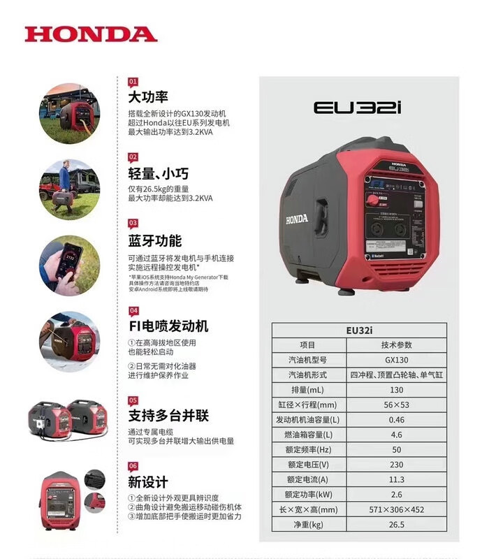 Honda Silent Generator 220V Portable Gasoline 3000W
