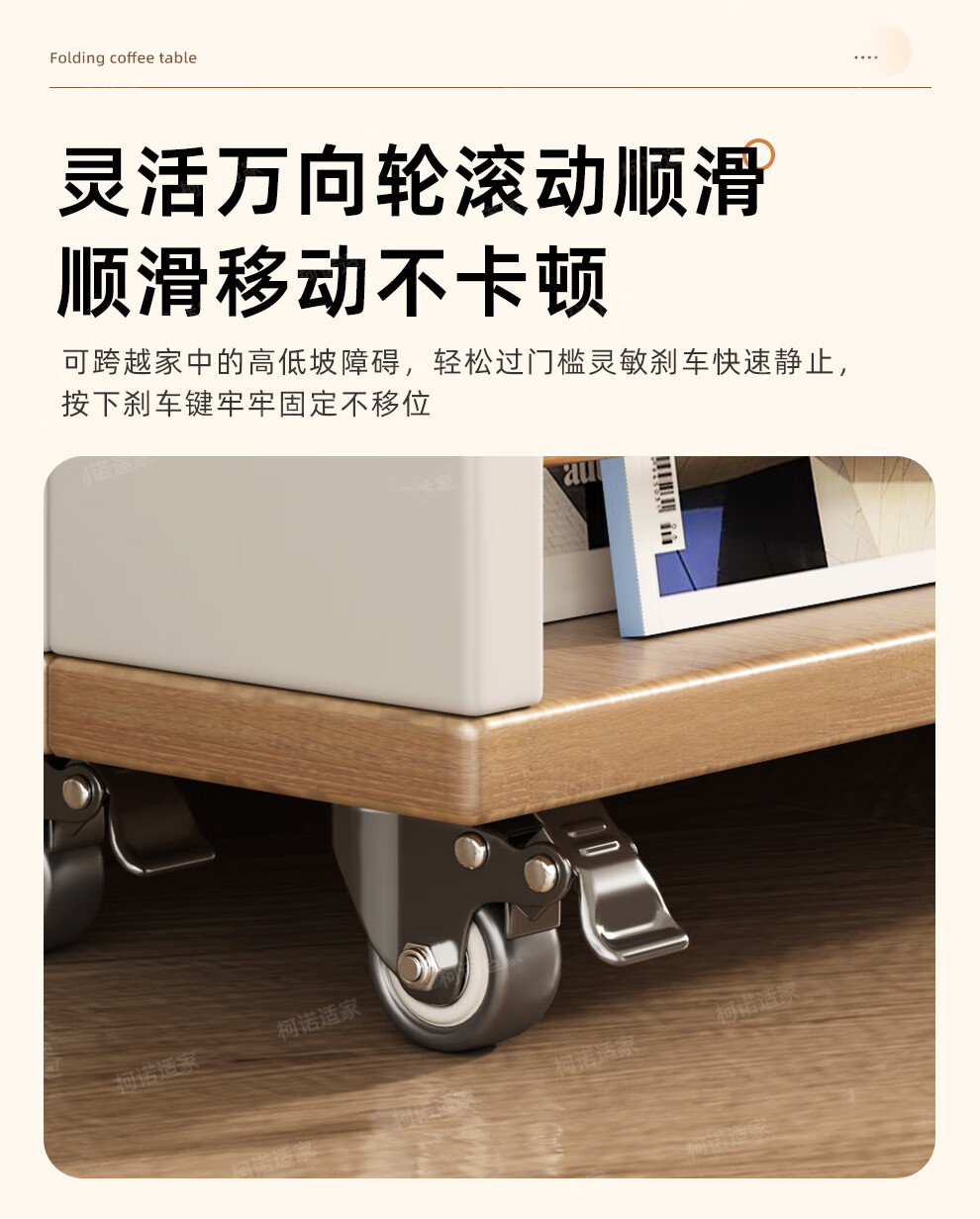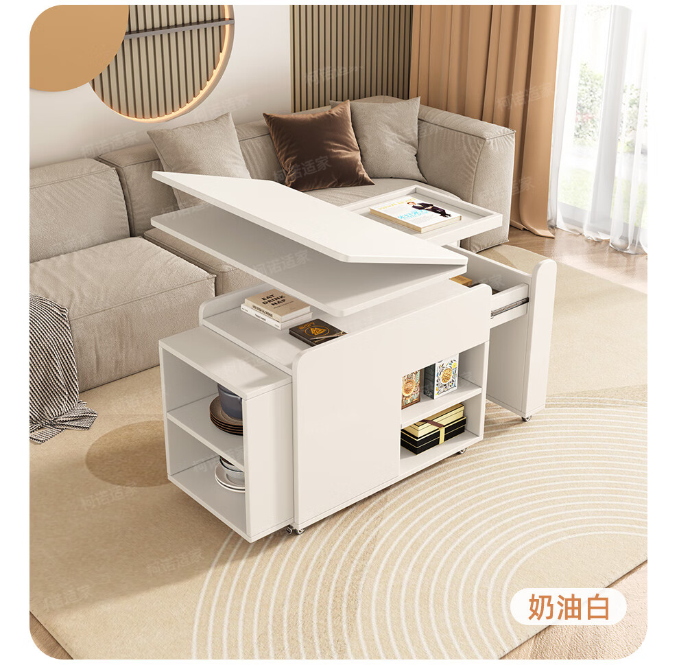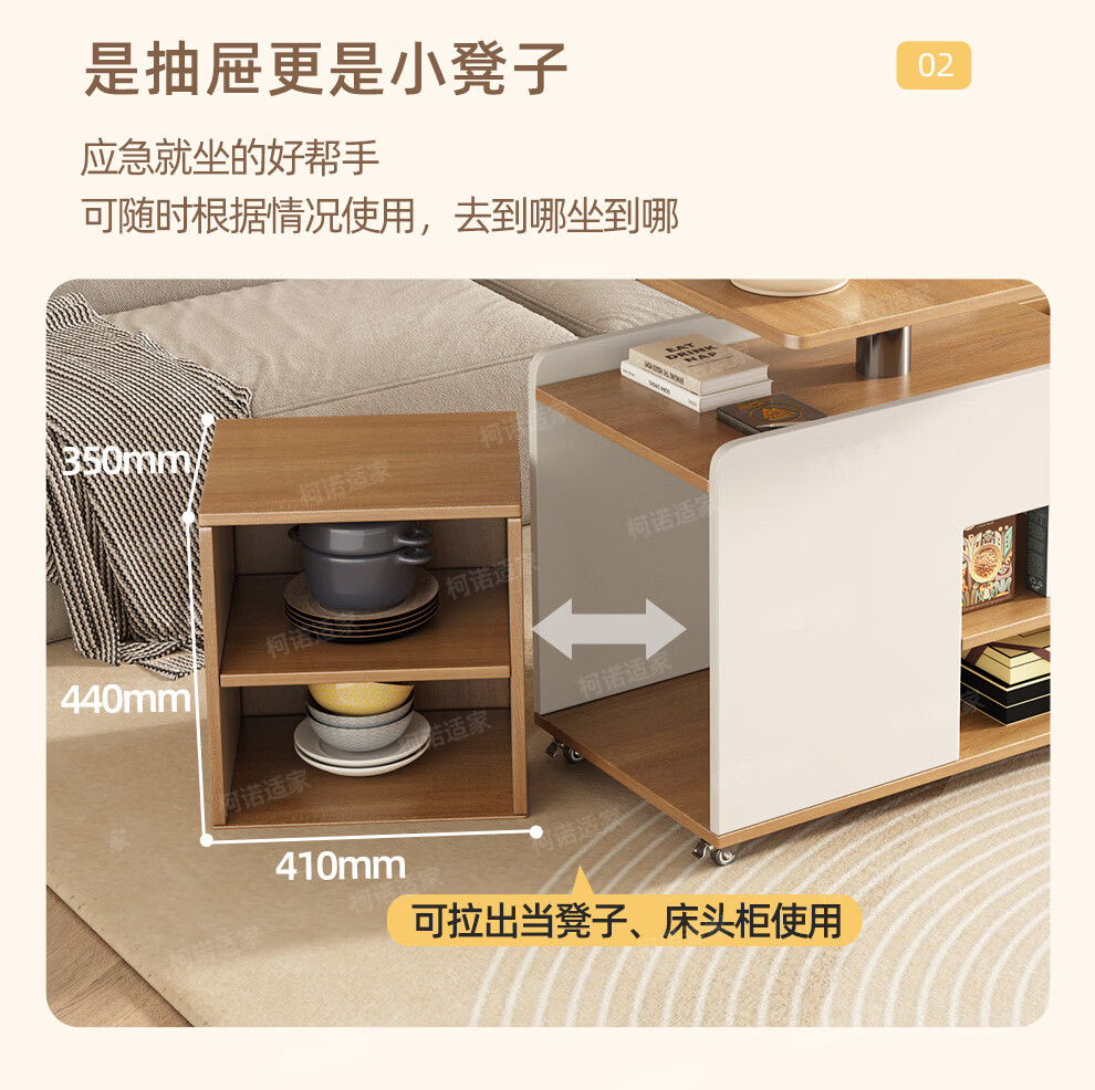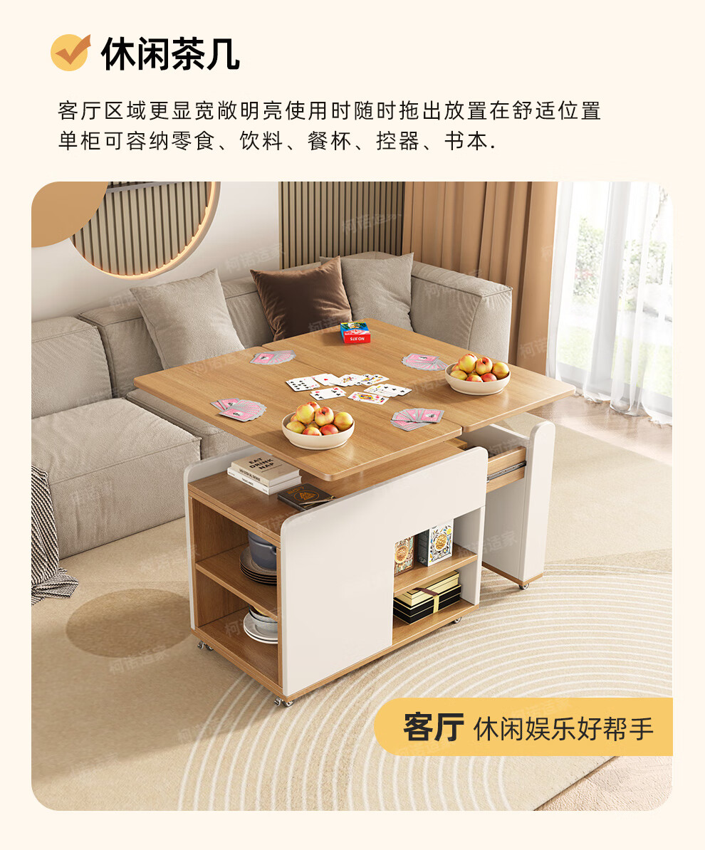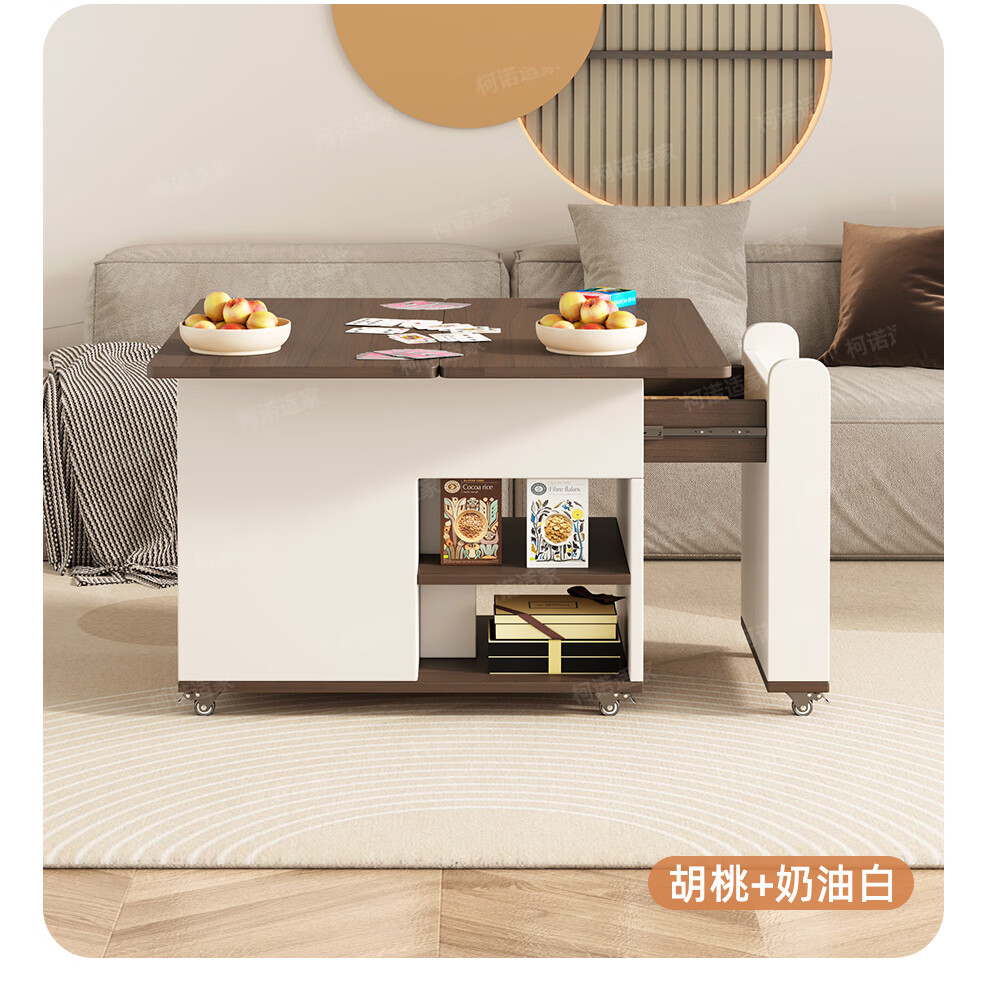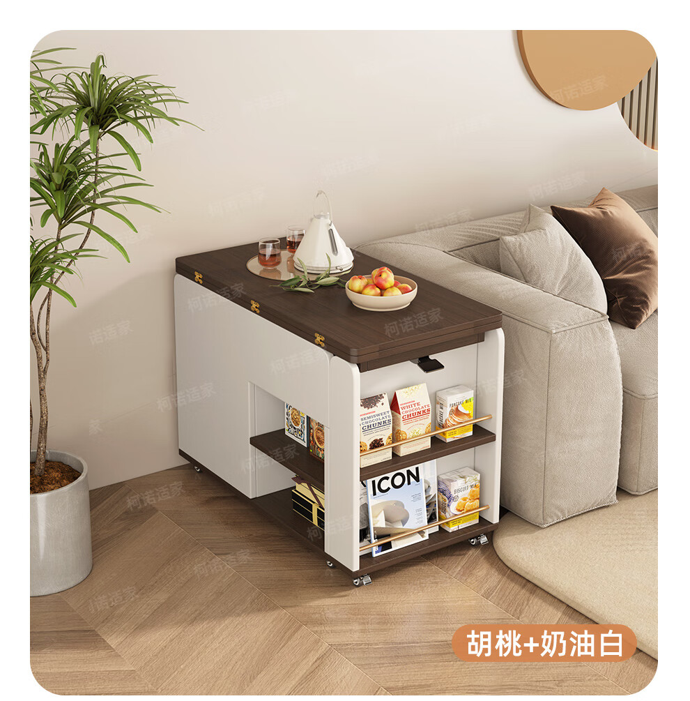 KNSJ Rotating Folding Coffee Table Telescopic Dining Table Living Room Sofa Side Multiple Simple Functions Trolley Movable Tea Cabinet Rotating Folding Coffee Table Wood Color
