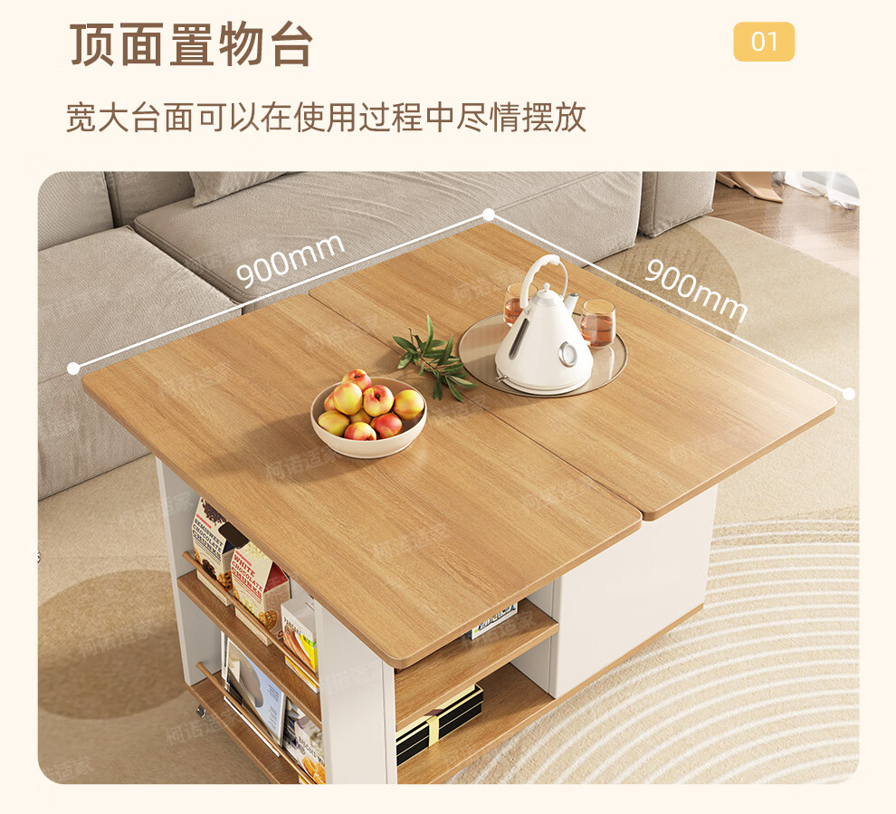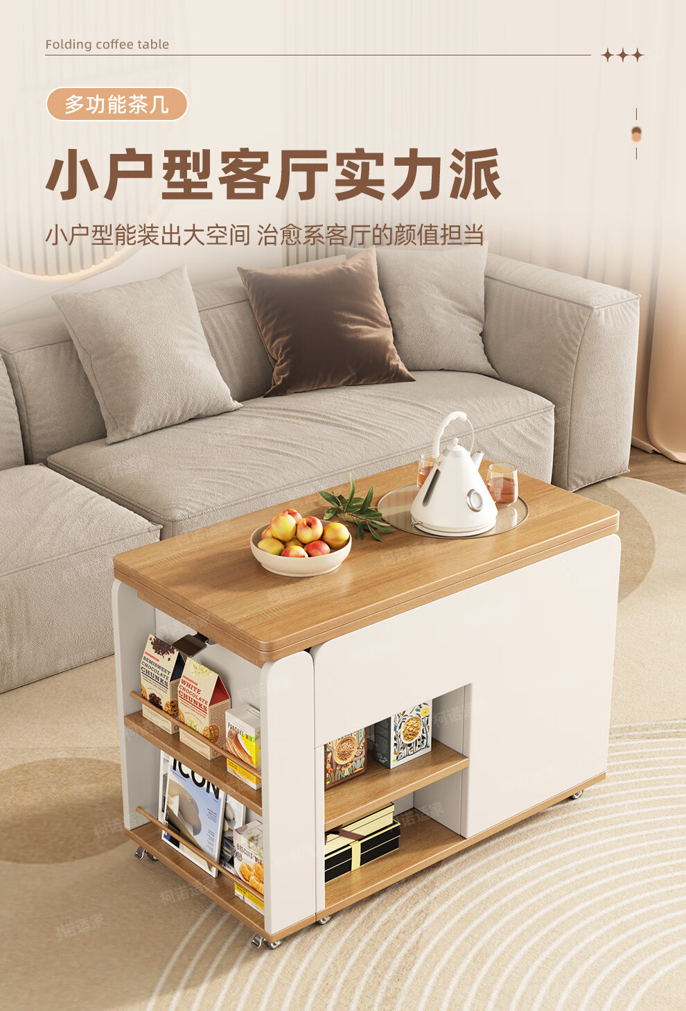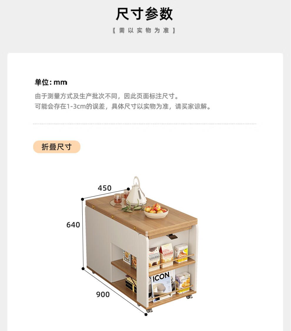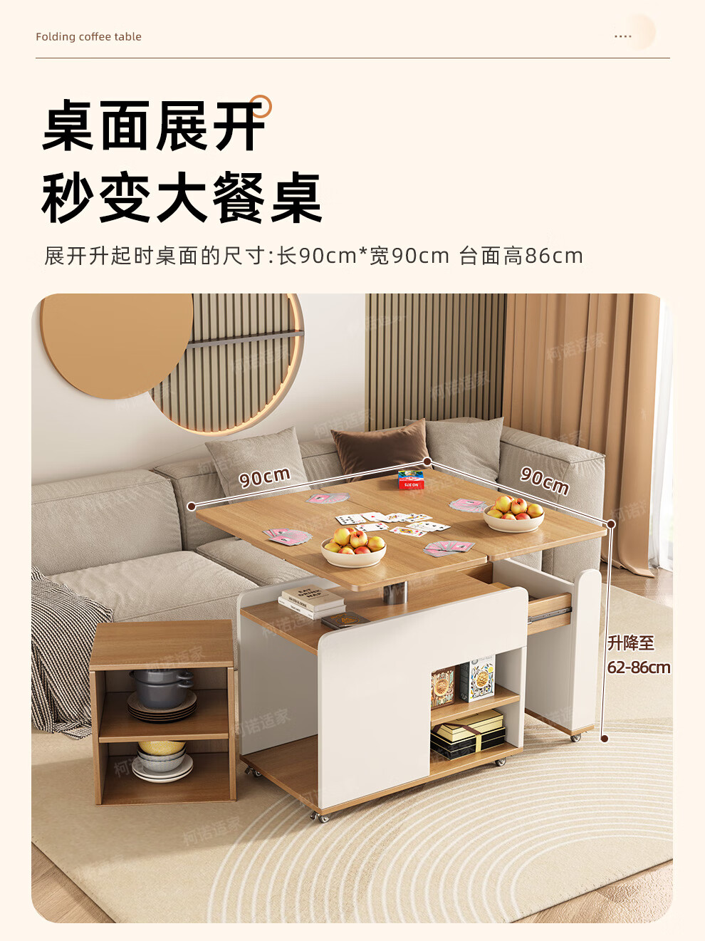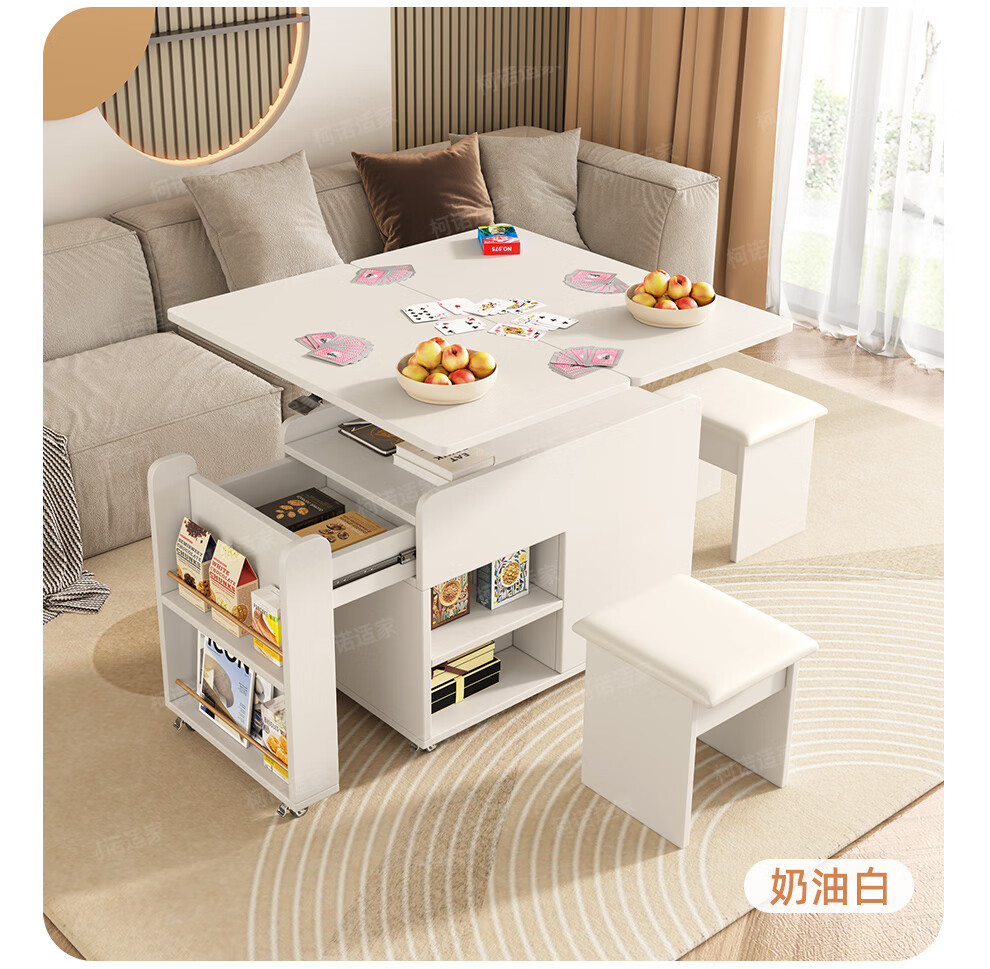 KNSJ Rotating Folding Coffee Table Telescopic Dining Table Living Room Sofa Side Multiple Simple Functions Trolley Movable Tea Cabinet Rotating Folding Coffee Table Wood Color