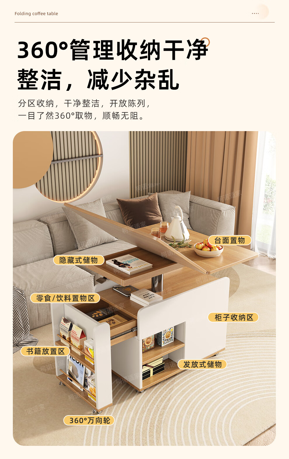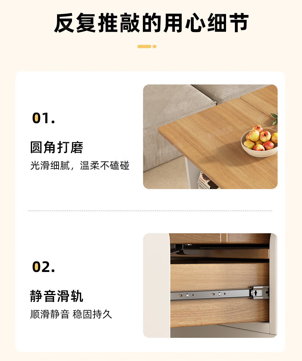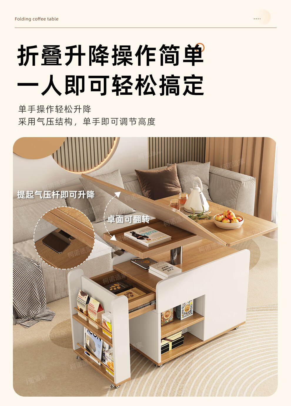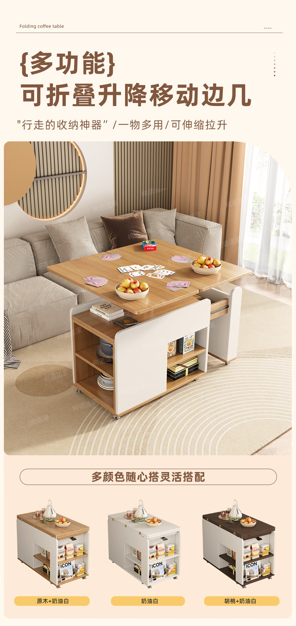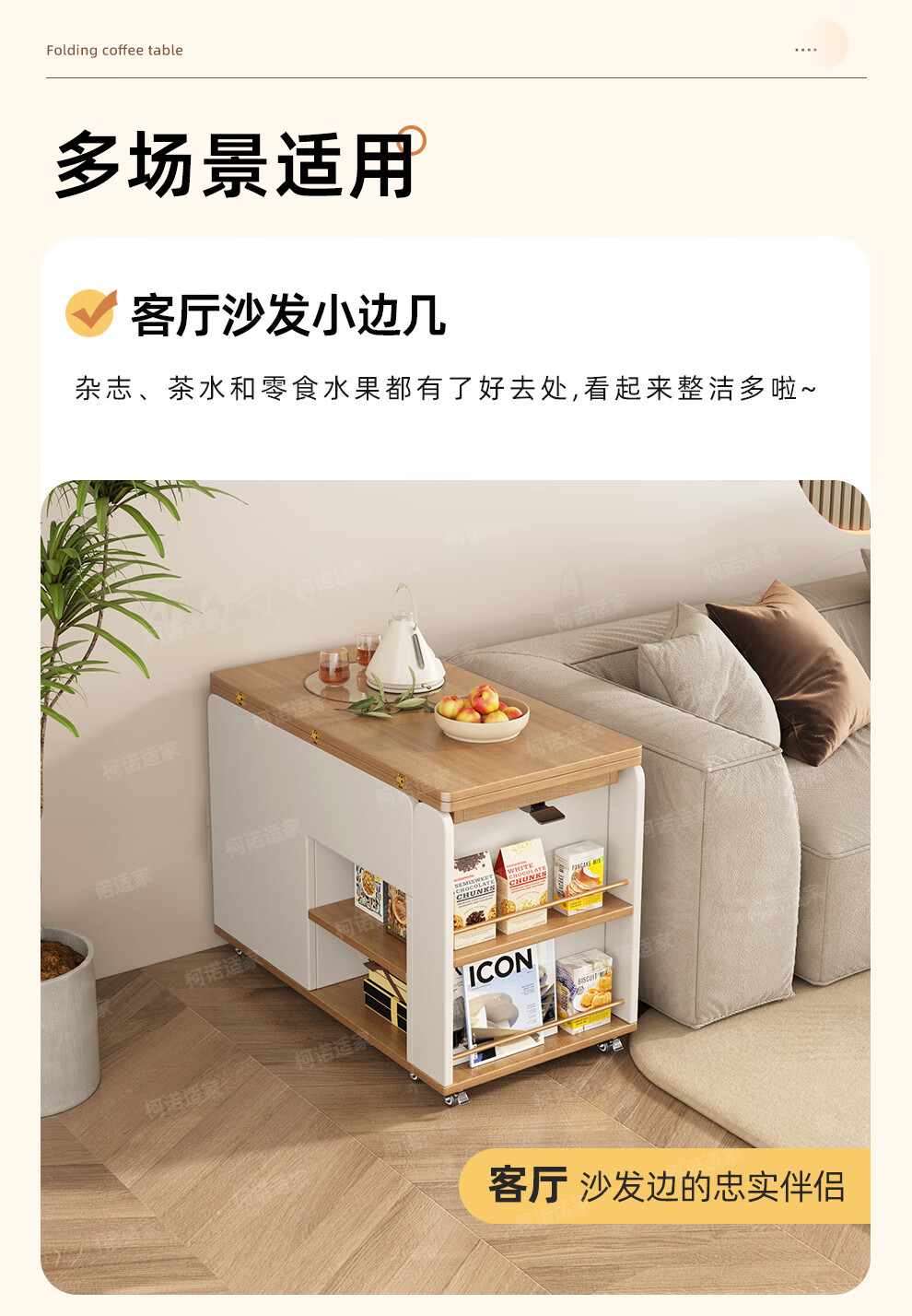 KNSJ Rotating Folding Coffee Table Telescopic Dining Table Living Room Sofa Side Multiple Simple Functions Trolley Movable Tea Cabinet Rotating Folding Coffee Table Wood Color