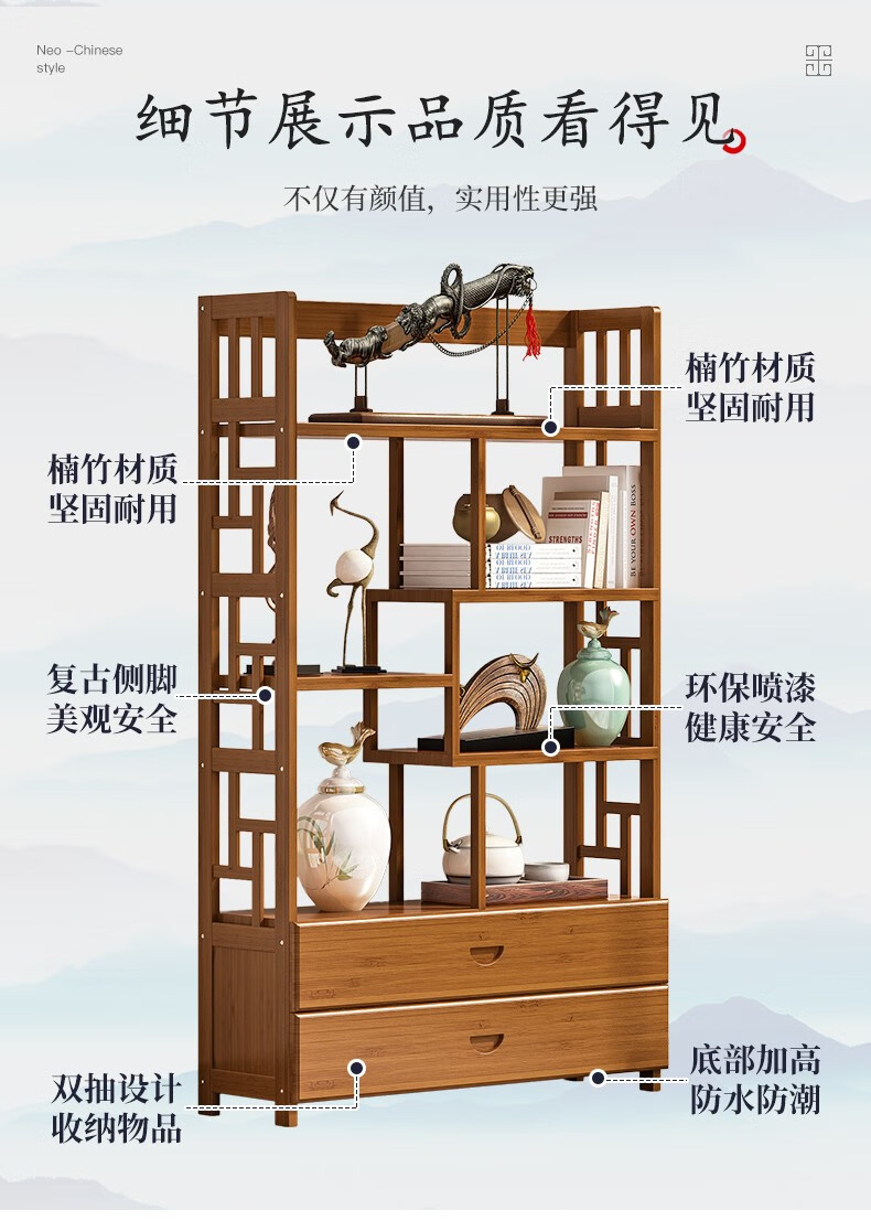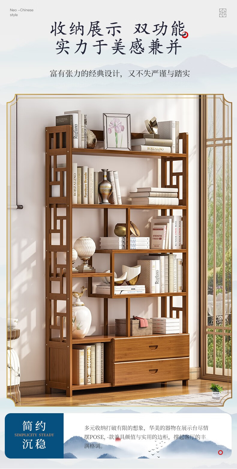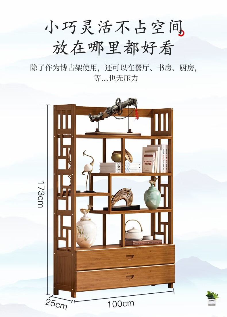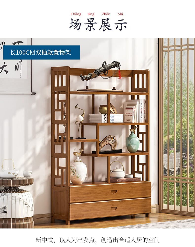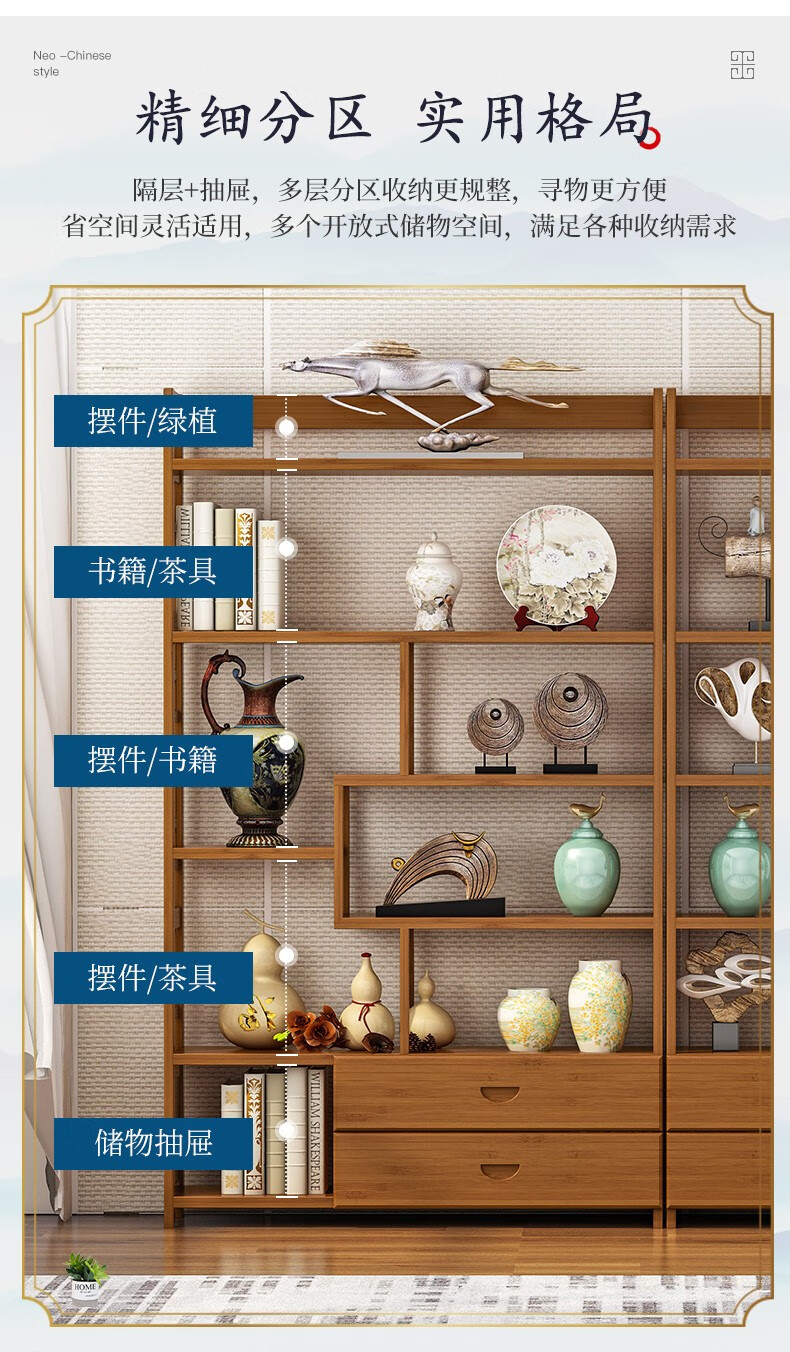 Sizhuge solid wood new Chinese style Bogu rack ornament display cabinet Duobaoge tea set partition tea storage storage shelf simple 80 simple style thickened and reinforced
