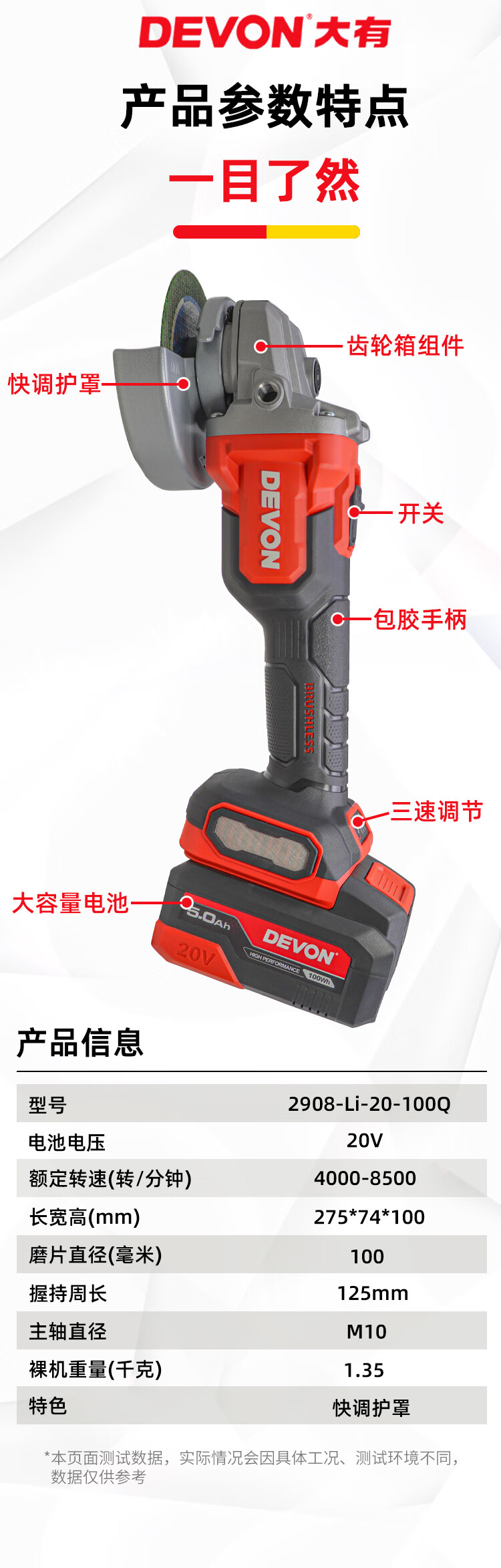 Dayou brushless speed lithium electric angle grinder 2908 original accessories 4000/7500 mAh battery 20V charger Dayou 2908 angle grinder bare metal + 5.0Ah battery