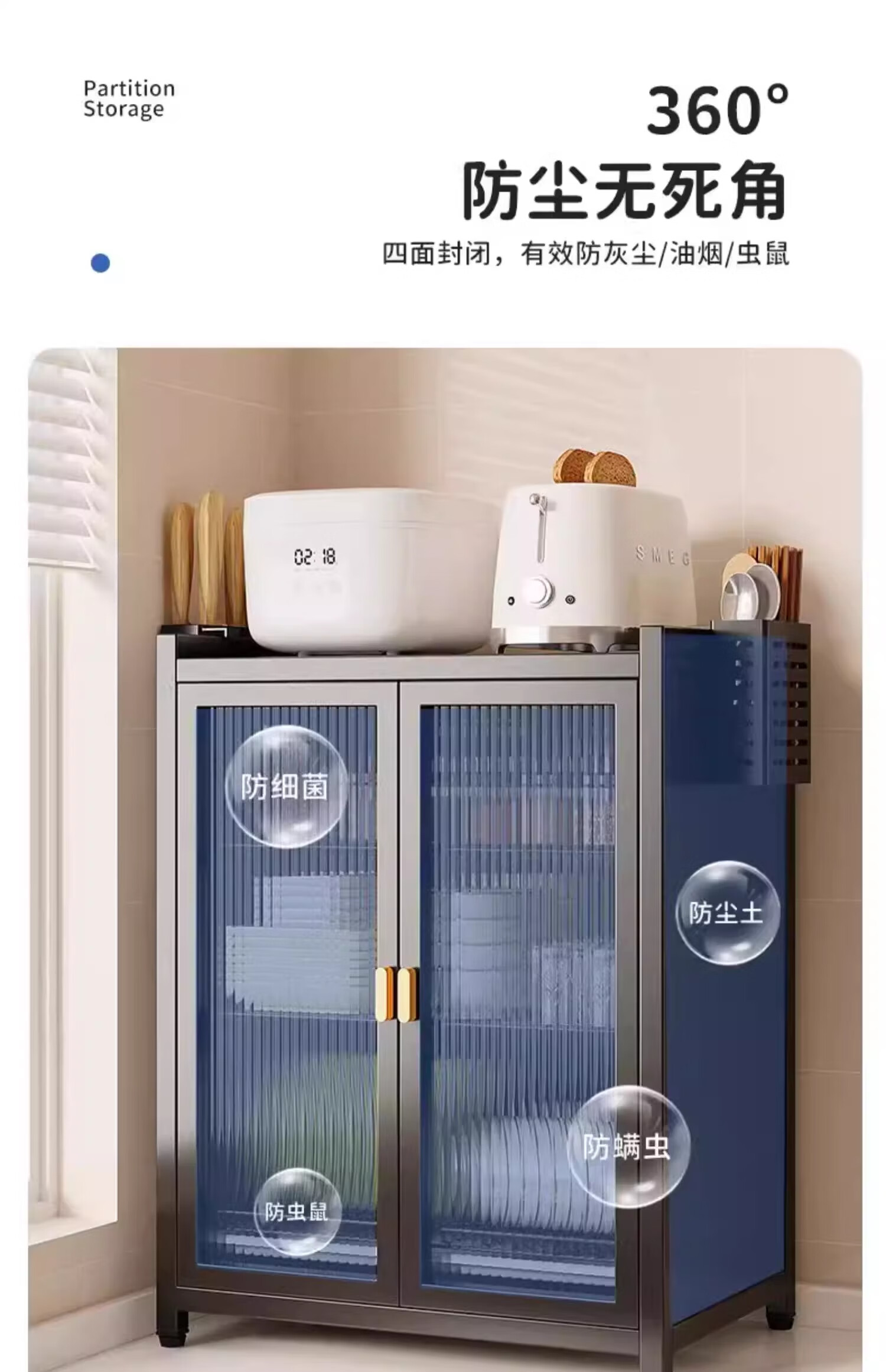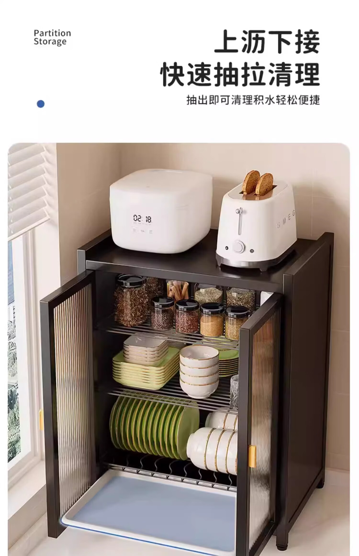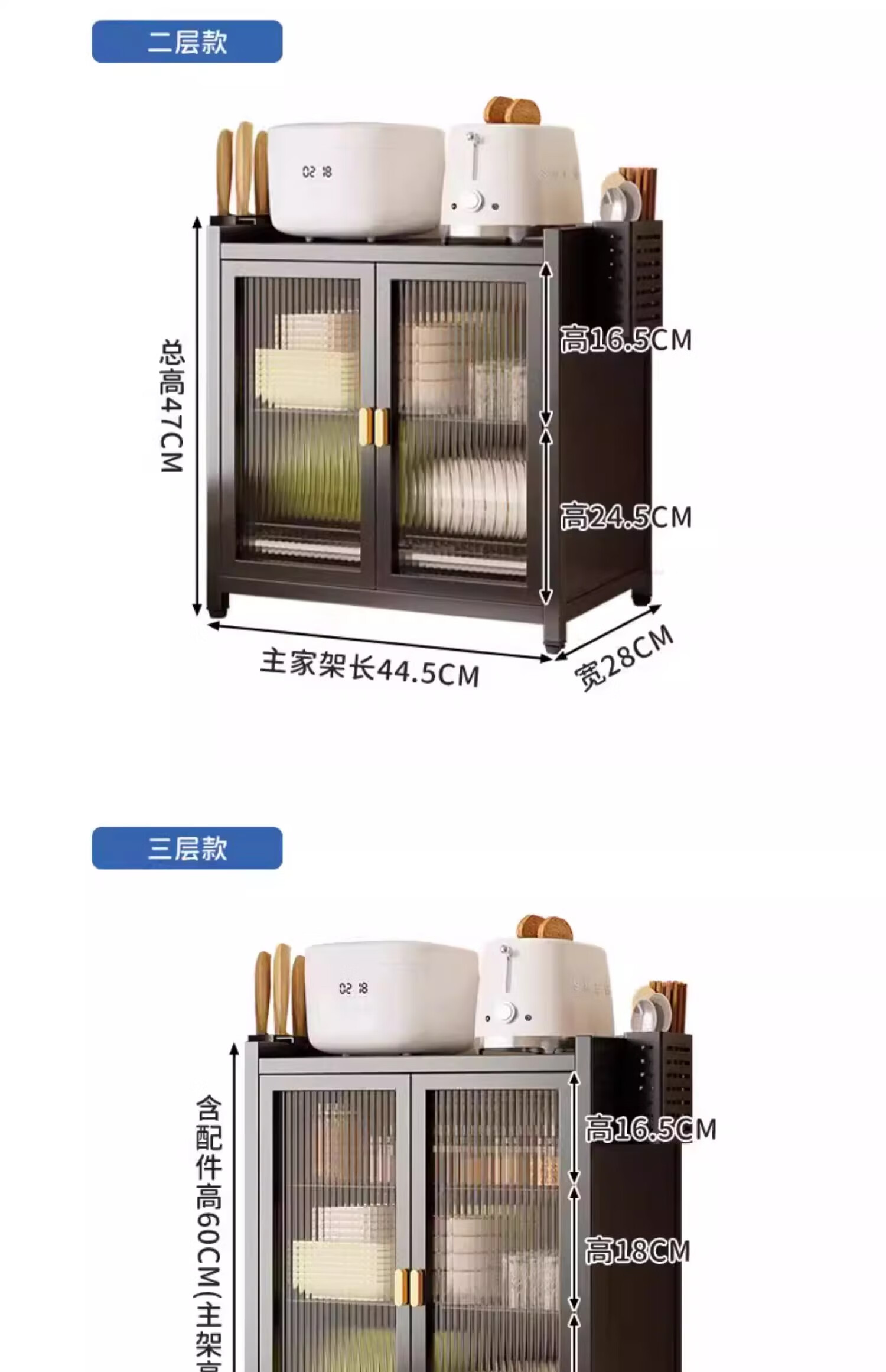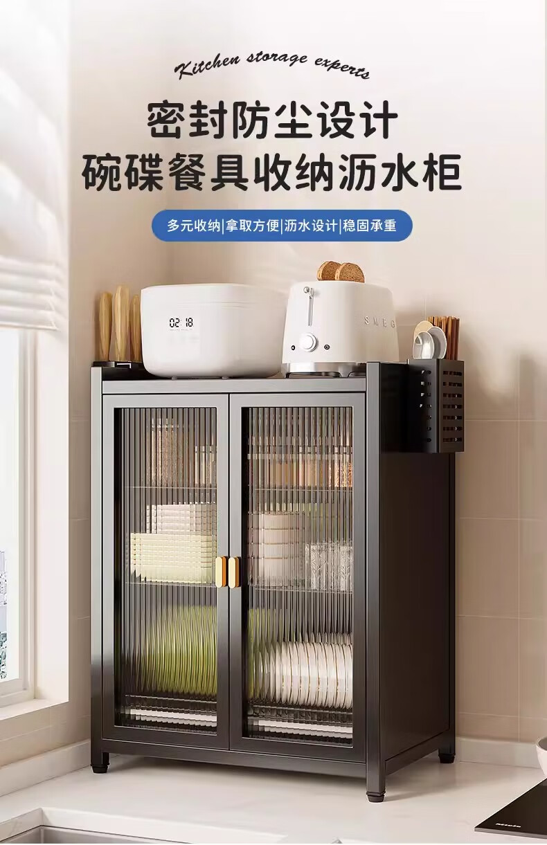 Lazy Space Home Cupboard Kitchen Dishes Storage Cabinet Carbon Steel Drainage Bowl Rack Dust-Proof Dish Rack Kitchenware Storage Rack 60CM Three Layers Gray + Accessories Hot First Order Special Price