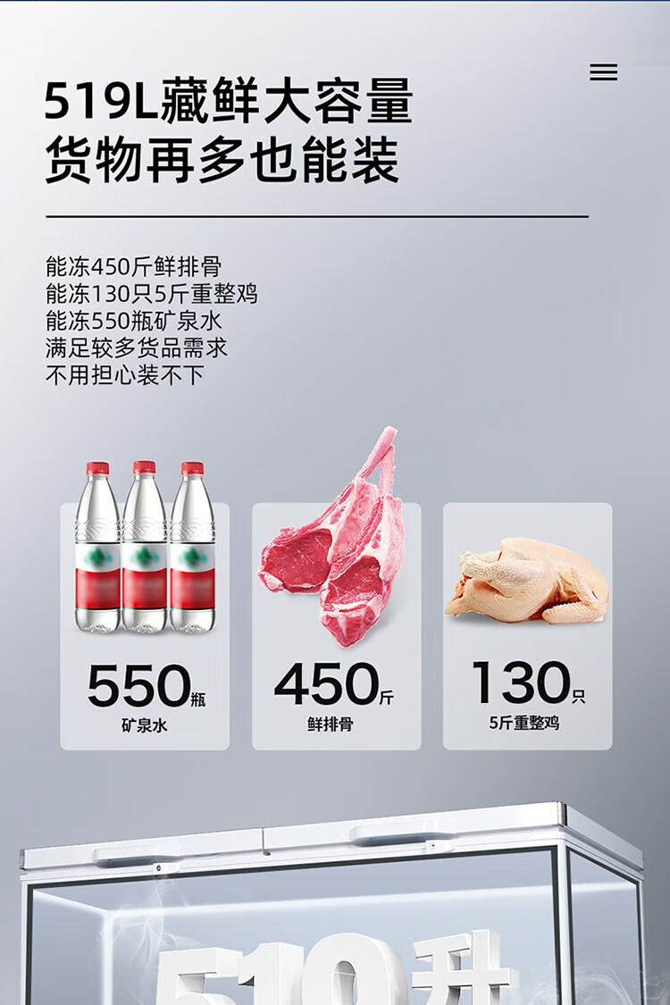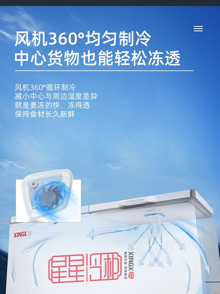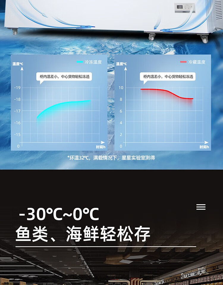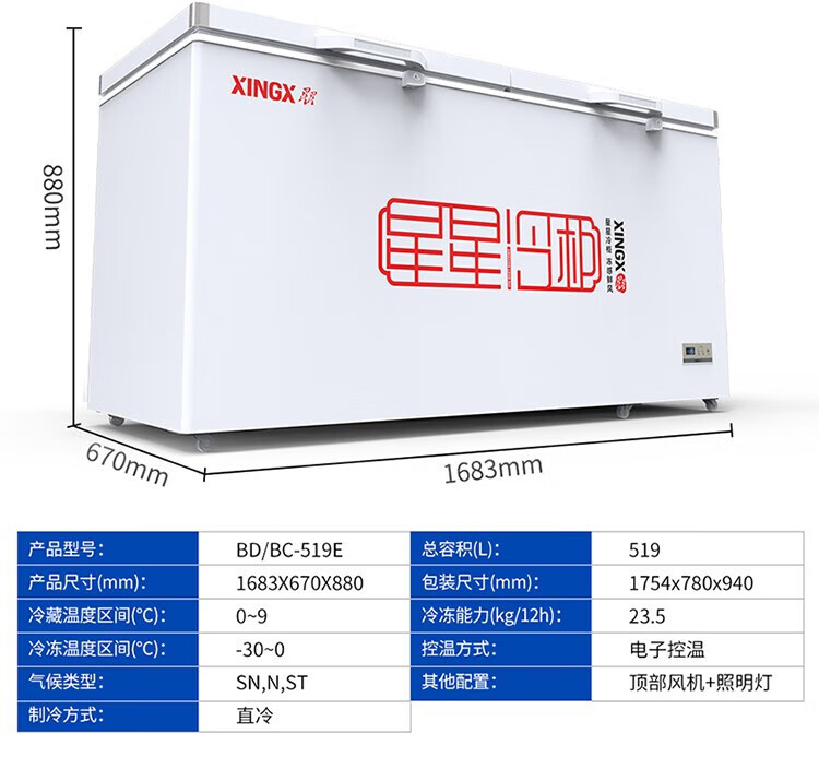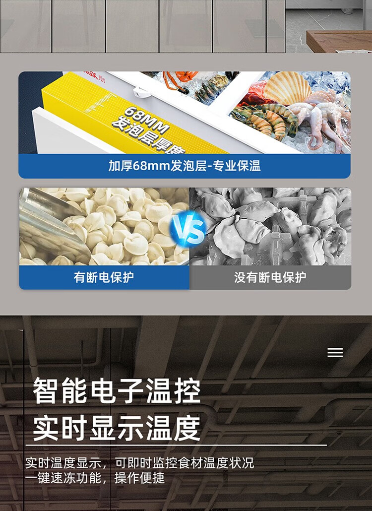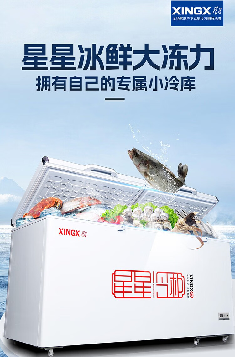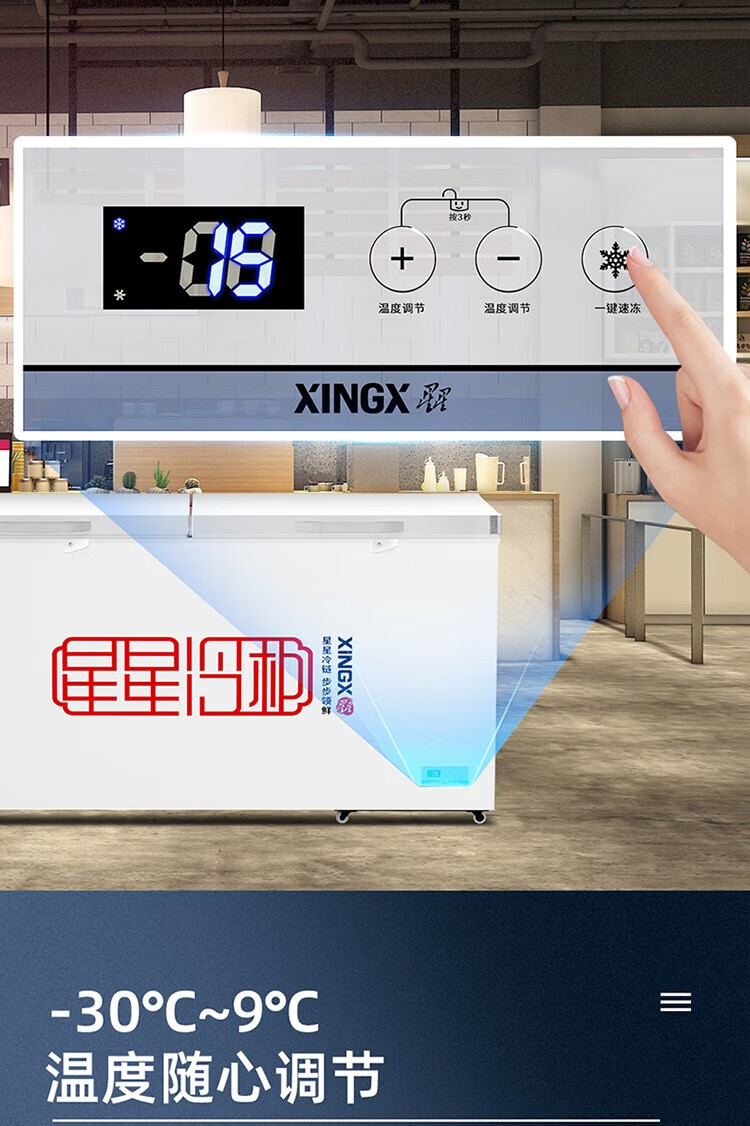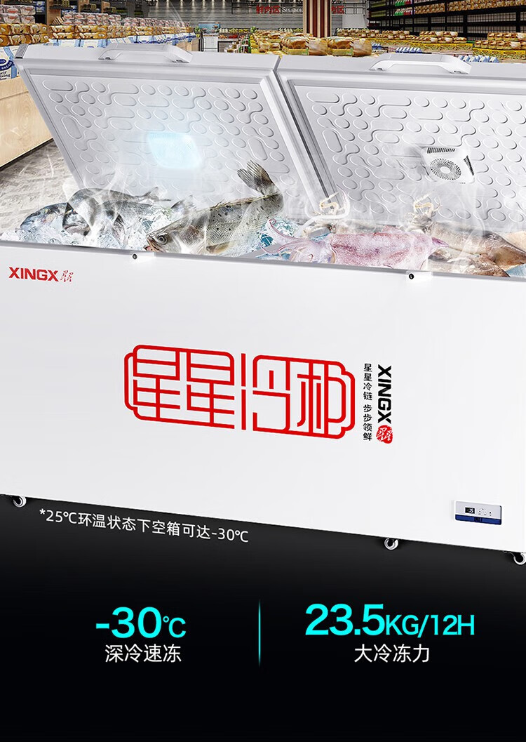Star Freezer Single Temperature Freezer Commercial Horizontal Cabinet Large Capacity Level One Energy Efficiency Restaurant Refrigeration and Freezing-30 Deep Freezing Quick Freezing Electronic Intelligent Temperature Control Fan Circulation Refrigeration BD/BC-716E 716L