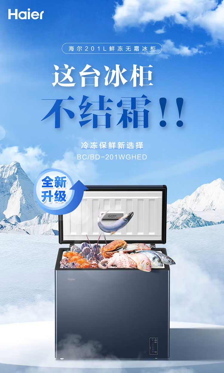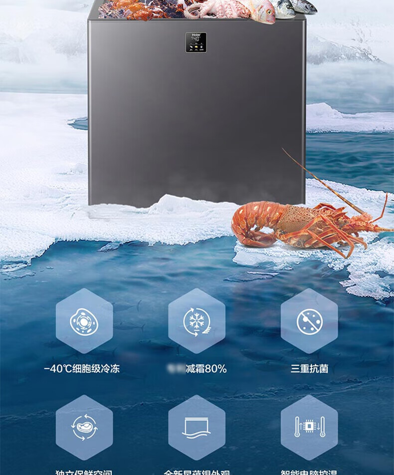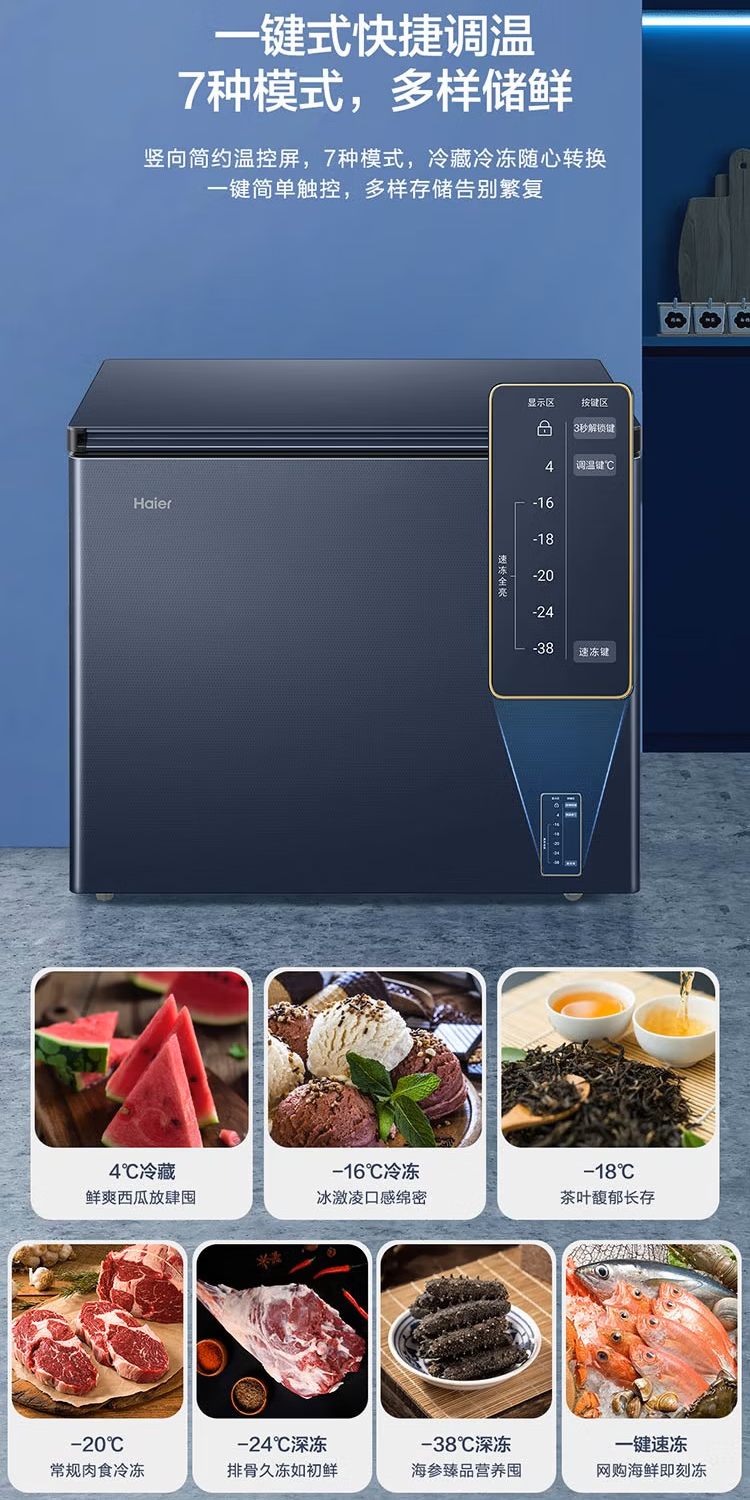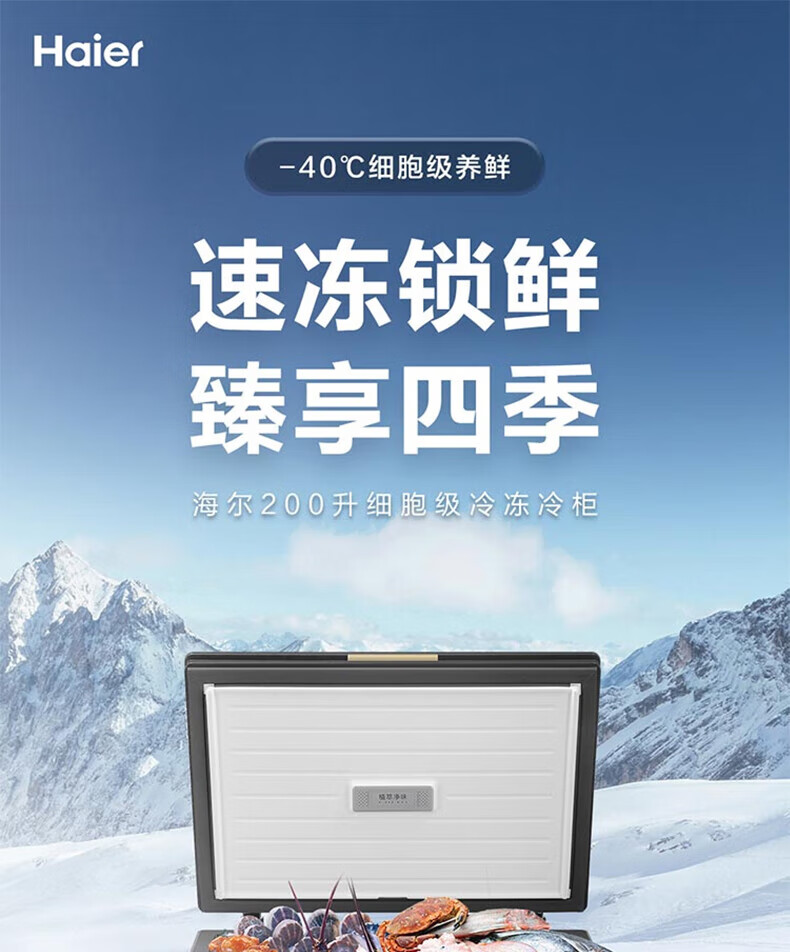Haier freezer -40 degrees ultra-low temperature freezer for home use without defrosting 200 liters of tea and seafood commercial large capacity small cell level cryogenic first level energy efficiency BC/BD-200GHEPG low temperature -40 200 liters
