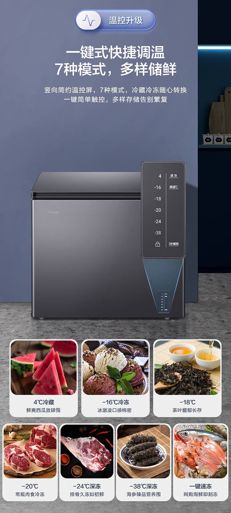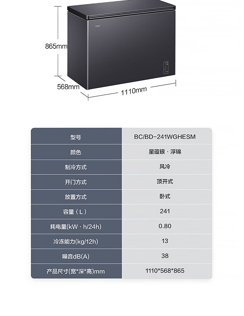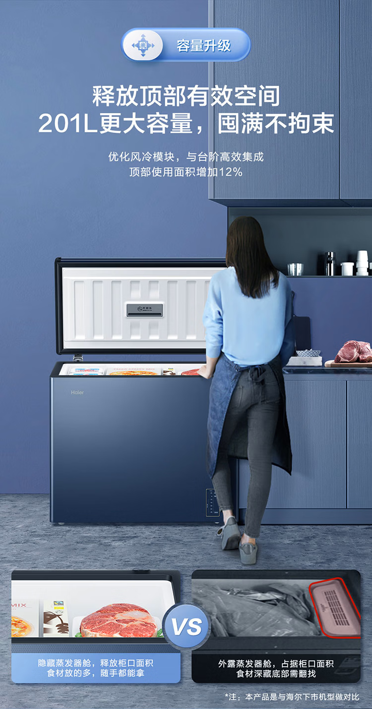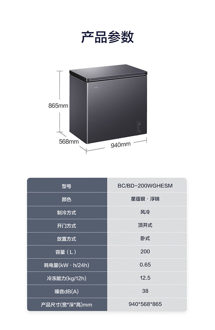 Haier freezer -40 degrees ultra-low temperature freezer for home use without defrosting 200 liters of tea and seafood commercial large capacity small cell level cryogenic first level energy efficiency BC/BD-200GHEPG low temperature -40 200 liters