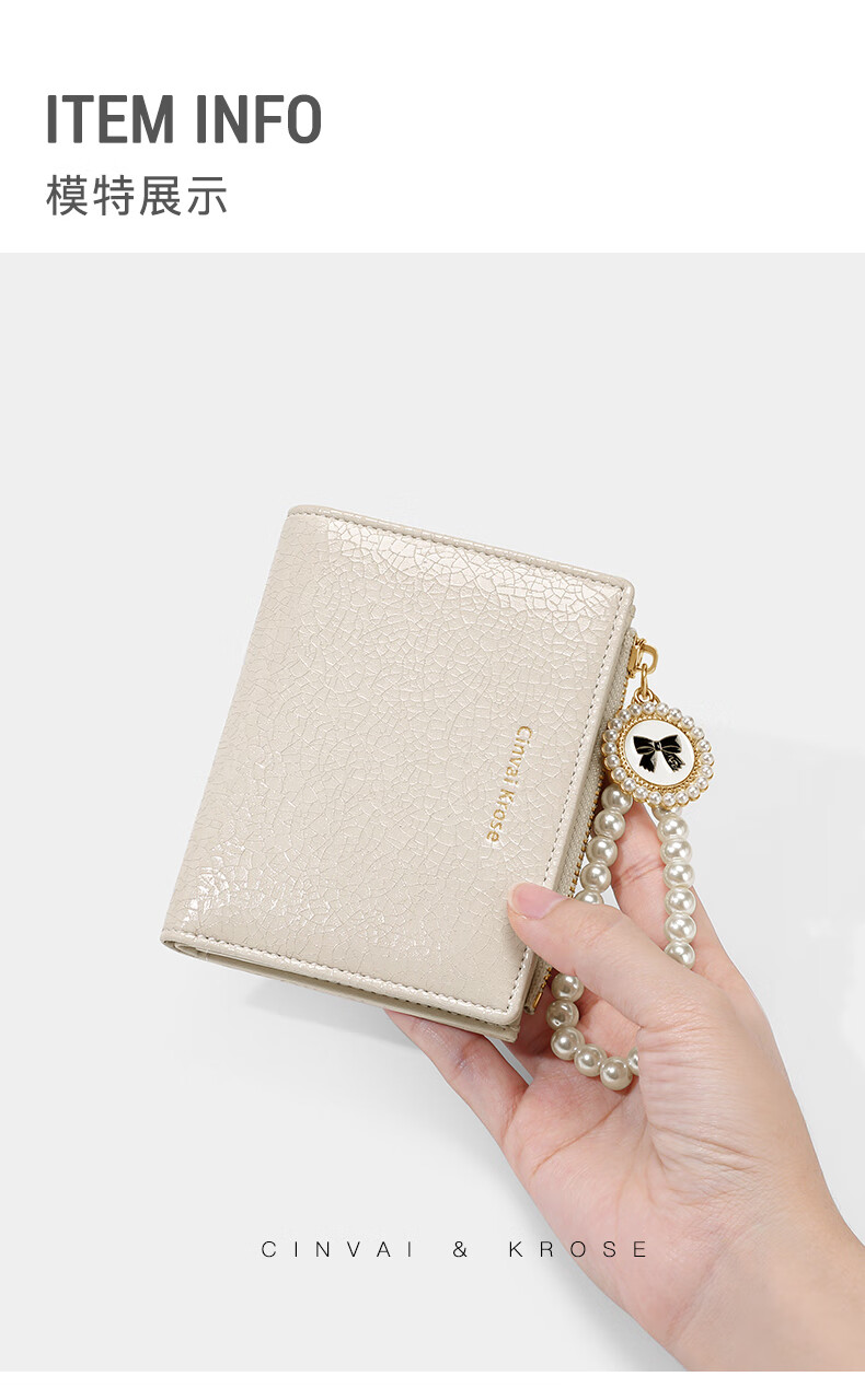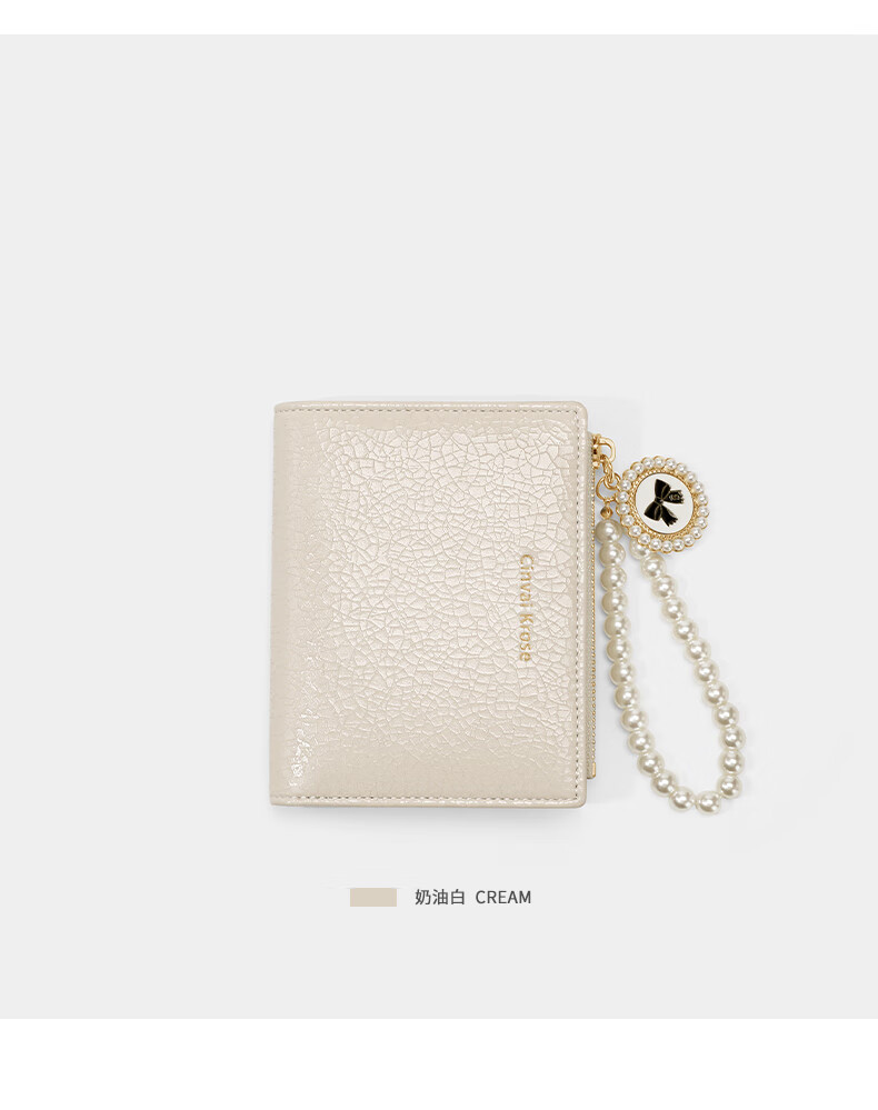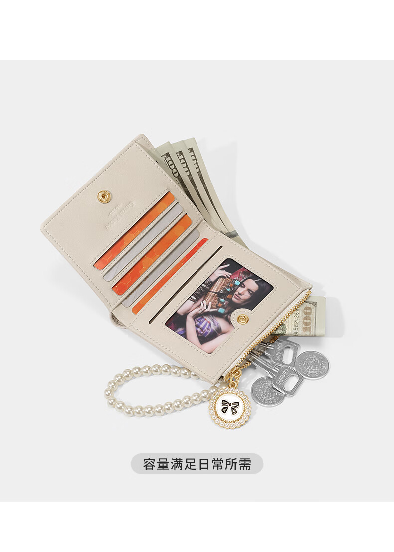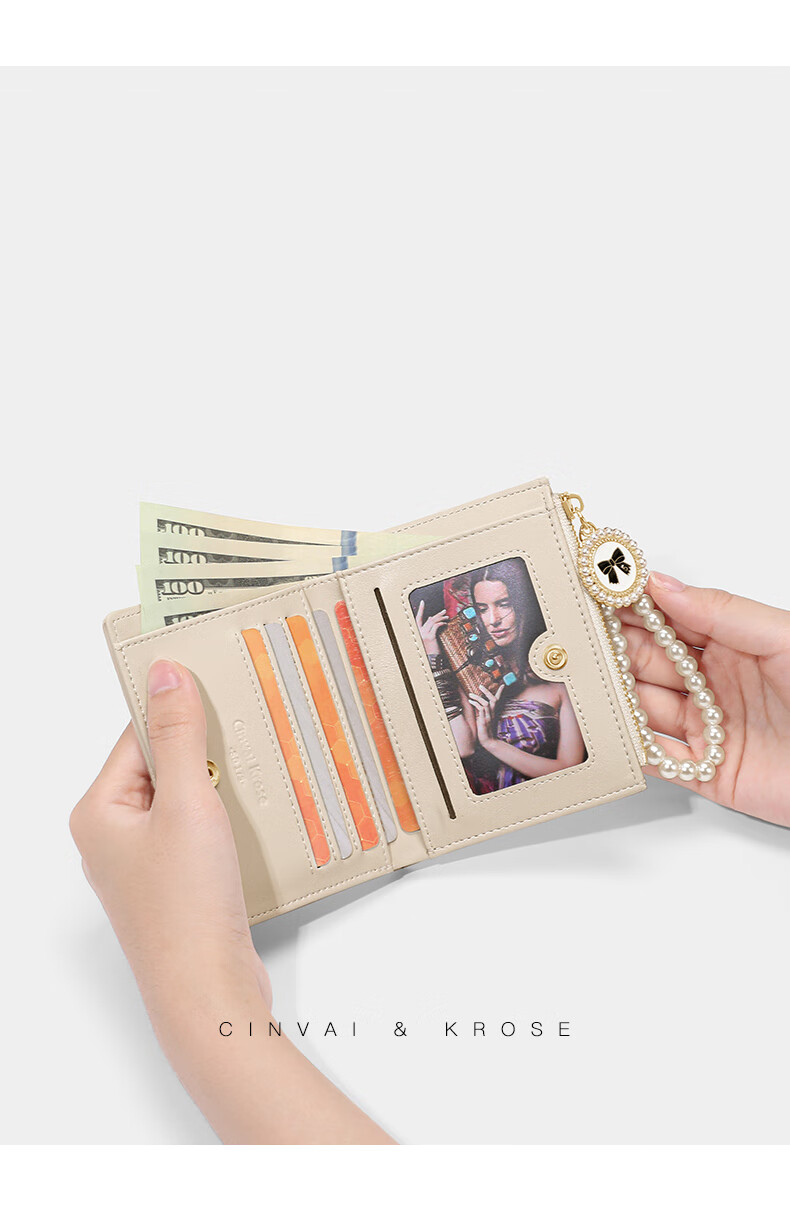 CinvaiKrose Light Luxury Compact Wallet Women's 2025 New Multi-Card Slot Integrated ID Clutch Wallet Birthday Christmas Gift CK Wallet-Cream White Gift for Girlfriend