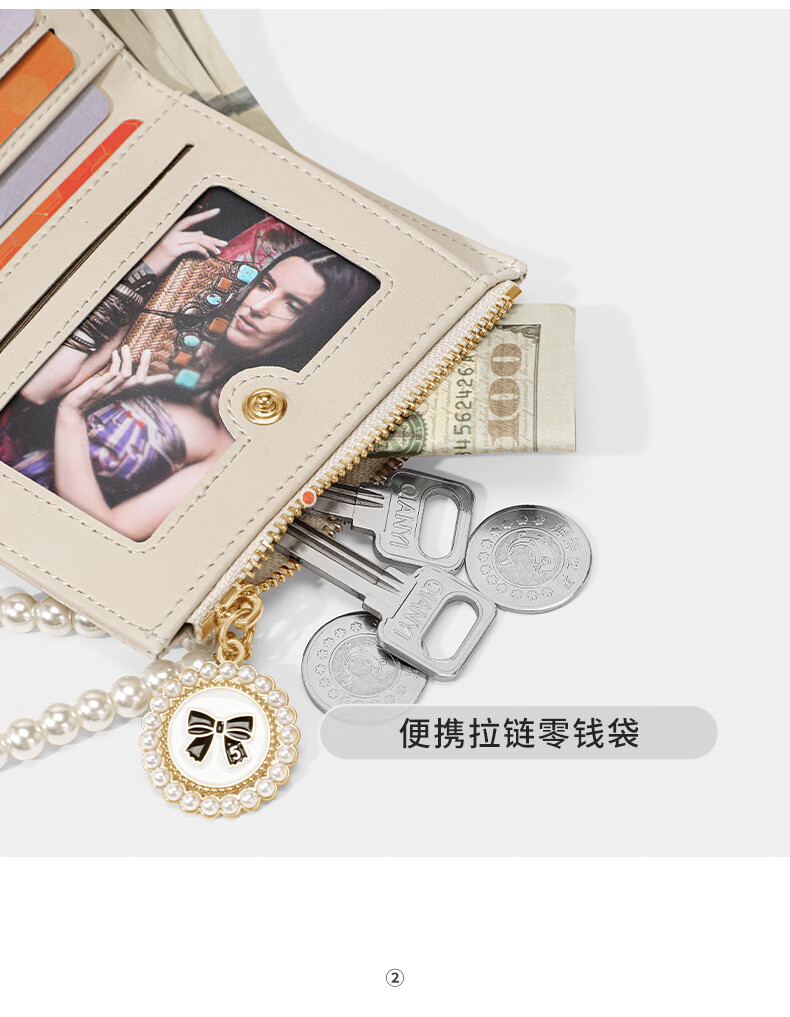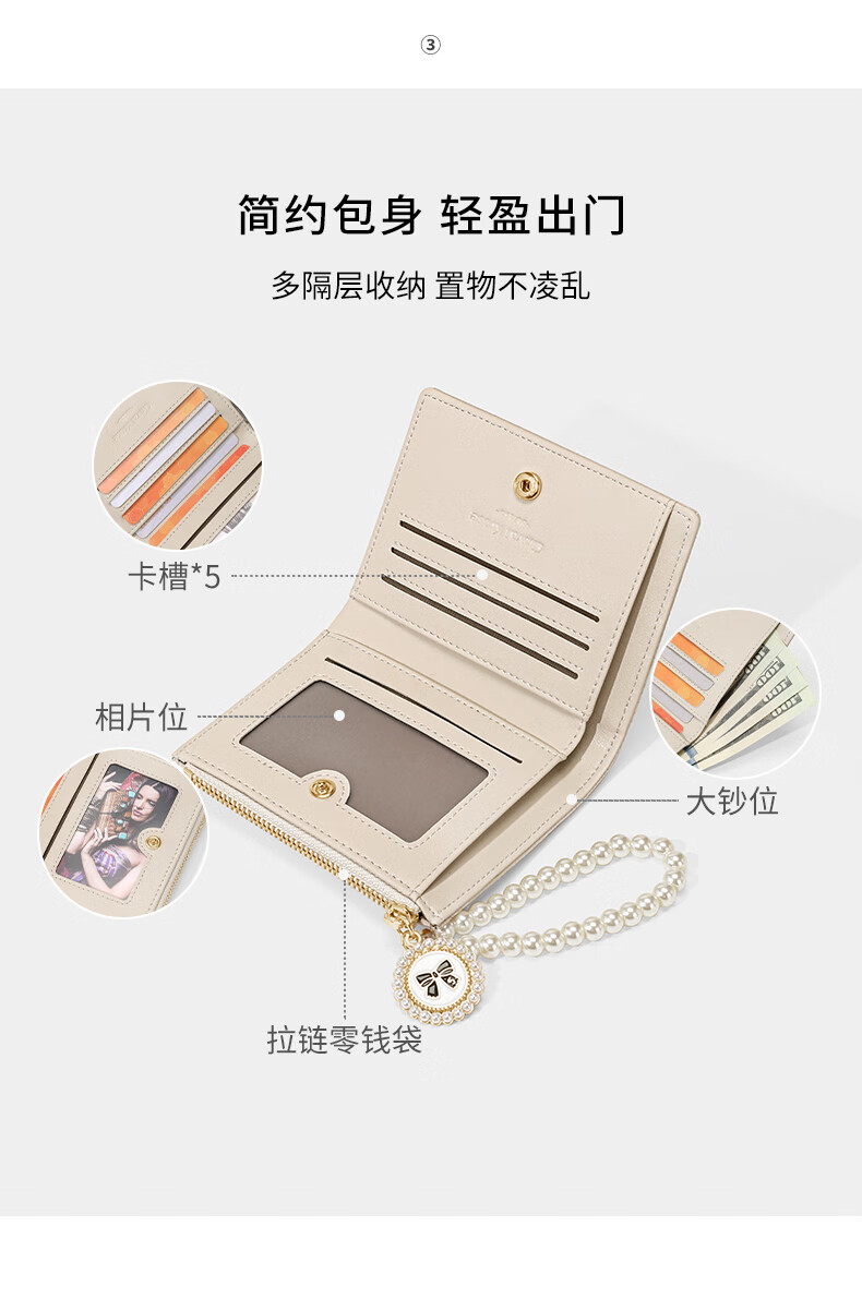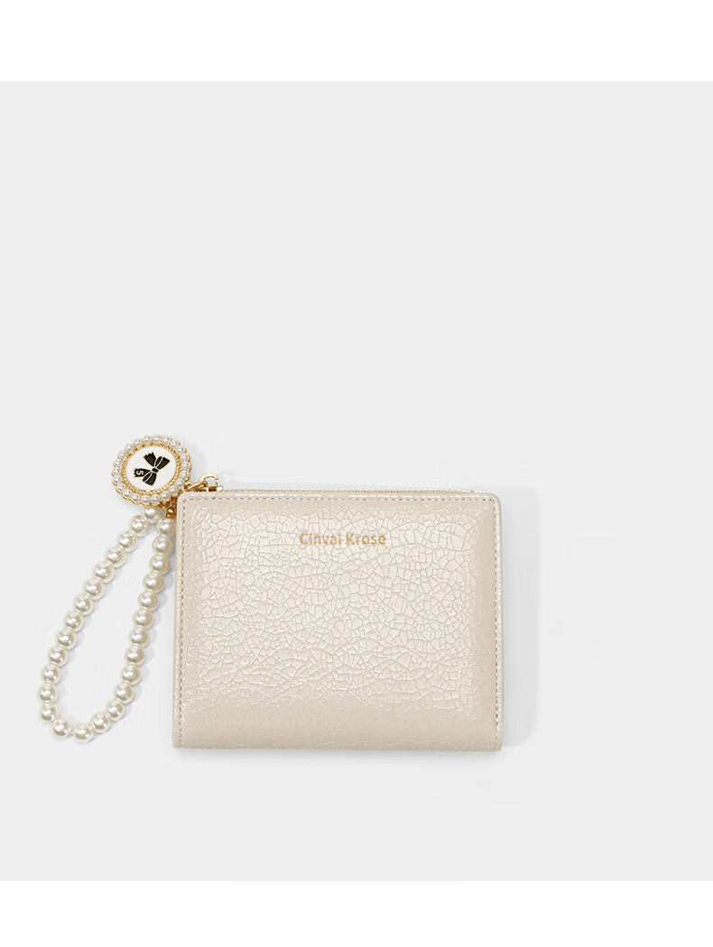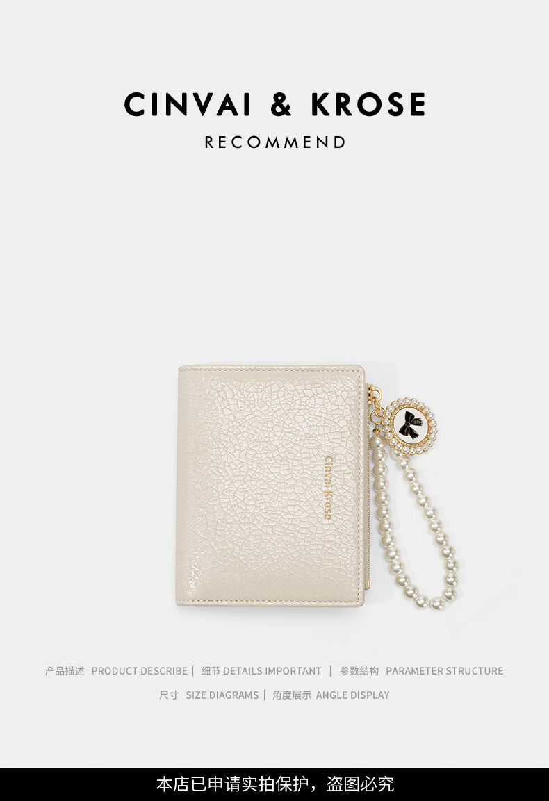 CinvaiKrose Light Luxury Compact Wallet Women's 2025 New Multi-Card Slot Integrated ID Clutch Wallet Birthday Christmas Gift CK Wallet-Cream White Gift for Girlfriend