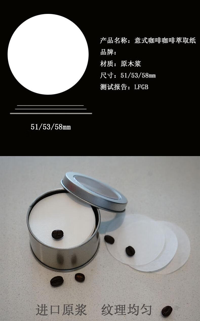 Runhuanian Italian coffee extraction filter paper secondary water separation filter paper 51 53 58mm household general hand brewing disposable 51mm 100 pieces of material