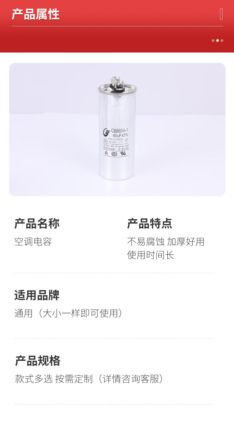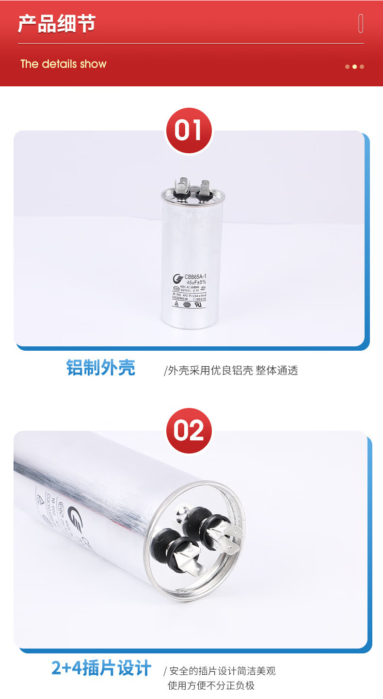 Getai air conditioning cbb65 capacitor explosion-proof solder joint safety insert multi-specification capacitor wholesale 35UF 450V 50 pieces in a box