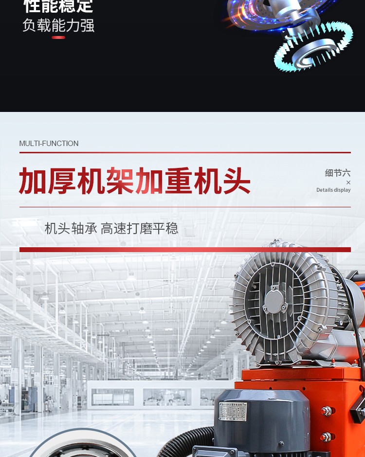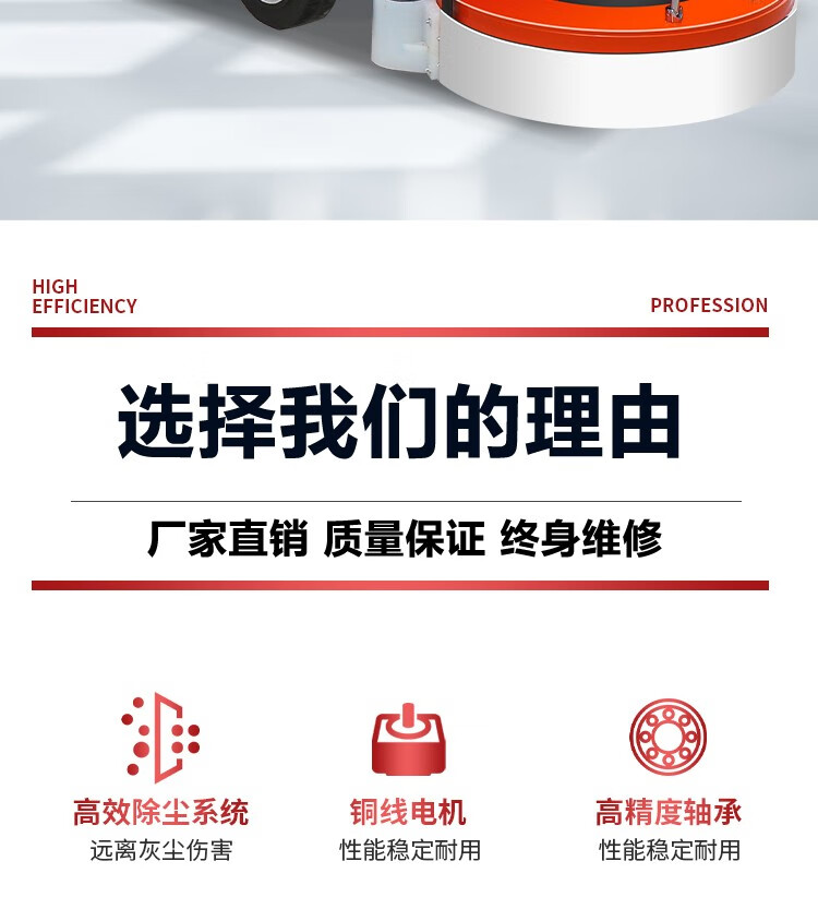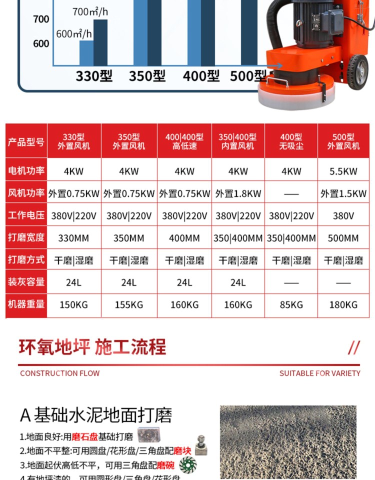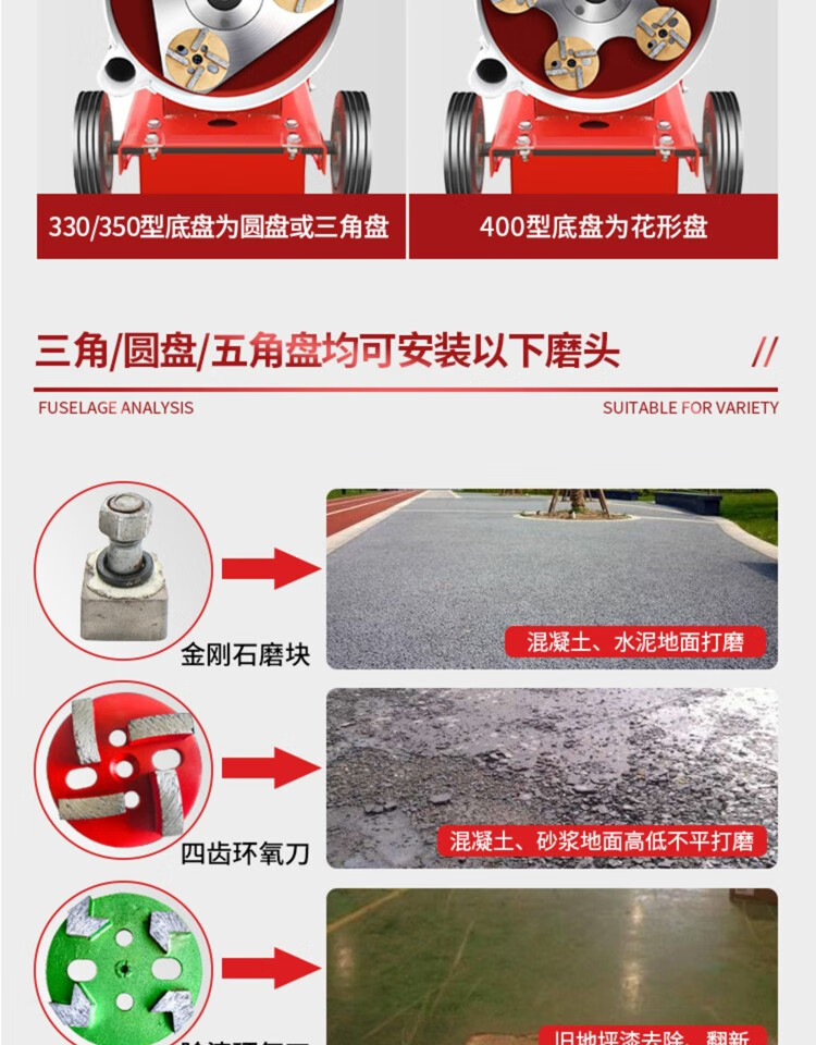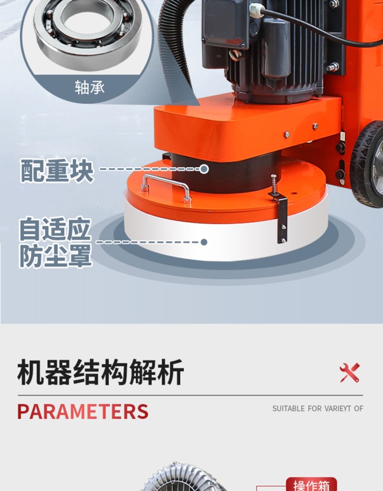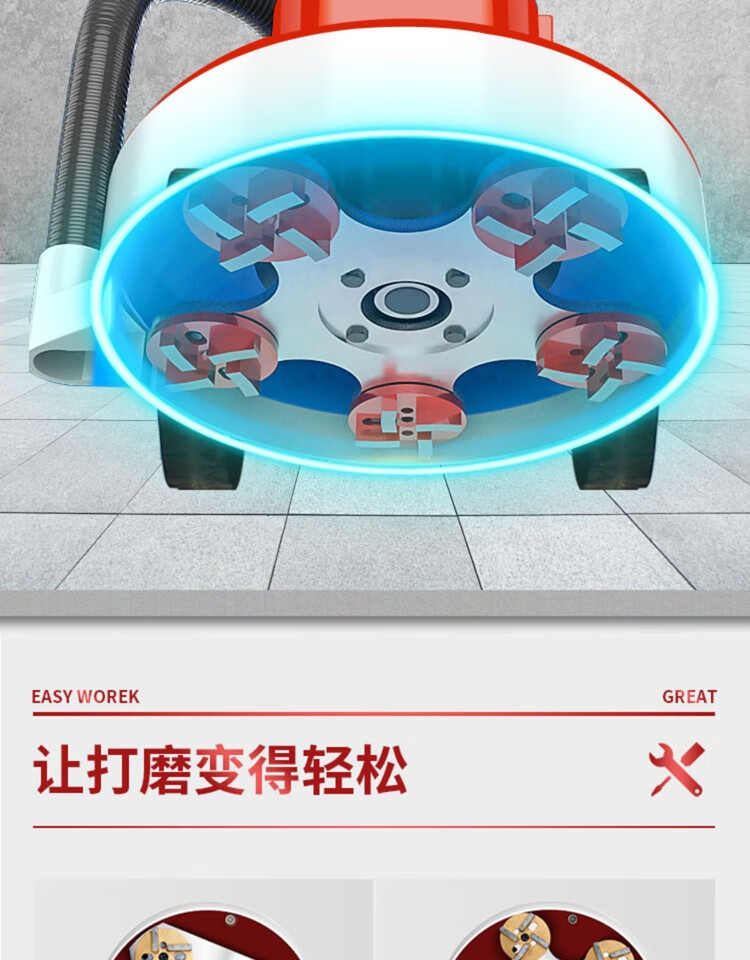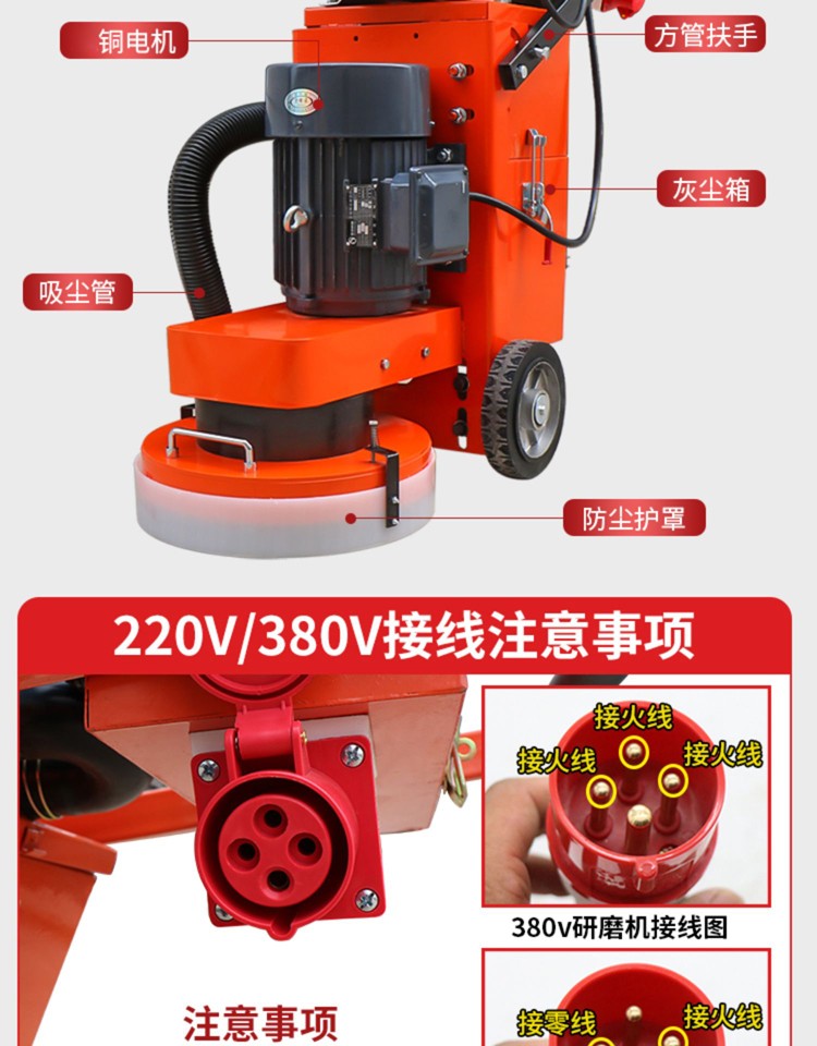 Qilicai epoxy floor grinder floor renovation concrete grinder cement pavement polishing paint removal dust-free grinder 350 high configuration 380V high and low speed