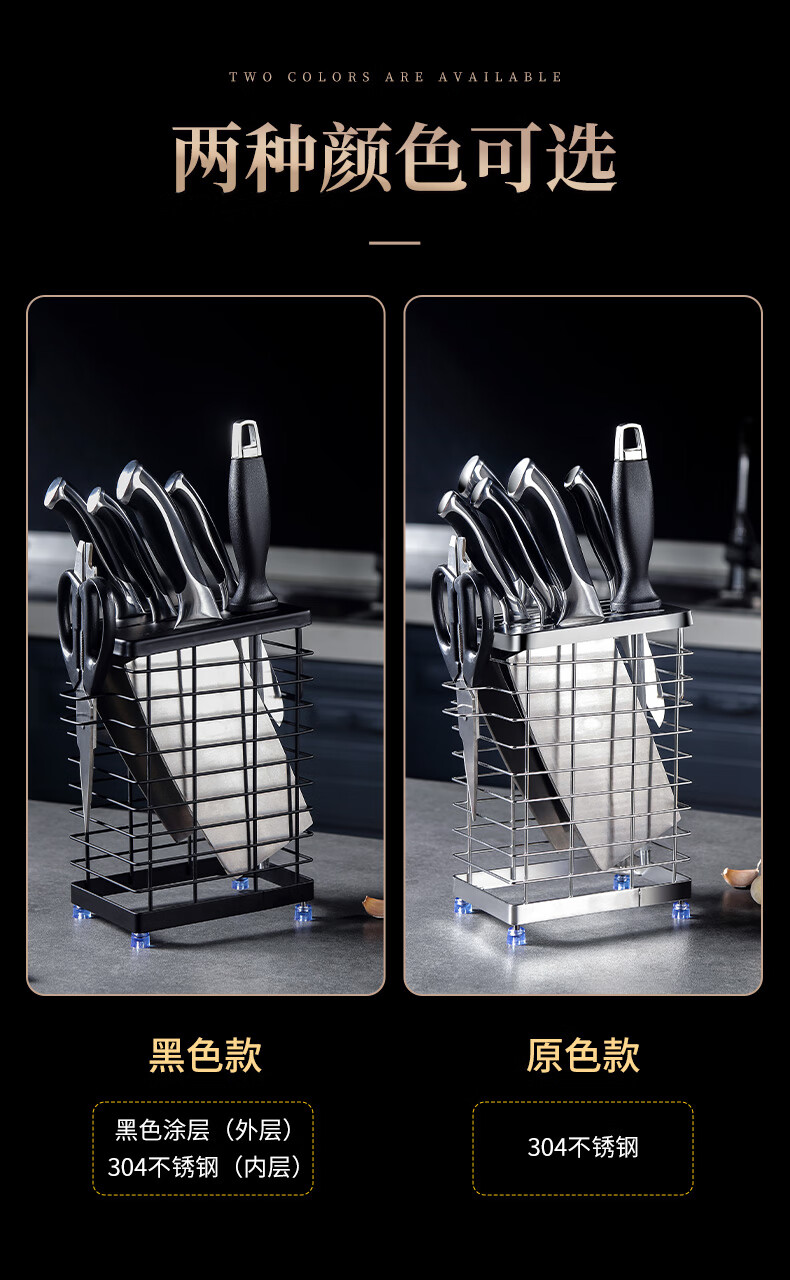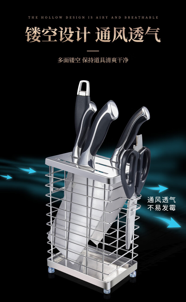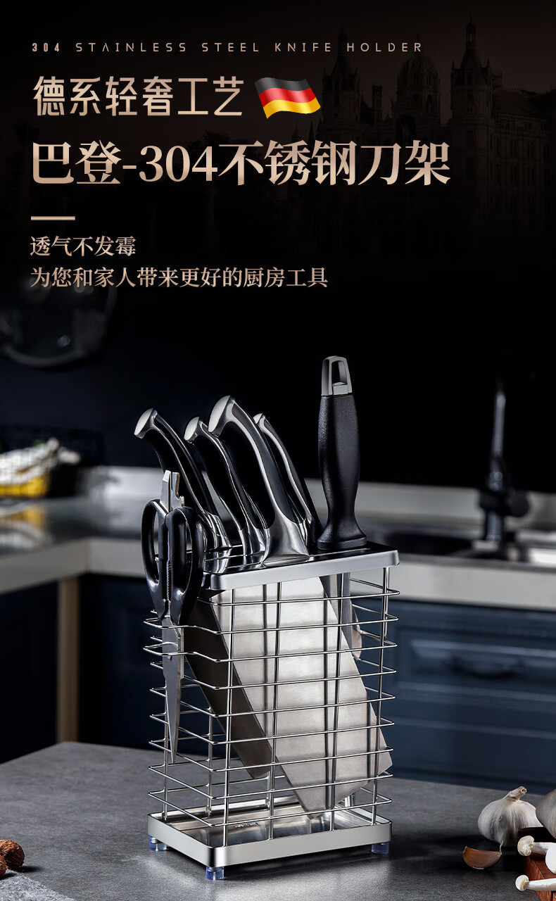 JCZS German brand 304 stainless steel knife holder countertop kitchen knife holder multi-functional kitchen storage rack stainless steel color three chopstick barrel knife and chopstick holder - wall hanging