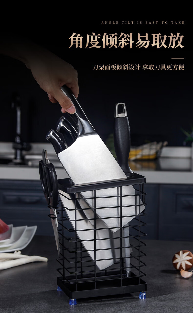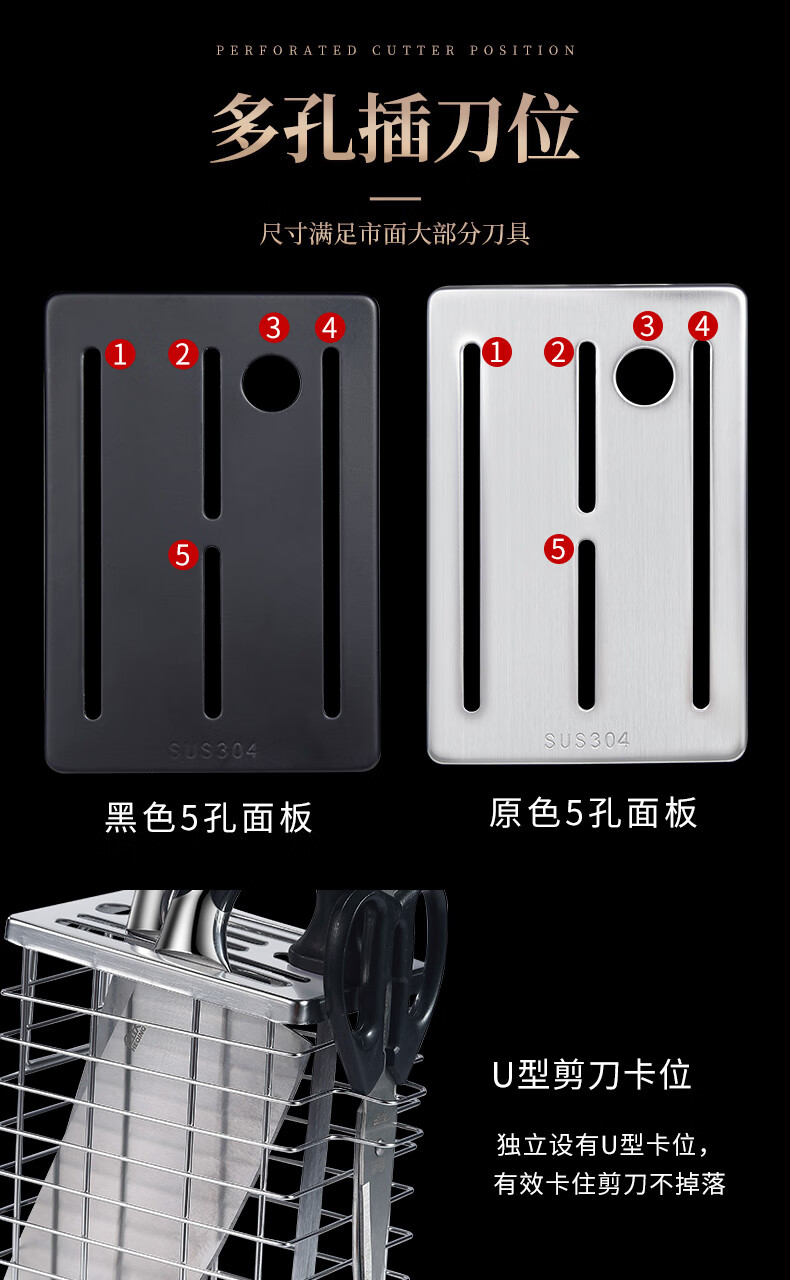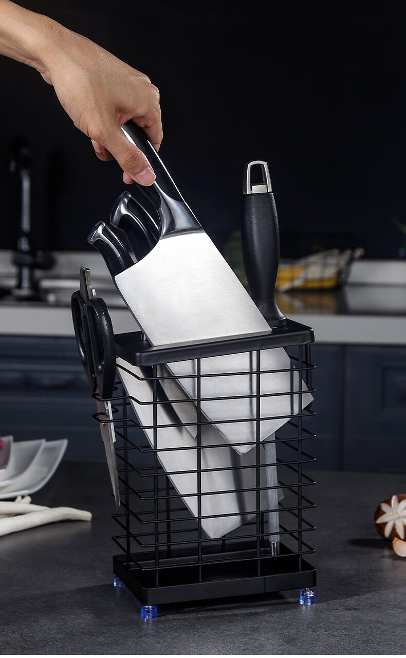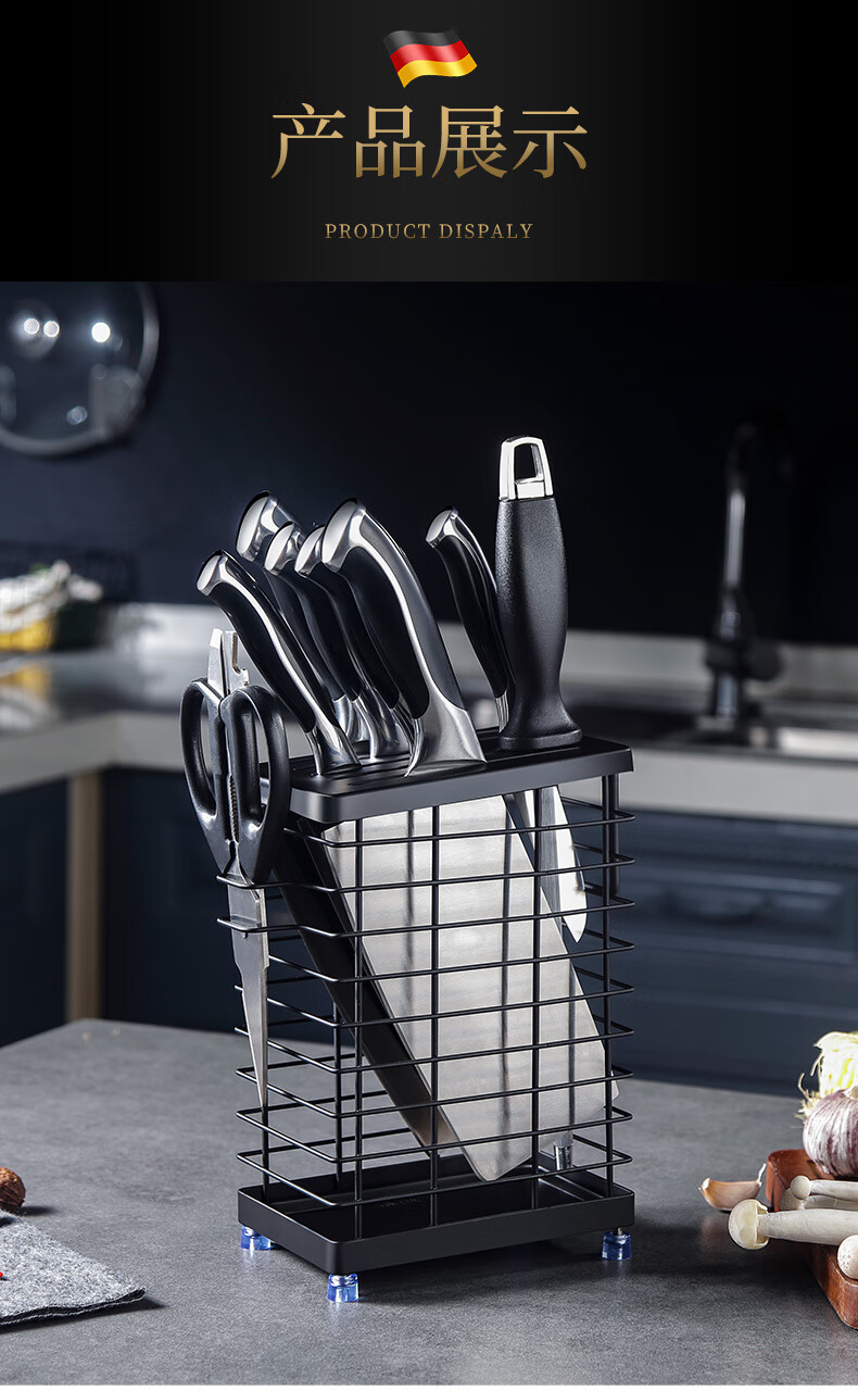 JCZS German brand 304 stainless steel knife holder countertop kitchen knife holder multi-functional kitchen storage rack stainless steel color three chopstick barrel knife and chopstick holder - wall hanging