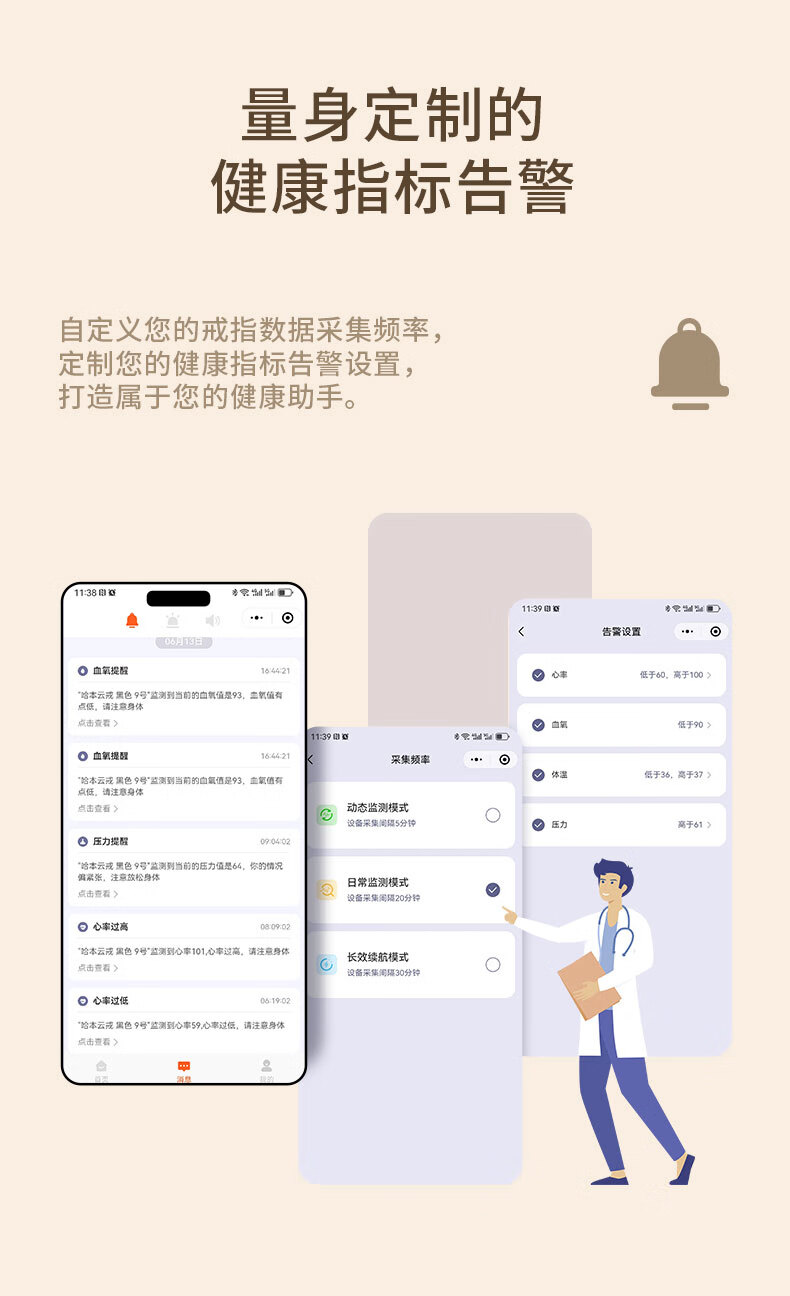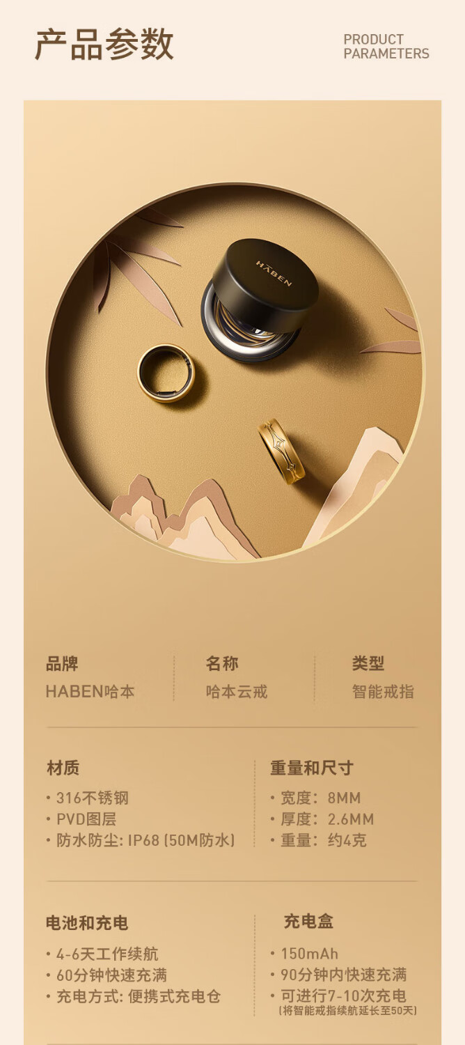 Haben Cloud Ring Smart Ring NFC Smart Access Control Sleep Blood Sugar Blood Oxygen Heart Rate Blood Pressure Health Monitoring Bluetooth Smart Ring Sports Body Temperature Waterproof Xiaomi Samsung Huawei Fit ECG Monitoring/Blood Sugar Blood Oxygen Heart Rate Blood Oxygen Monitoring No. 12 Finger Circumference Approximately 66mm-72mm