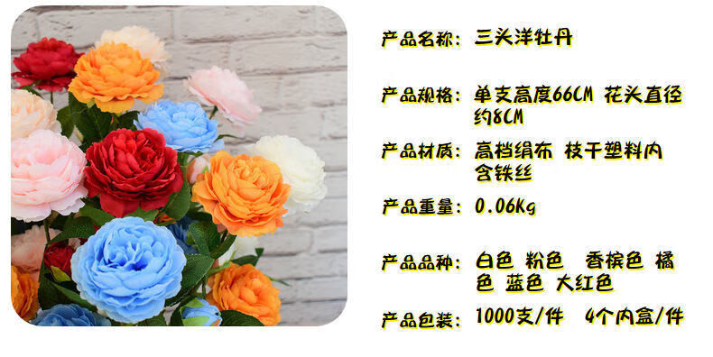 3 peonies artificial flowers wedding decoration artificial flowers artificial peonies home living room decoration flowers three peonies (white) 1 branch