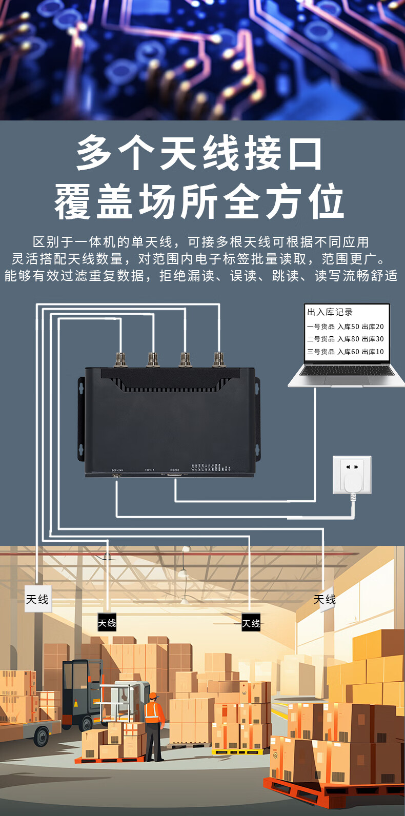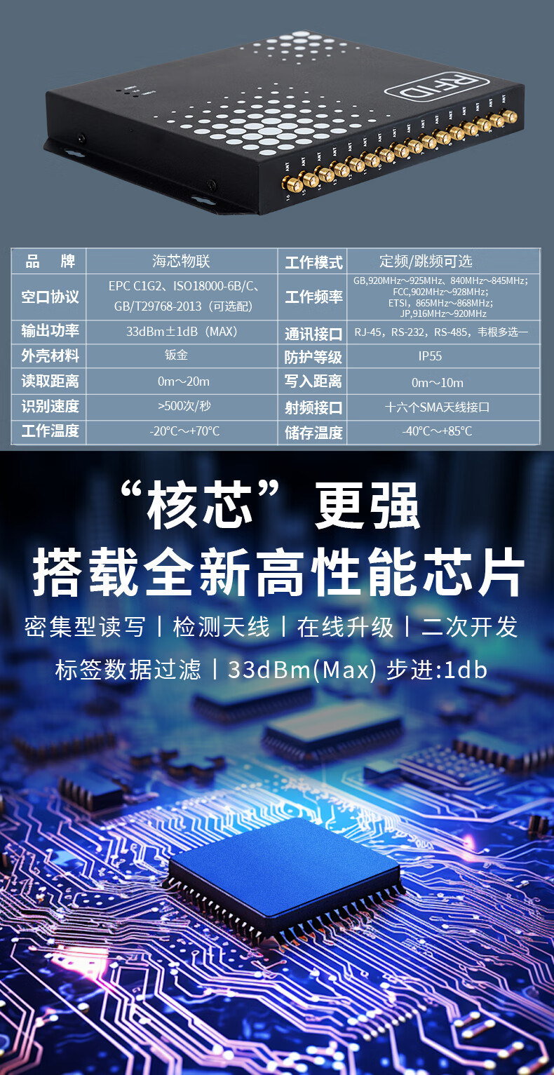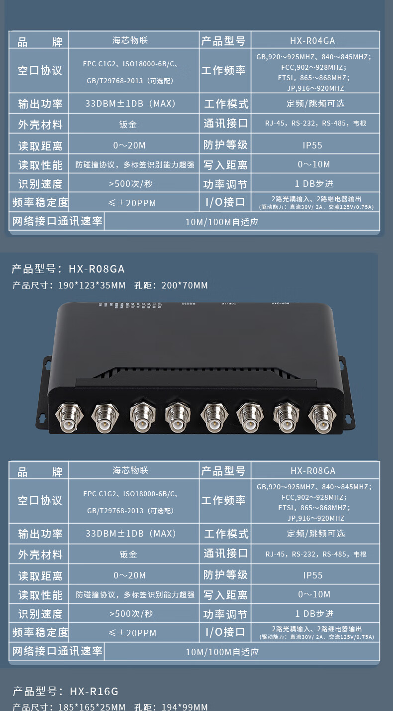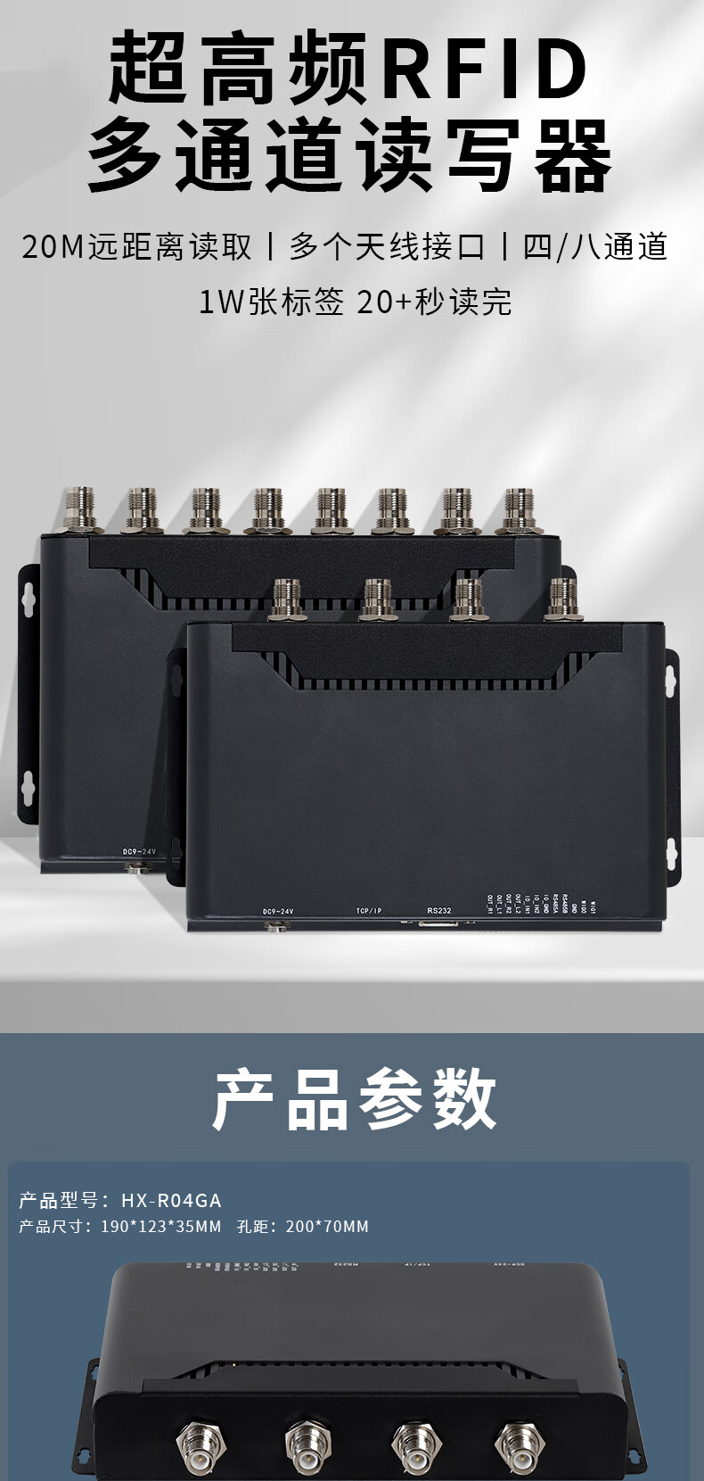 UHF multi-channel reader/writer RFID electronic tag radio frequency identification fixed card reading data collector HX-R01G