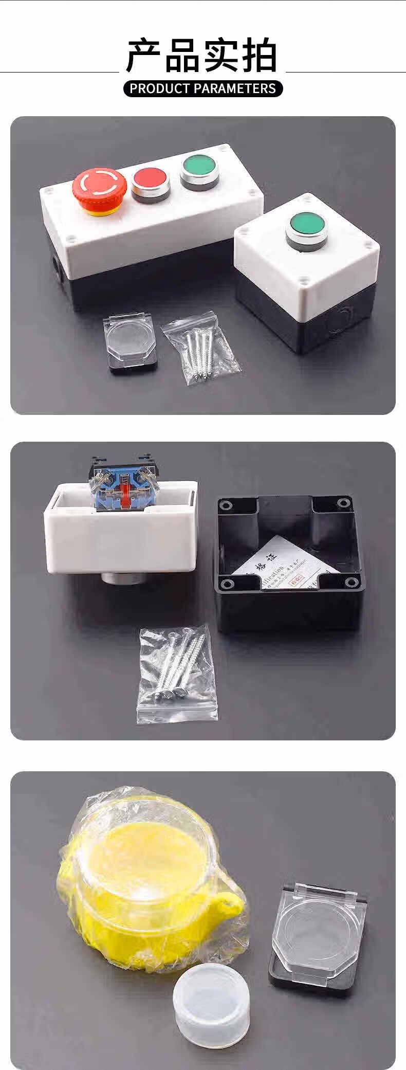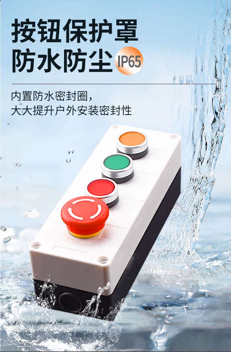Button switch control box 12345 holes start and stop elevator emergency stop button box indicator light industrial waterproof box 3 holes emergency stop + red and green buttons (can be equipped with protective cover)