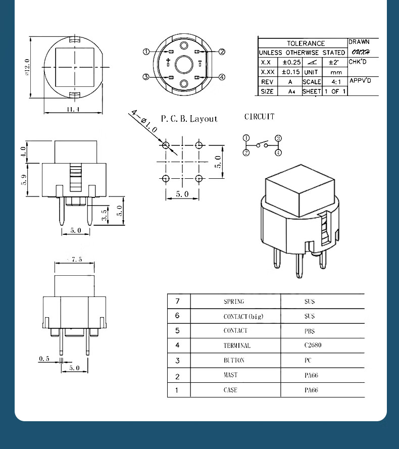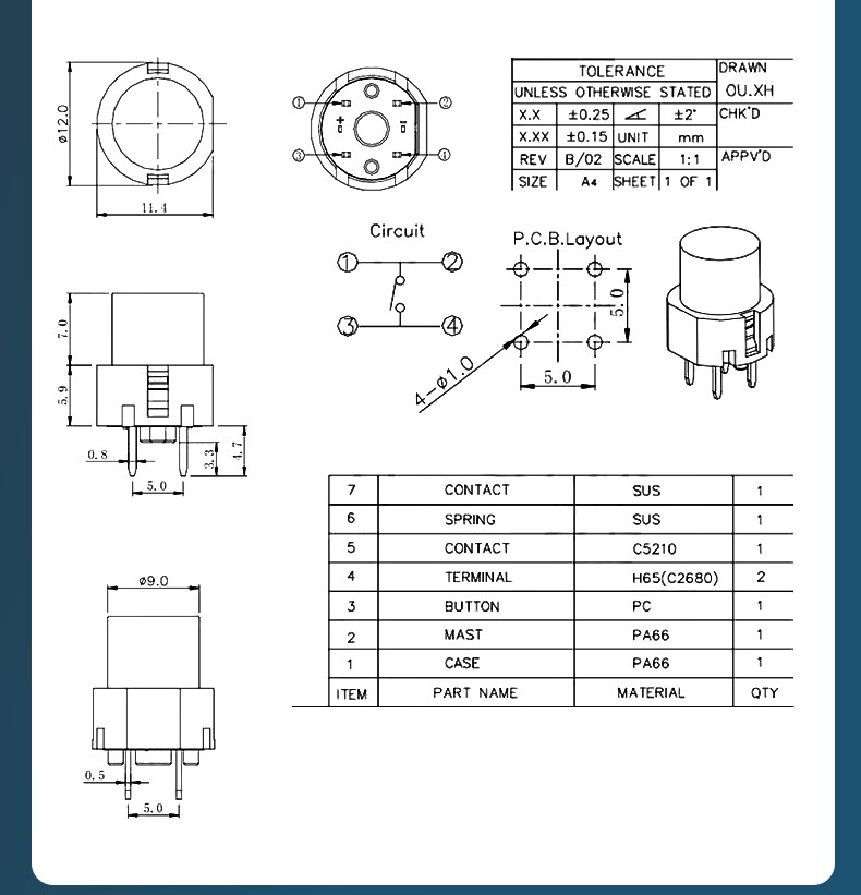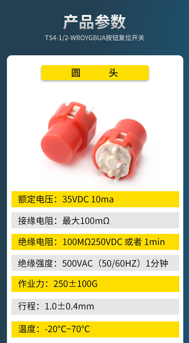 TS4-1/2-WROYGBUA push button reset switch various colors coffee machine accessories-PS-536 round head blue