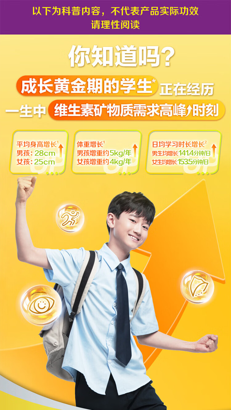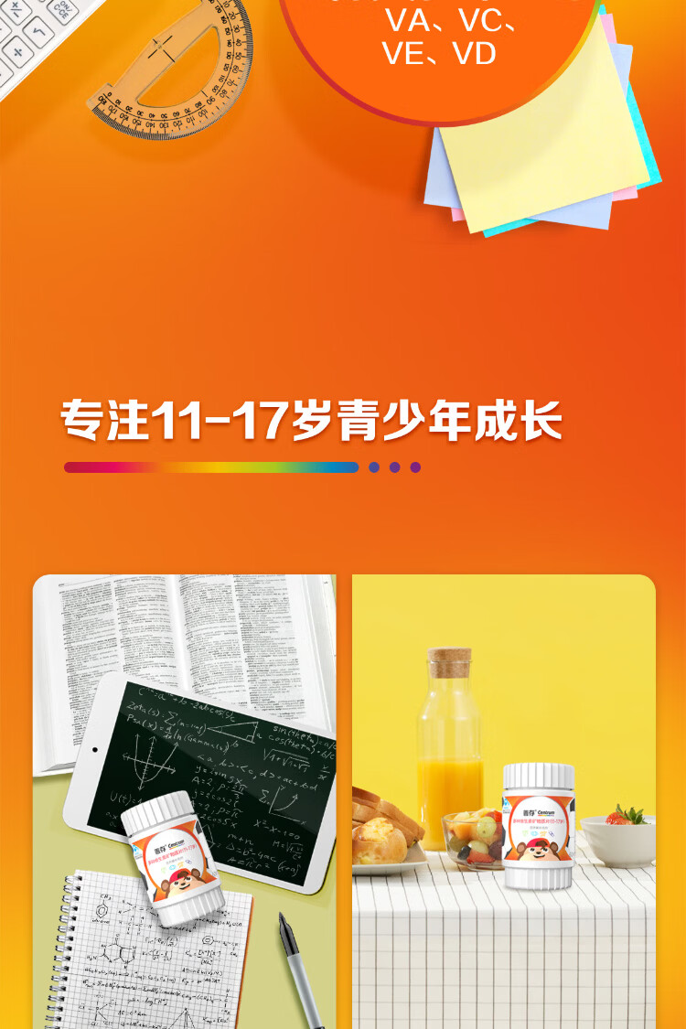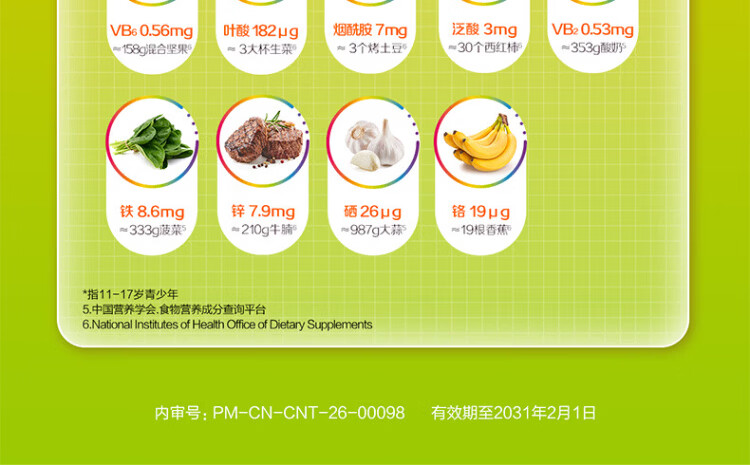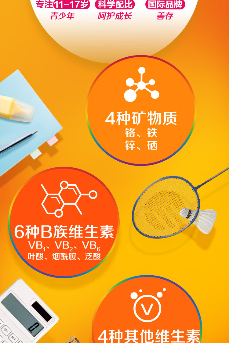 Sencun Youth Jiavi Tablets 60 Tablets 11-17 years old Multivitamin Mineral Nutritional Supplement B Group Zinc and Iron New Year's Product (11-17 years old) Youth Multivitamin 60 Tablets*2 Bottles