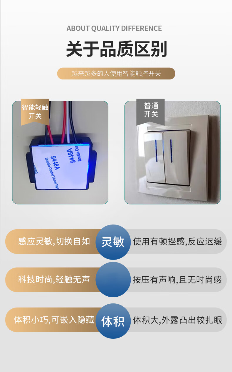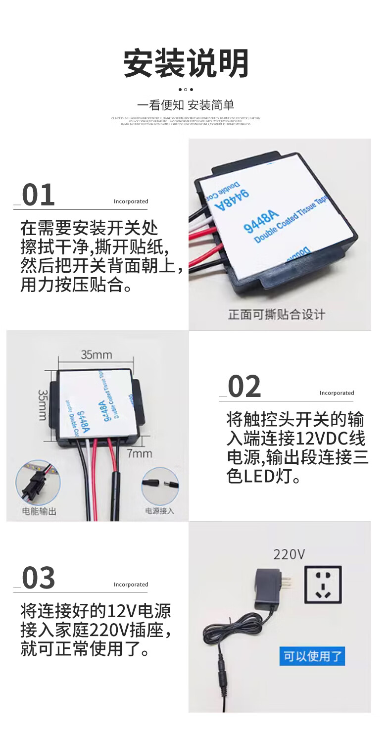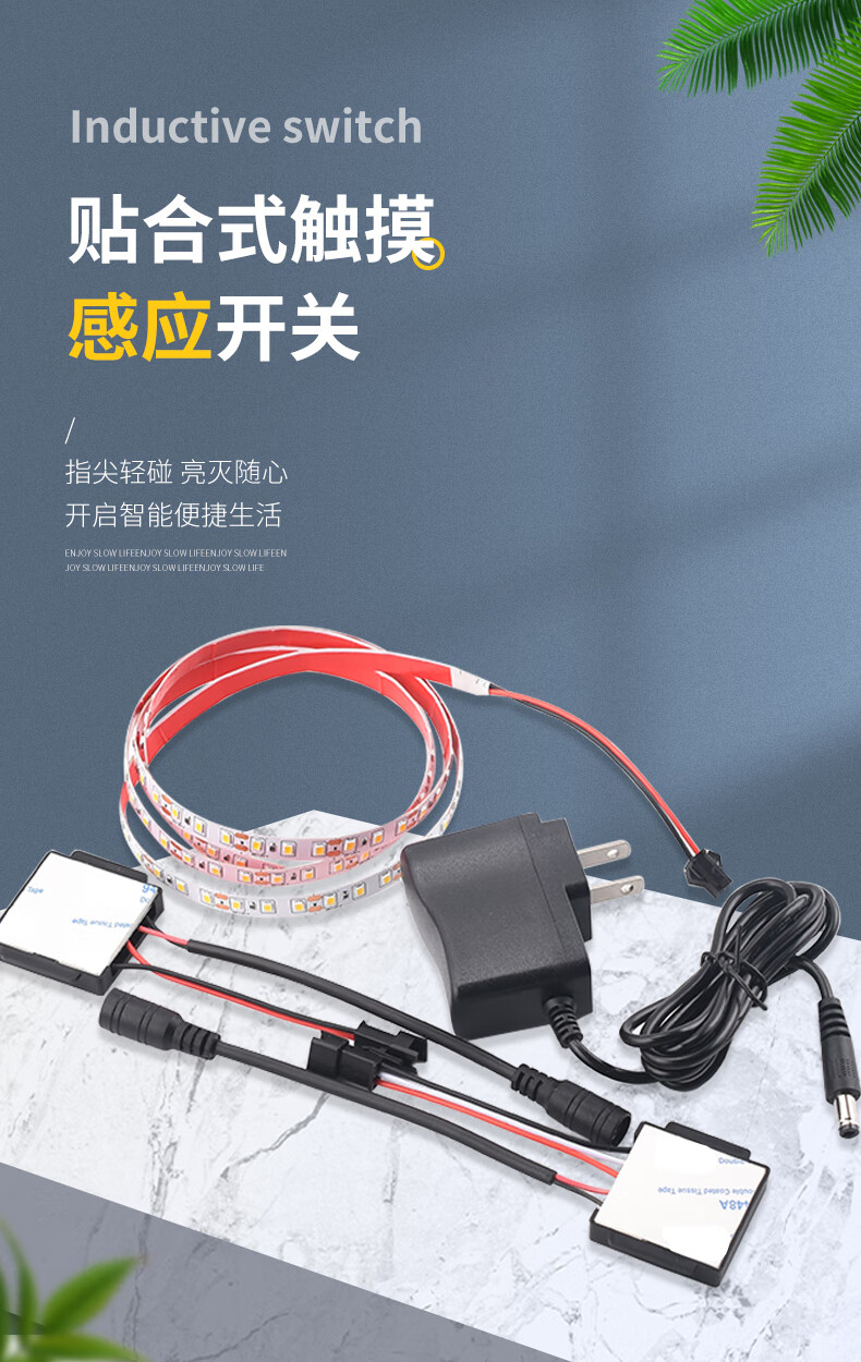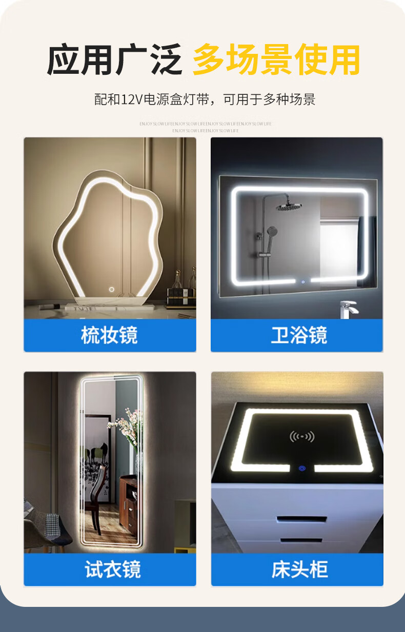 Smart touch switch LED light dual color temperature adjustment fit switch suitable for makeup mirror hairdressing mirror bedside table 12V1.5A power adapter