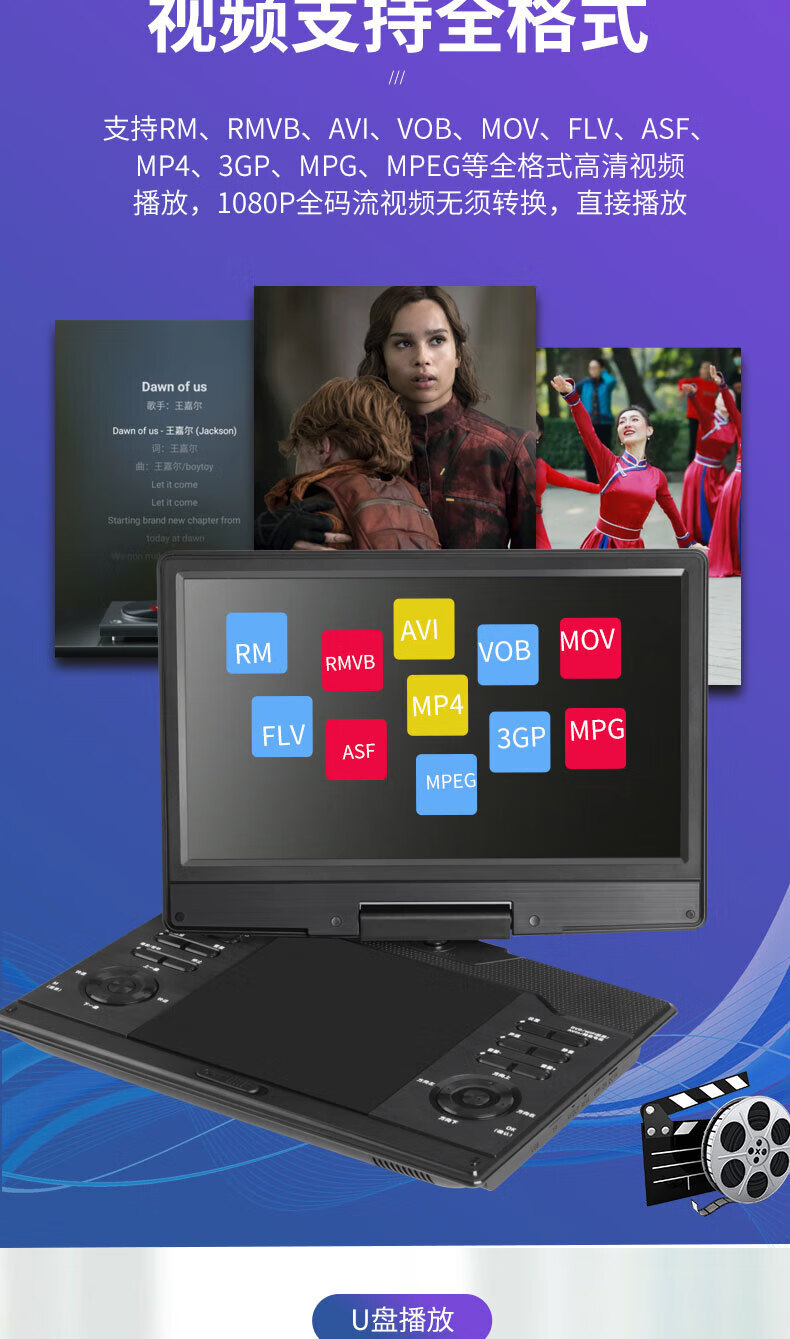 Hanguang's new product Hanguang mobile DVD portable small home VCD disc high-definition player children's CD all-in-one machine 19-inch ultra-clear DVD regular version official standard + gifts